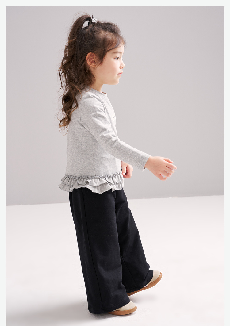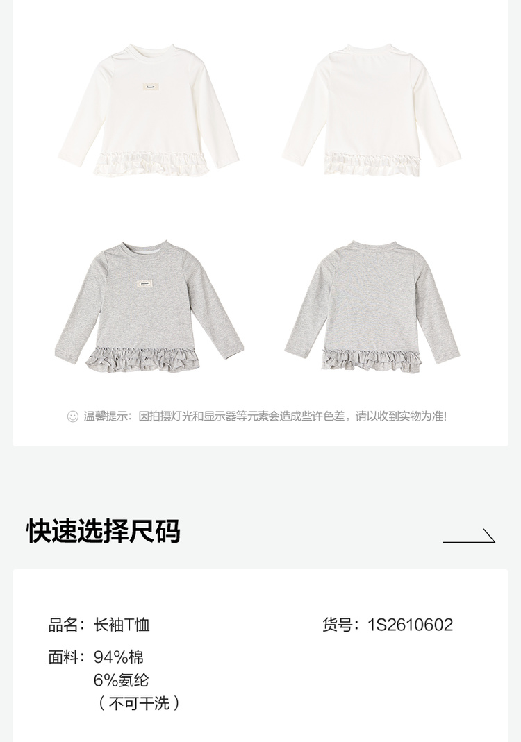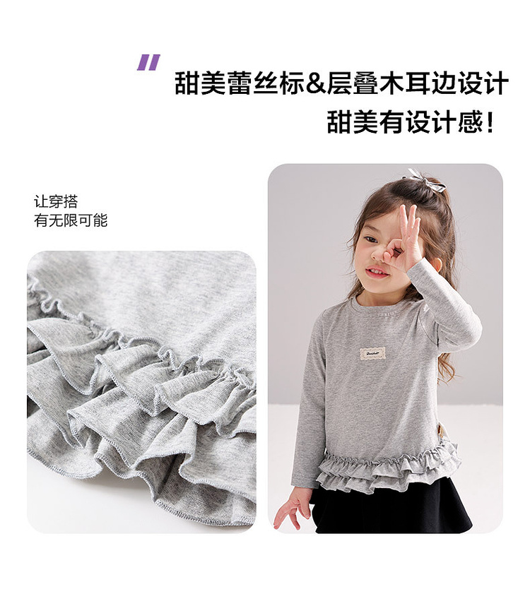 笛莎Deesha 2026春季女童甜美设计感拼接木耳边长袖T恤