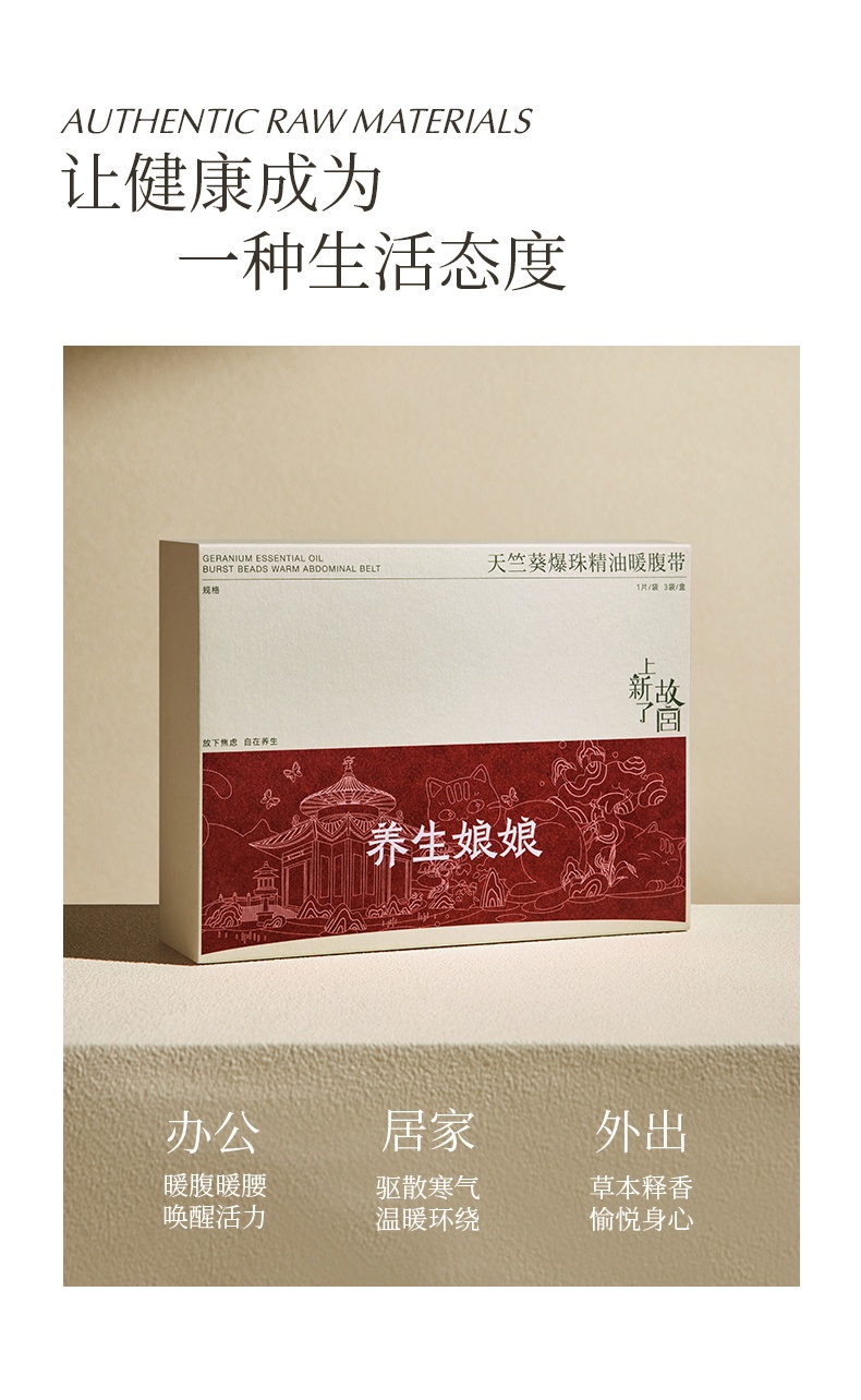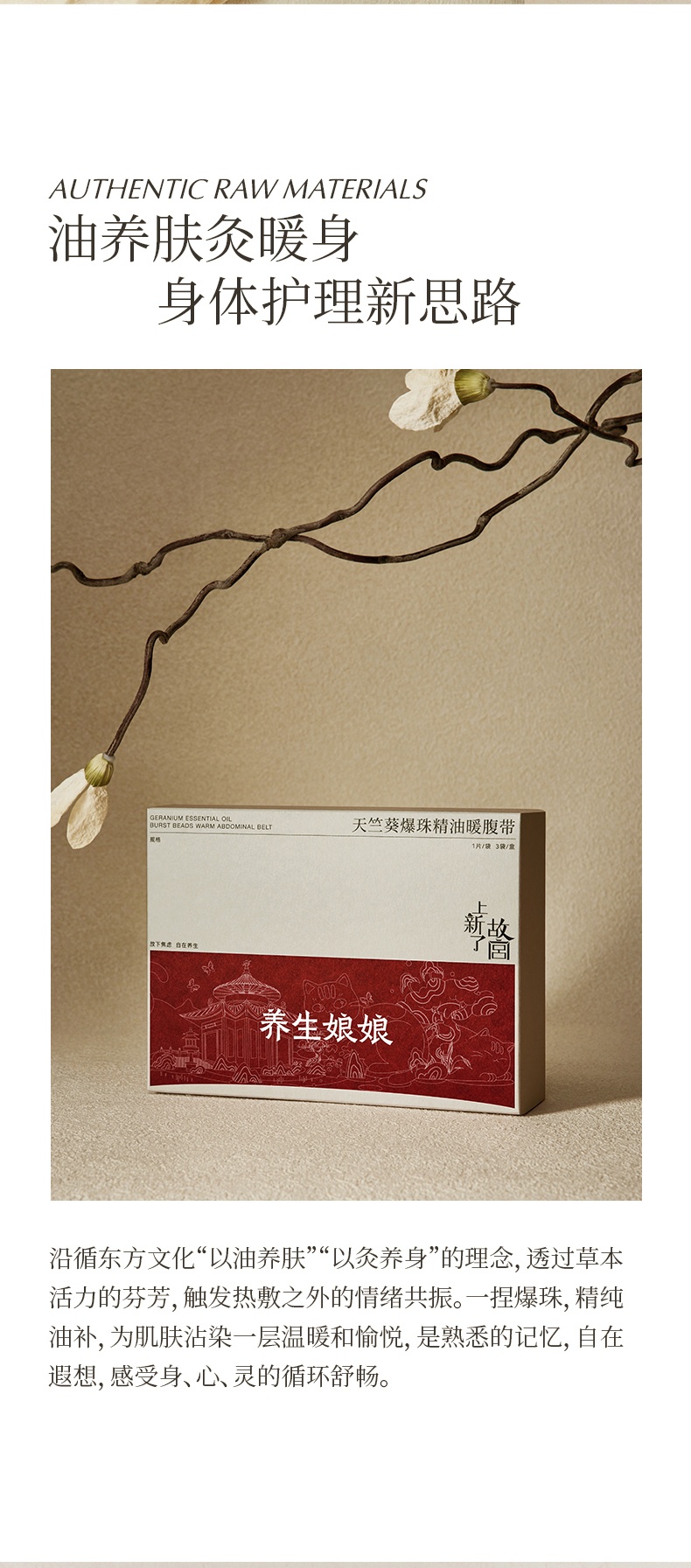 【产品名称】:养生娘娘天竺葵爆珠精油暖腹带