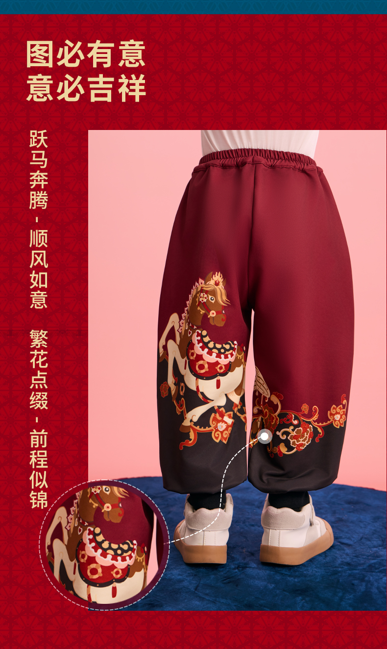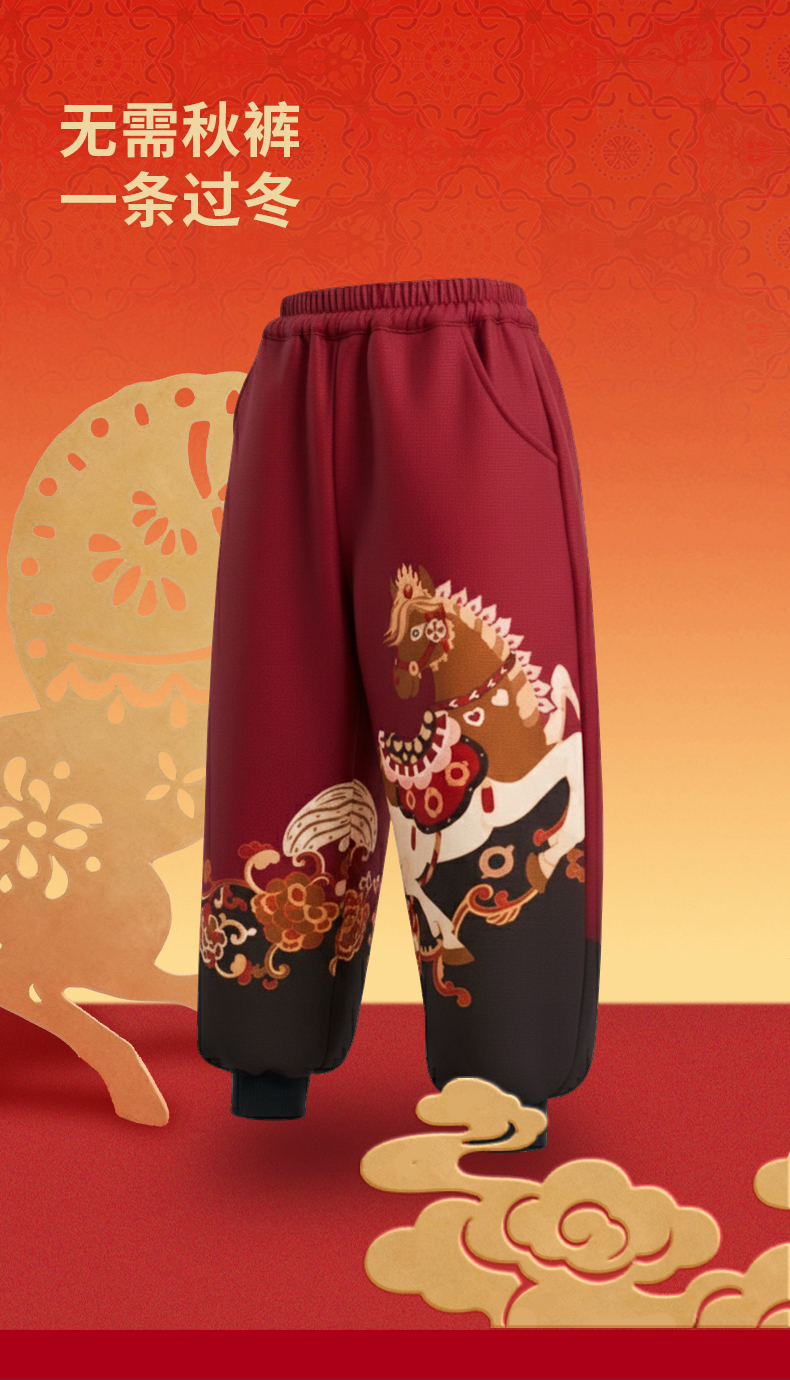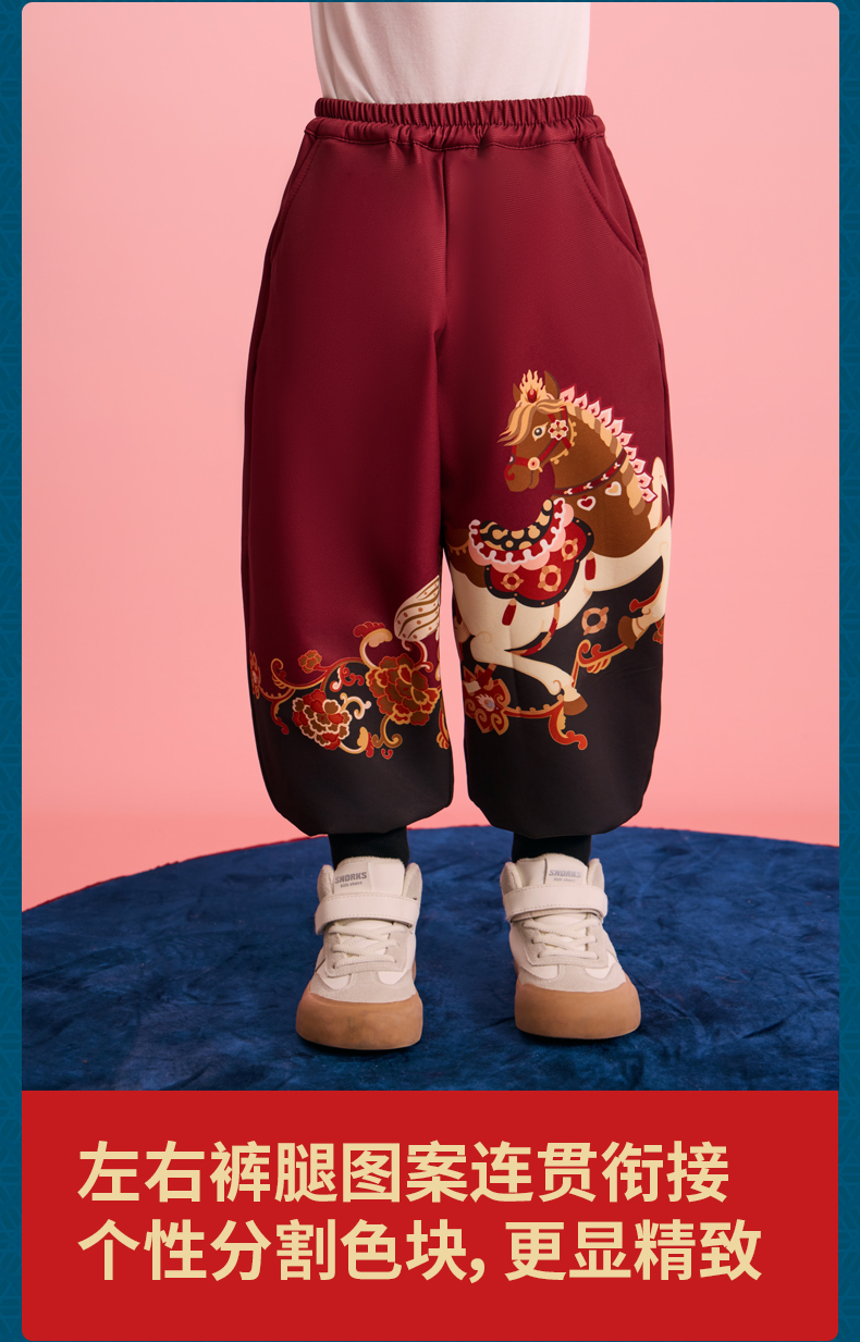 年衣童装儿童加绒长裤冬季新款男童运动裤女童跃马新程加绒长裤