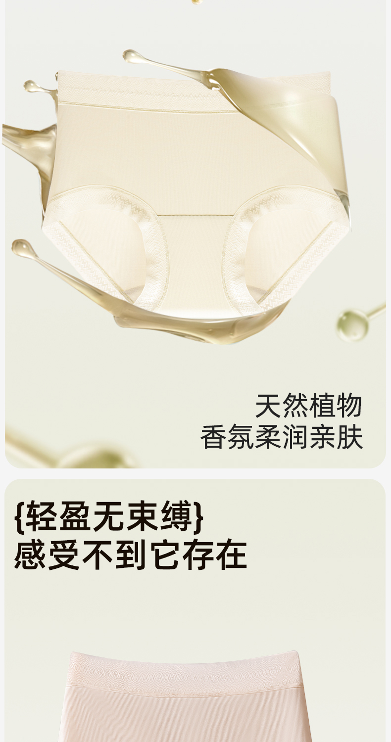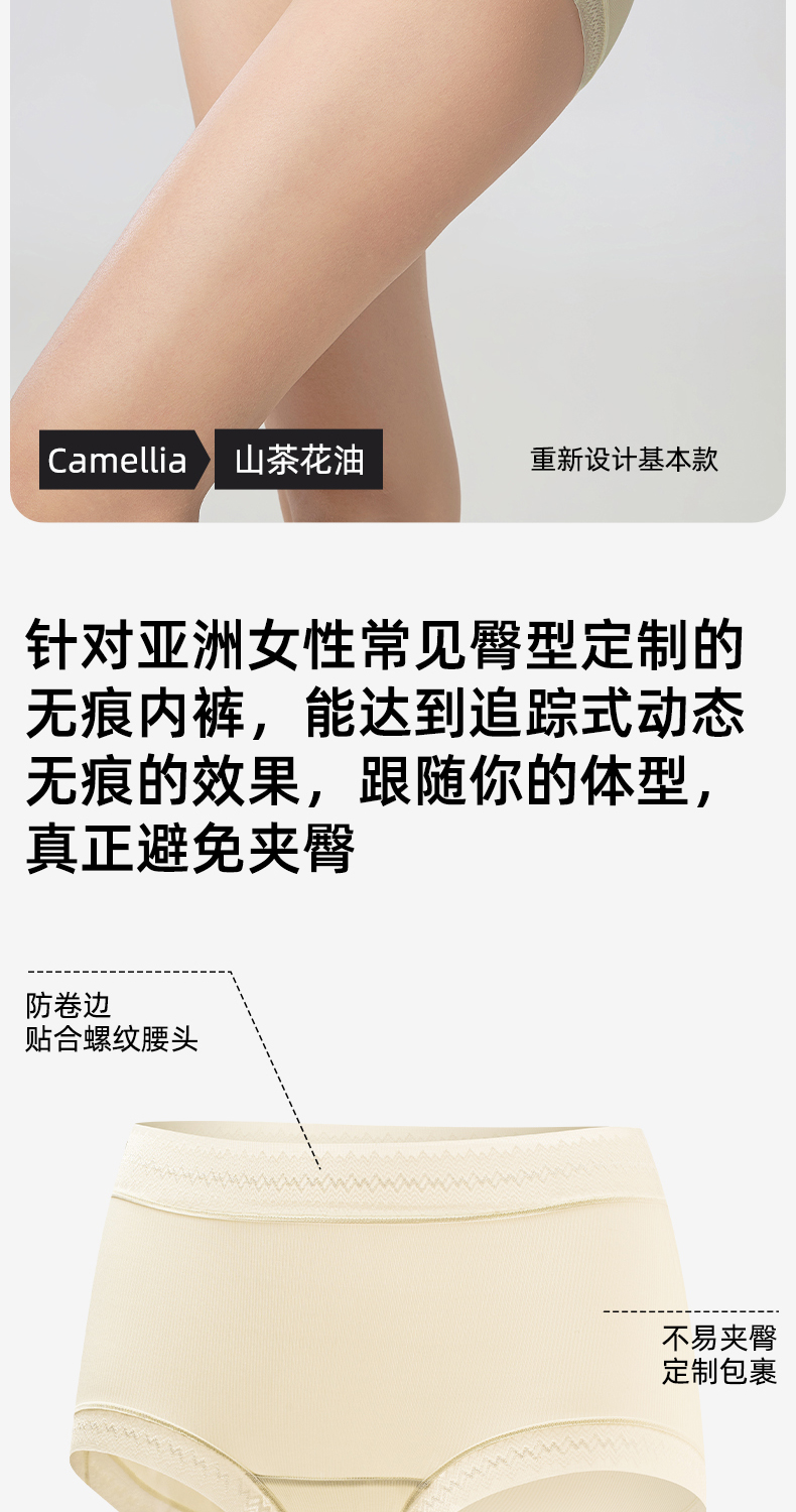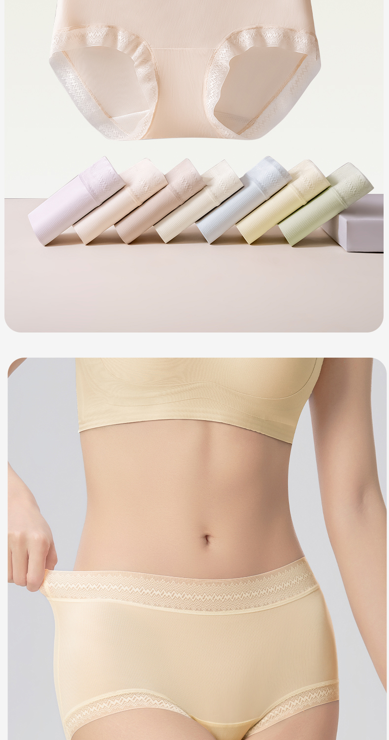 草本初色山茶花螺纹冰感女士中腰内裤六条装 全无痕轻盈无束缚 632款
