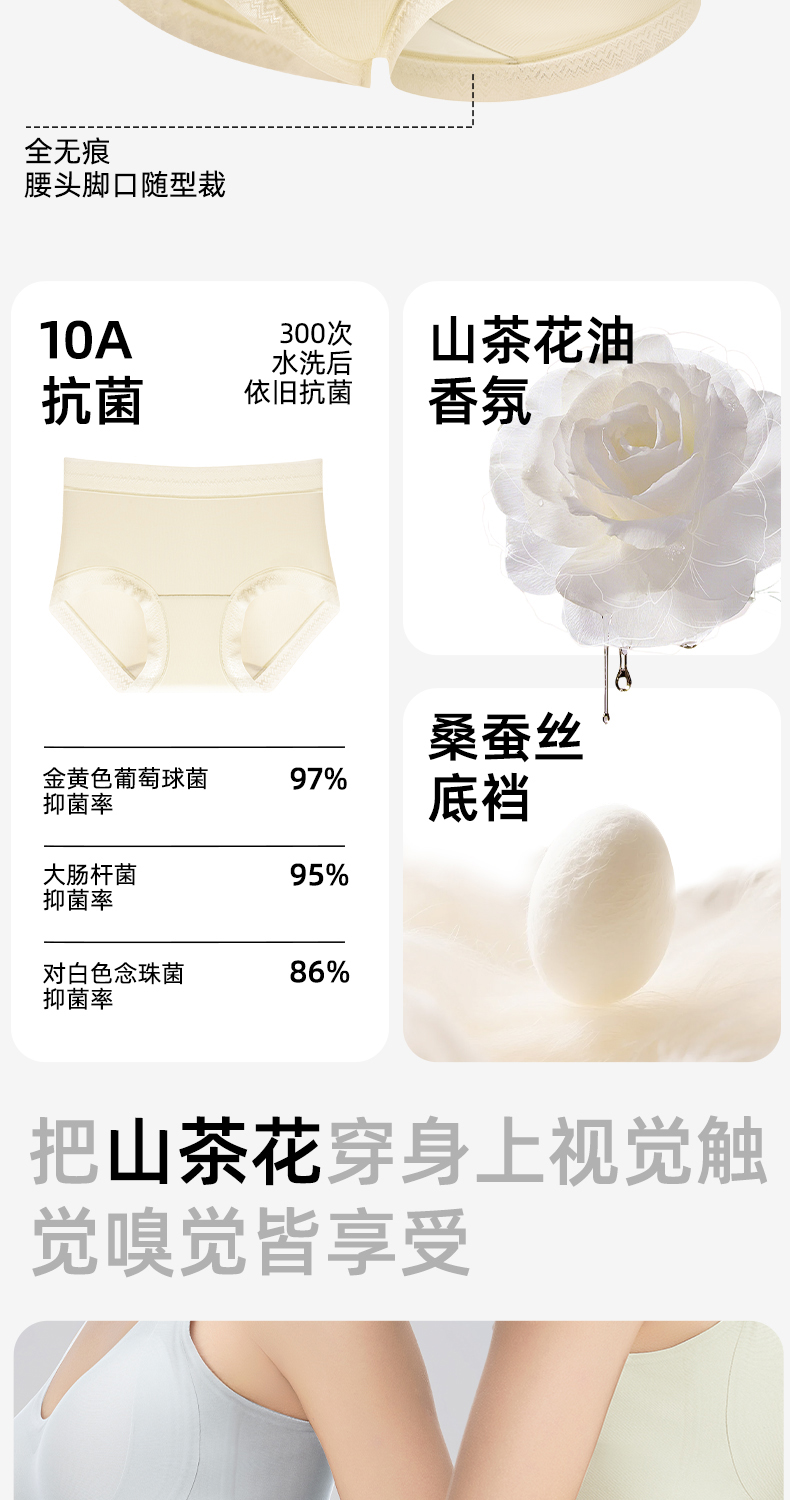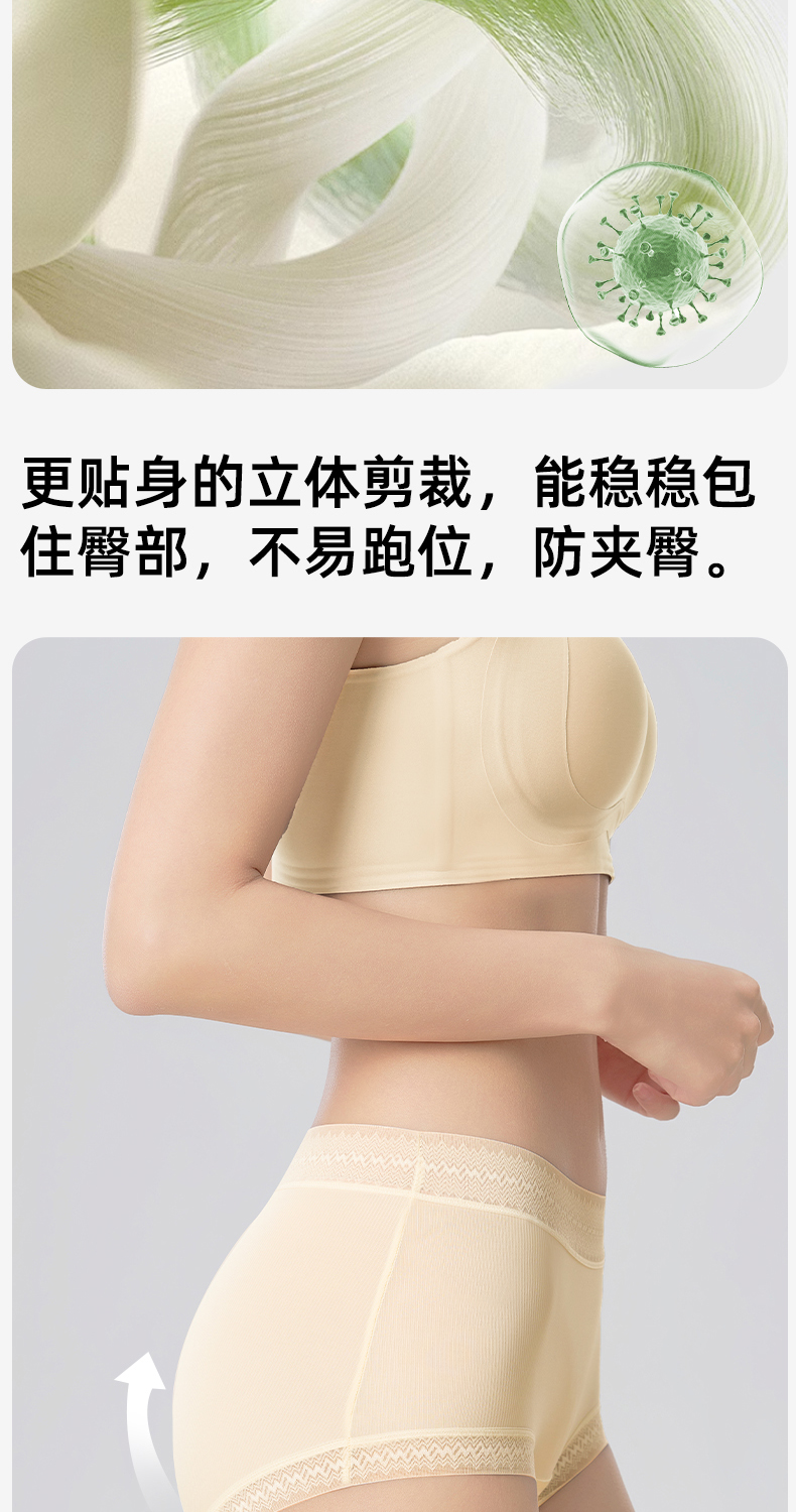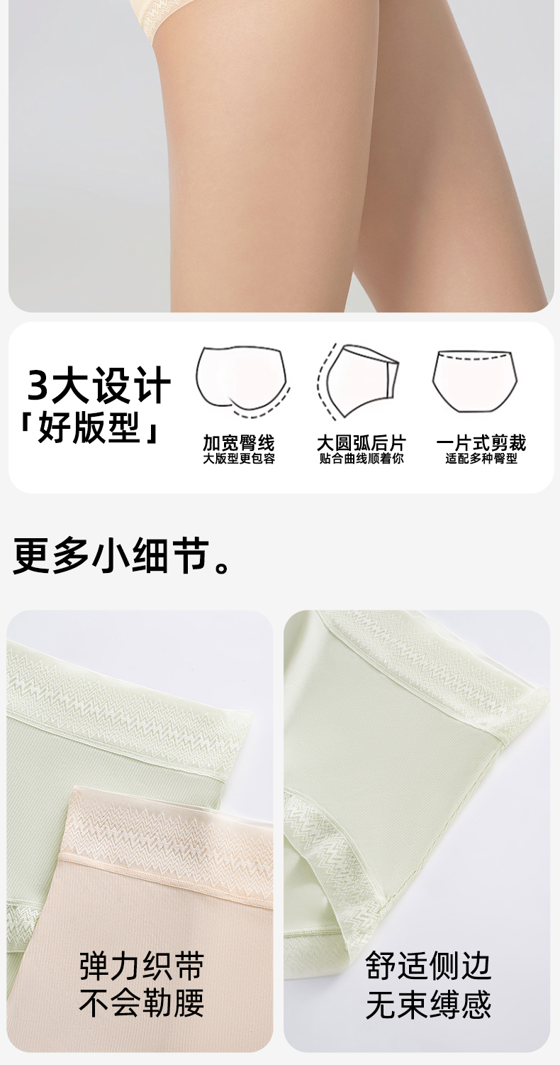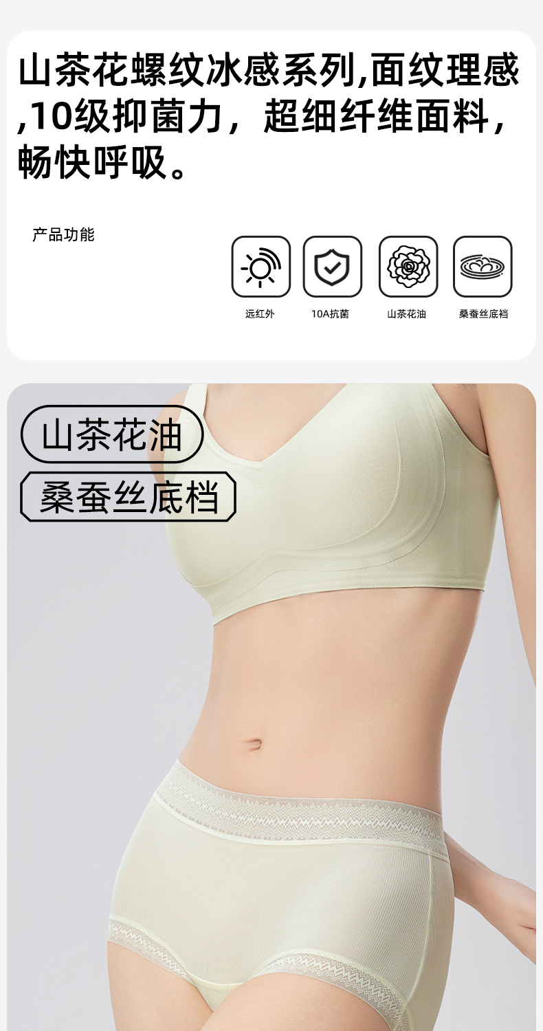 草本初色山茶花螺纹冰感女士中腰内裤六条装 全无痕轻盈无束缚 632款