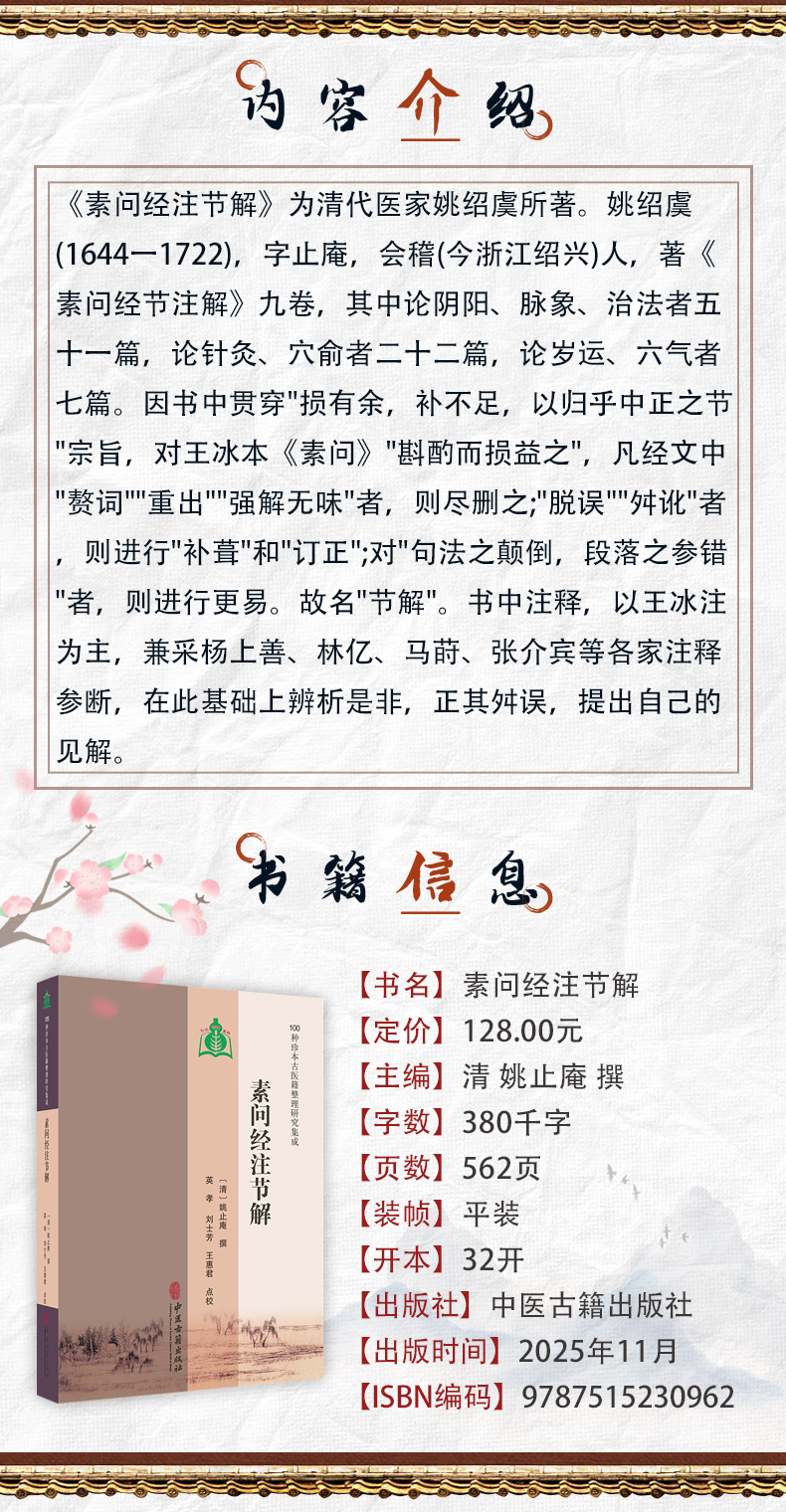 素问经注节解 100种珍本古医籍整理研究集成 清 姚止庵 撰 英孝 刘士芳 王惠君 点校 临床医学 9787515230962 中医古籍出版社