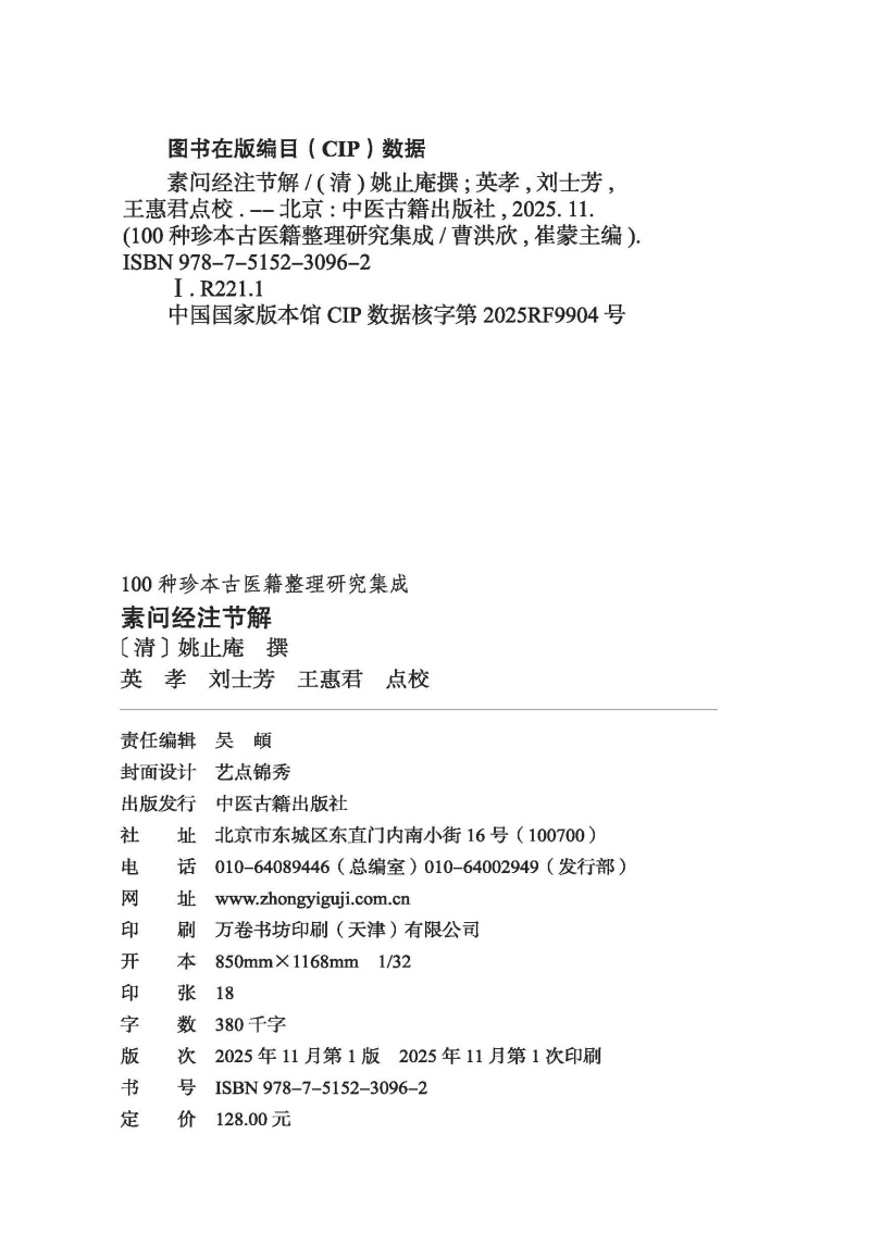 书名:素问经注节解 100种珍本古医籍整理研究集成