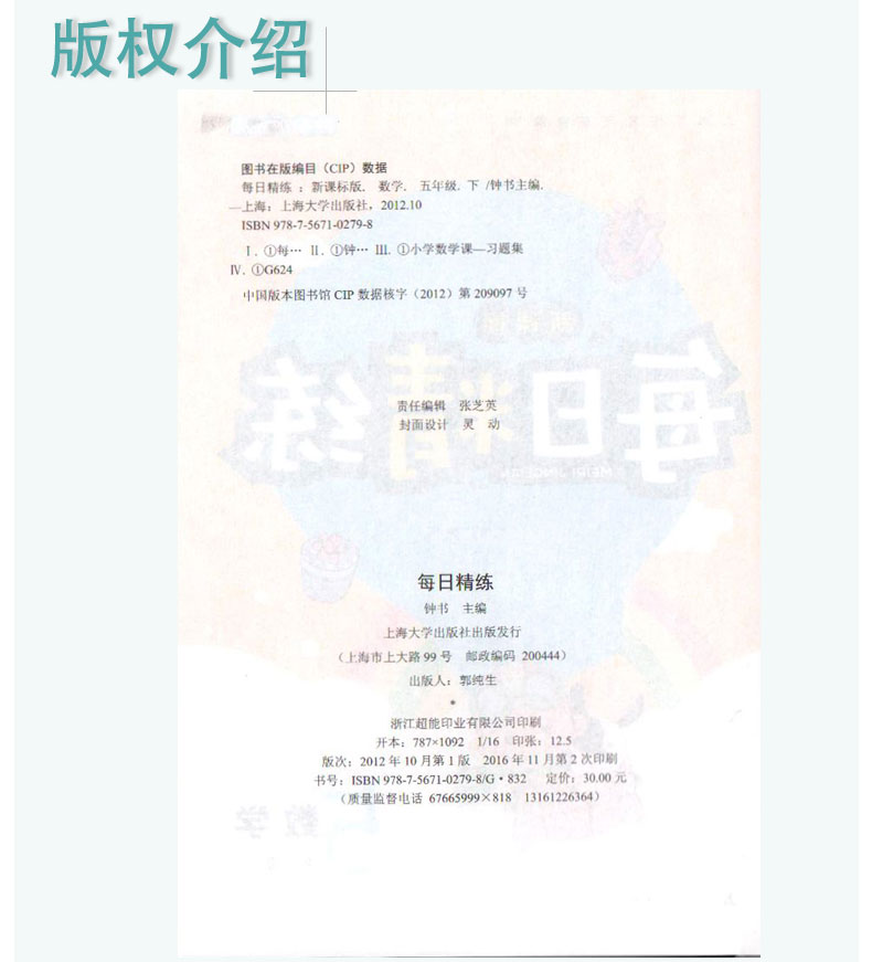 钟书金牌 每日精练数学5年级(下) 第二学期 上海百位名师联袂编写 配套上海地区中小学教辅