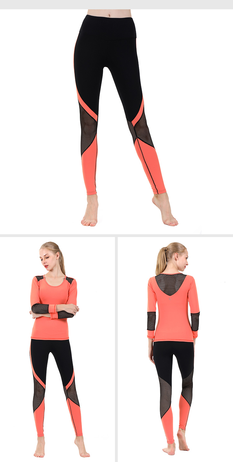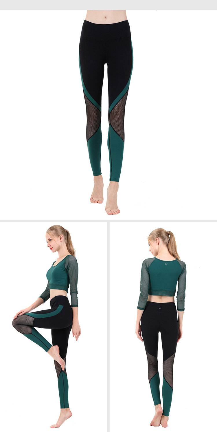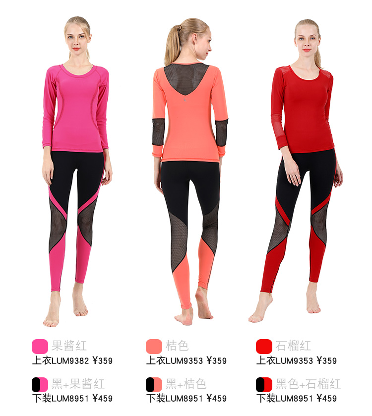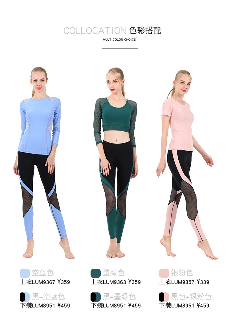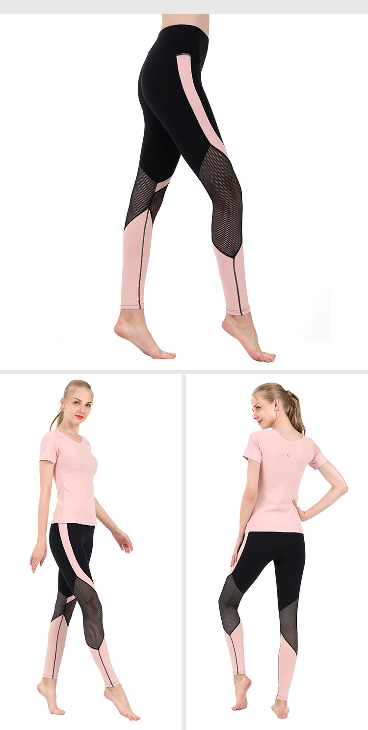 LUM8951露檬拼网拼色中高腰瑜伽长裤锦纶速干瑜伽健身长裤