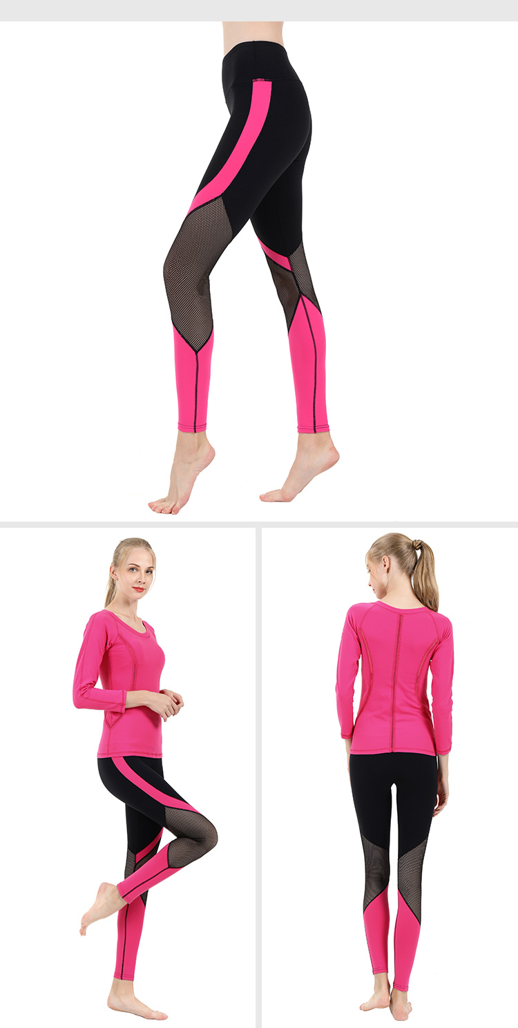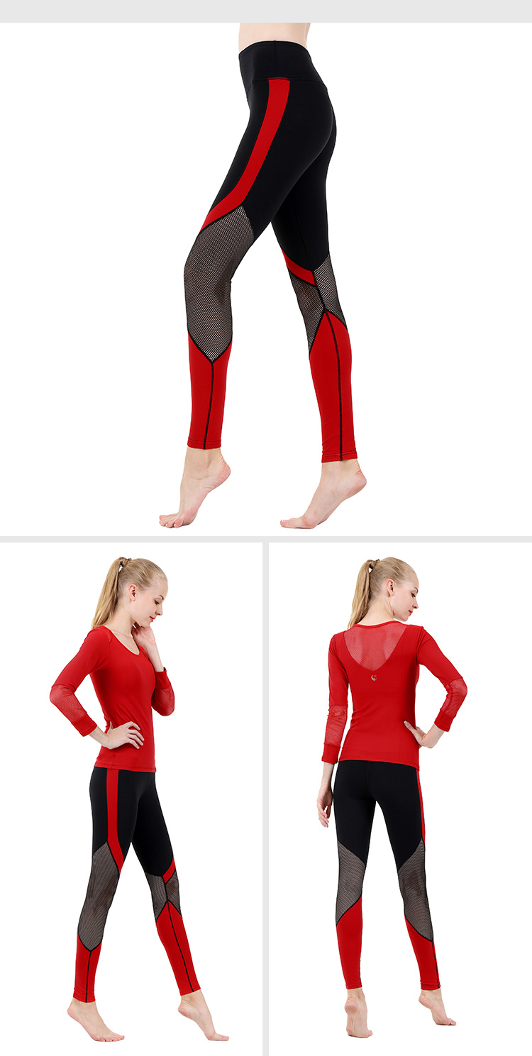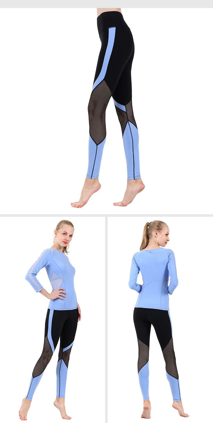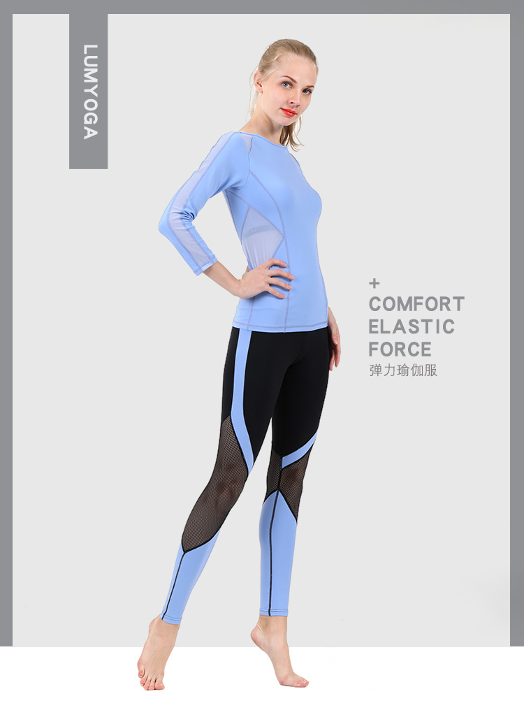 LUM8951露檬拼网拼色中高腰瑜伽长裤锦纶速干瑜伽健身长裤