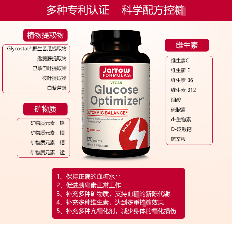 【仰仰专享】杰诺Jarrow血糖优化剂120粒/瓶苦瓜铬元素多重控糖平衡片