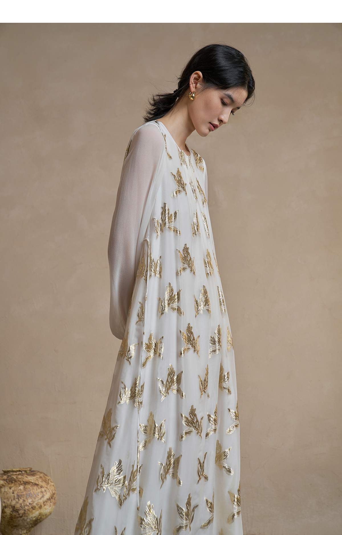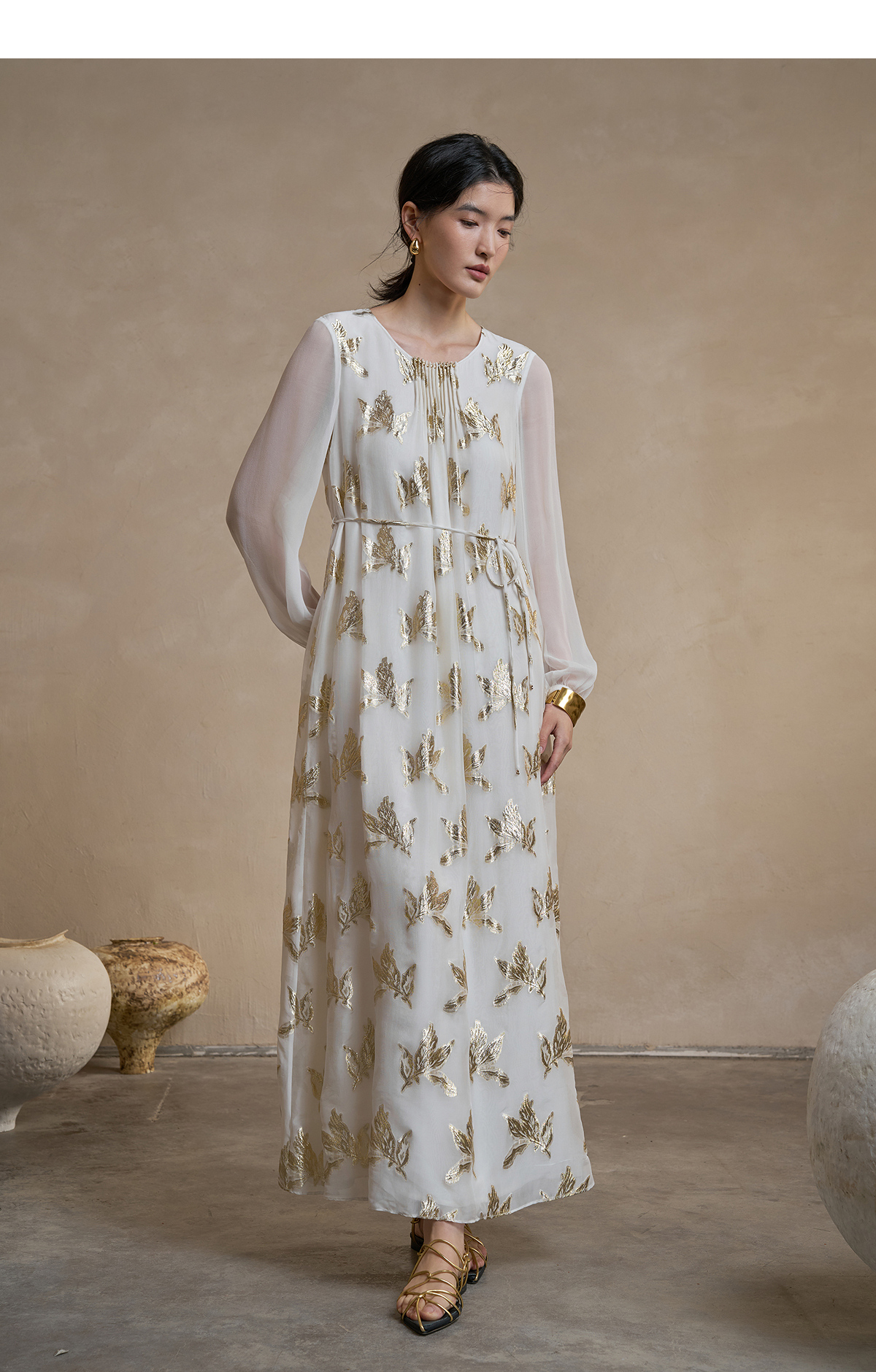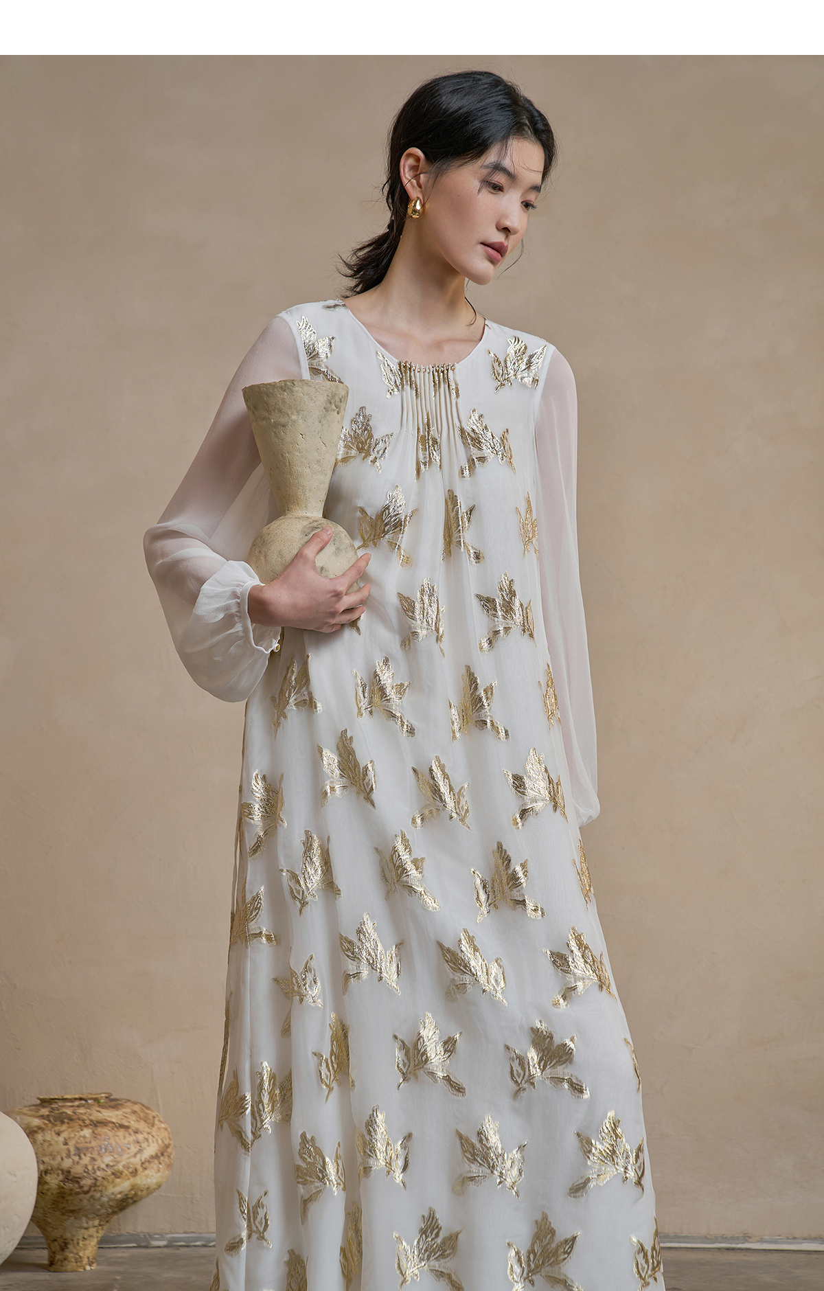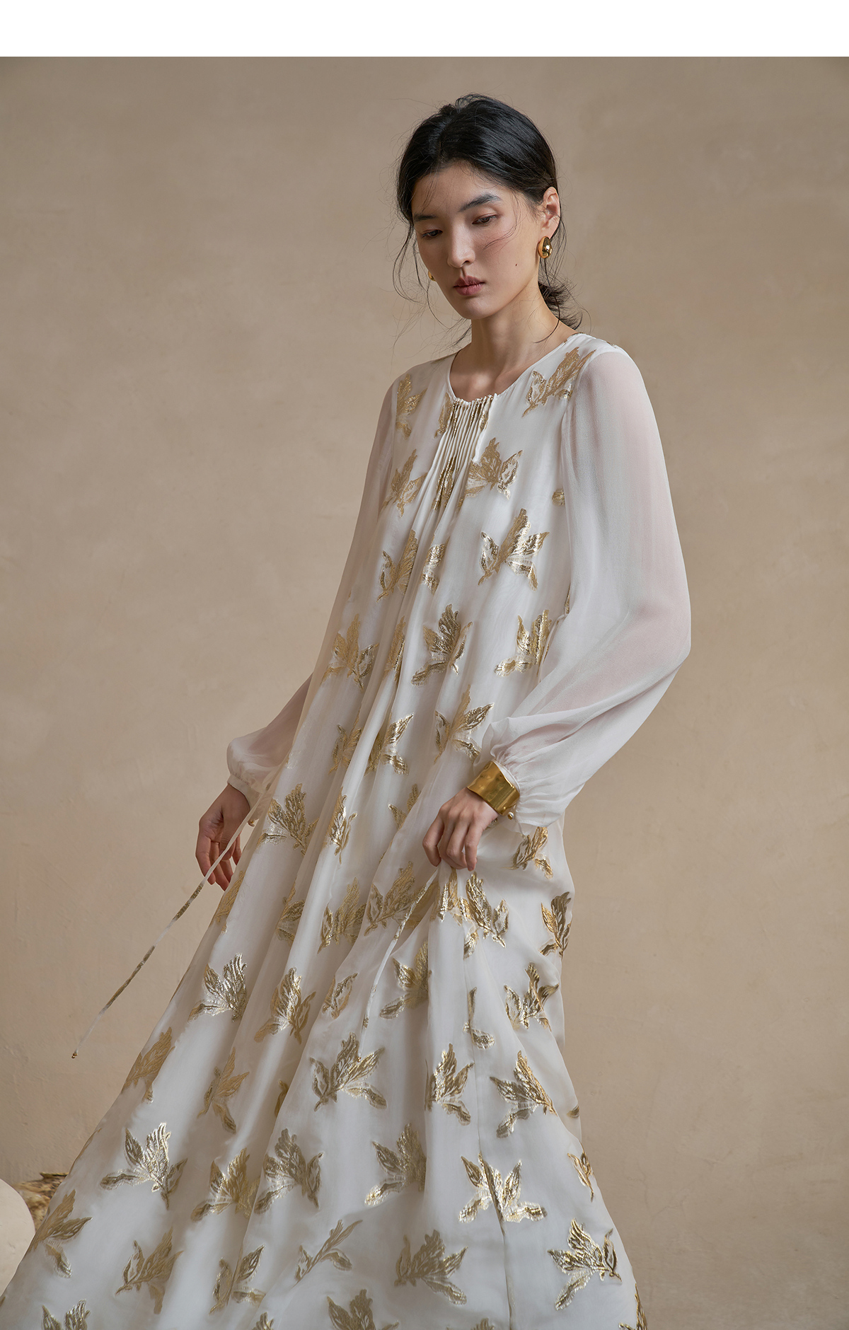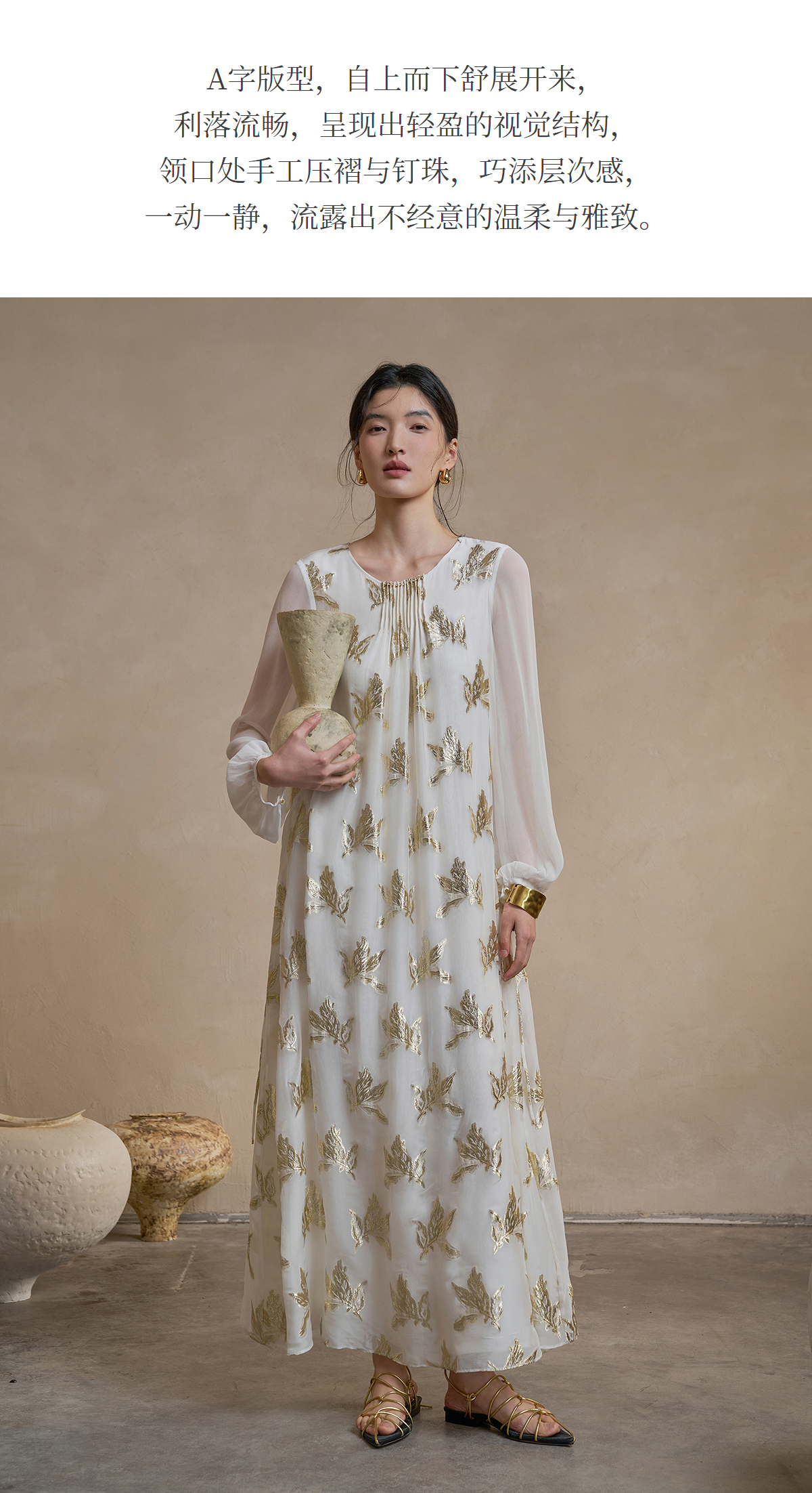 【林栖设计小店】 花影鎏光|真丝连衣裙剪花绡钉珠2026早春新款长裙子女1961087