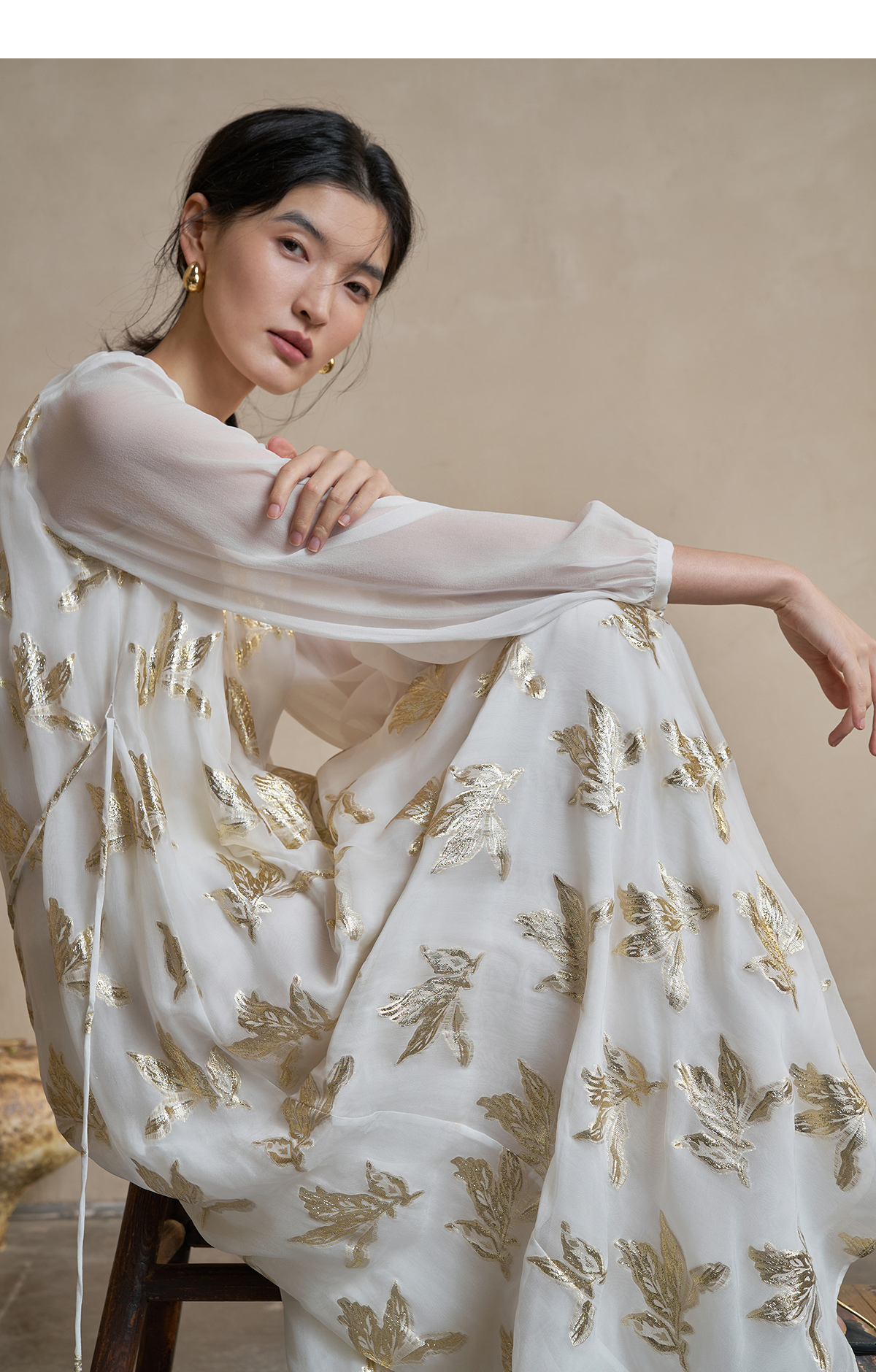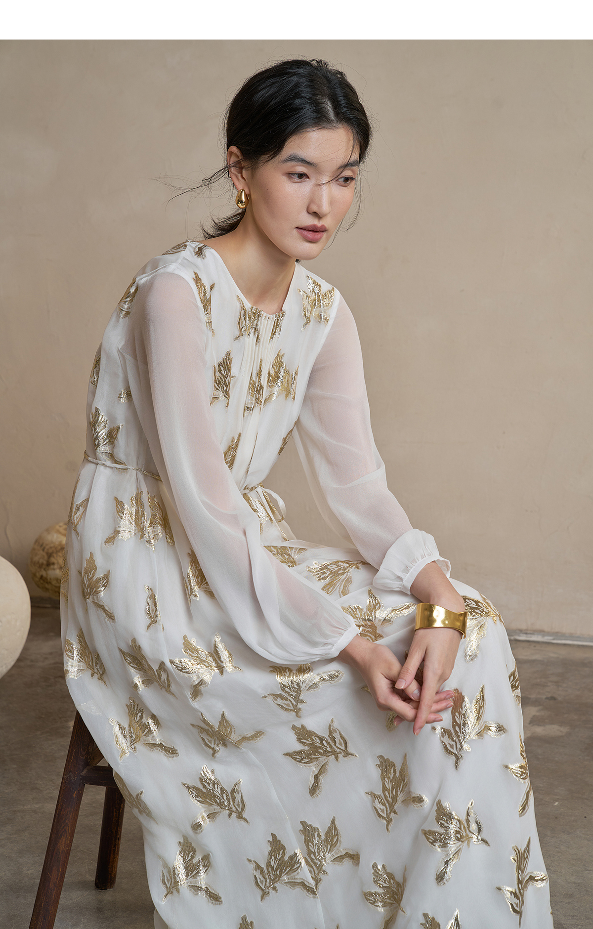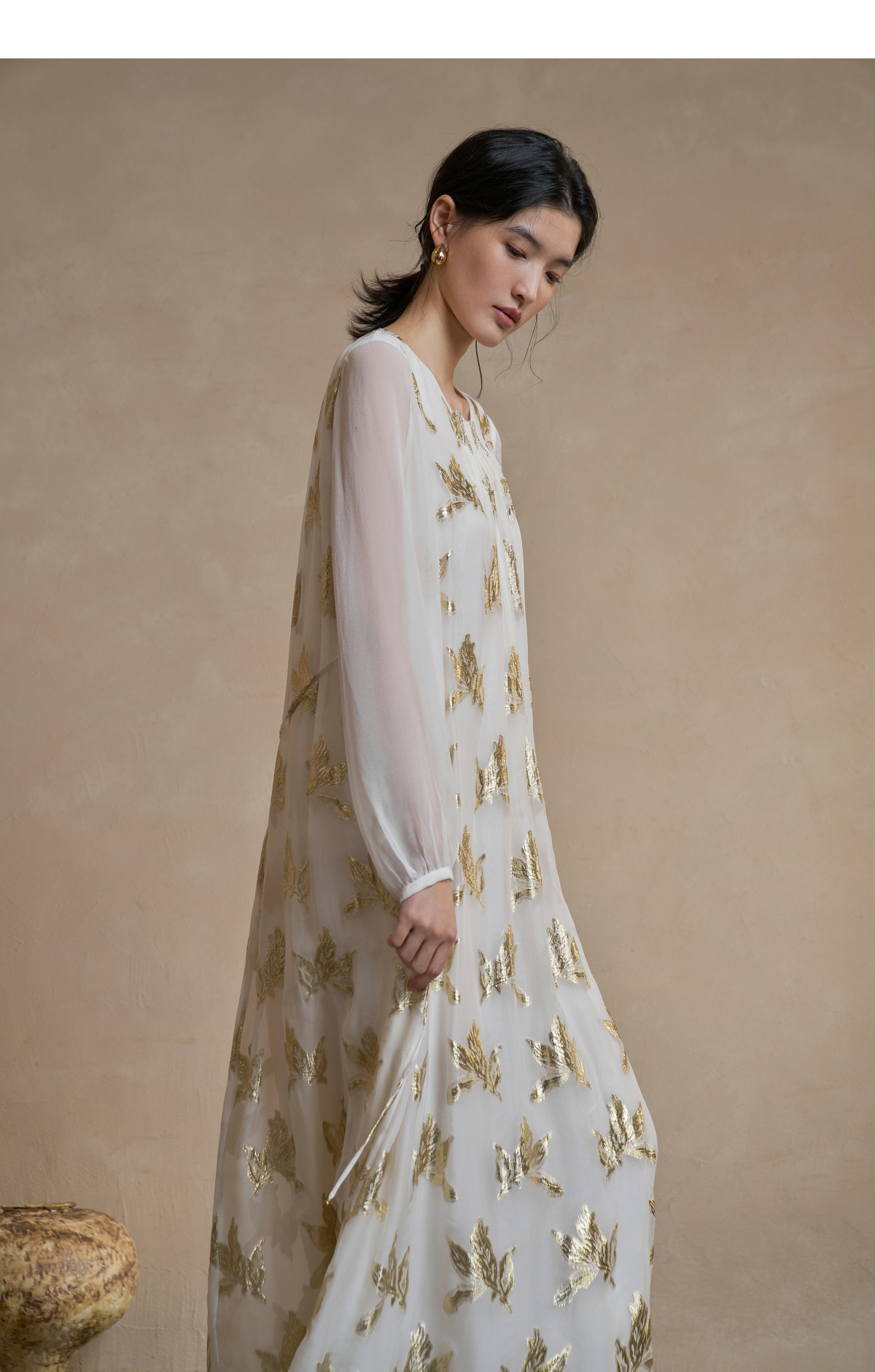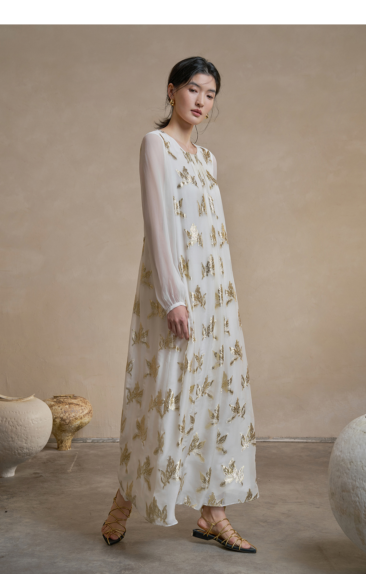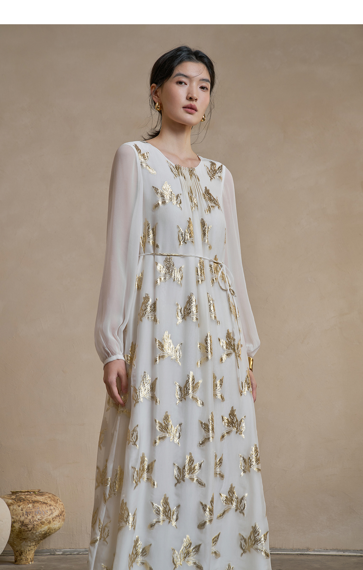 【林栖设计小店】 花影鎏光|真丝连衣裙剪花绡钉珠2026早春新款长裙子女1961087