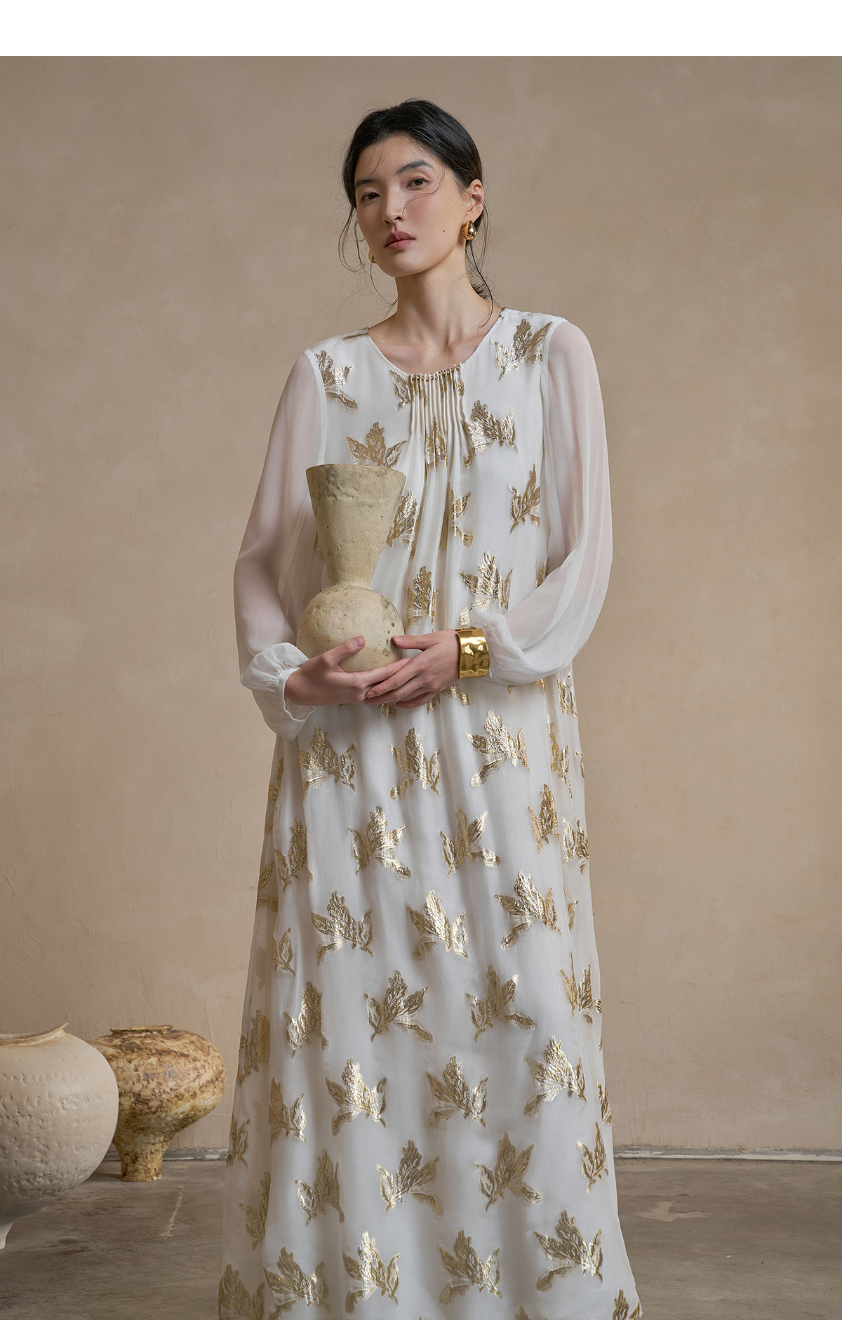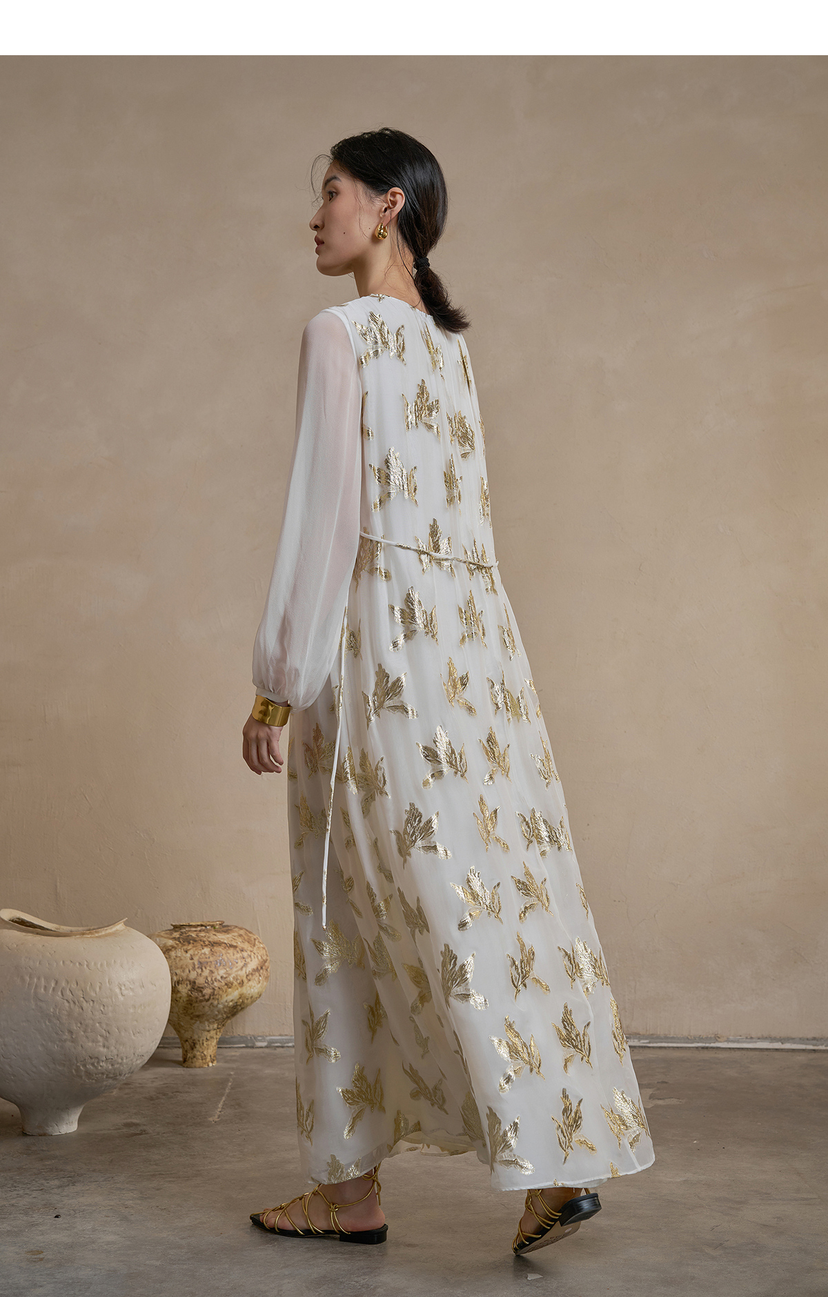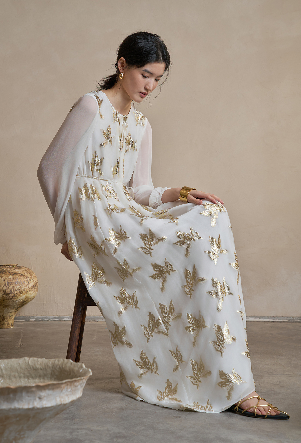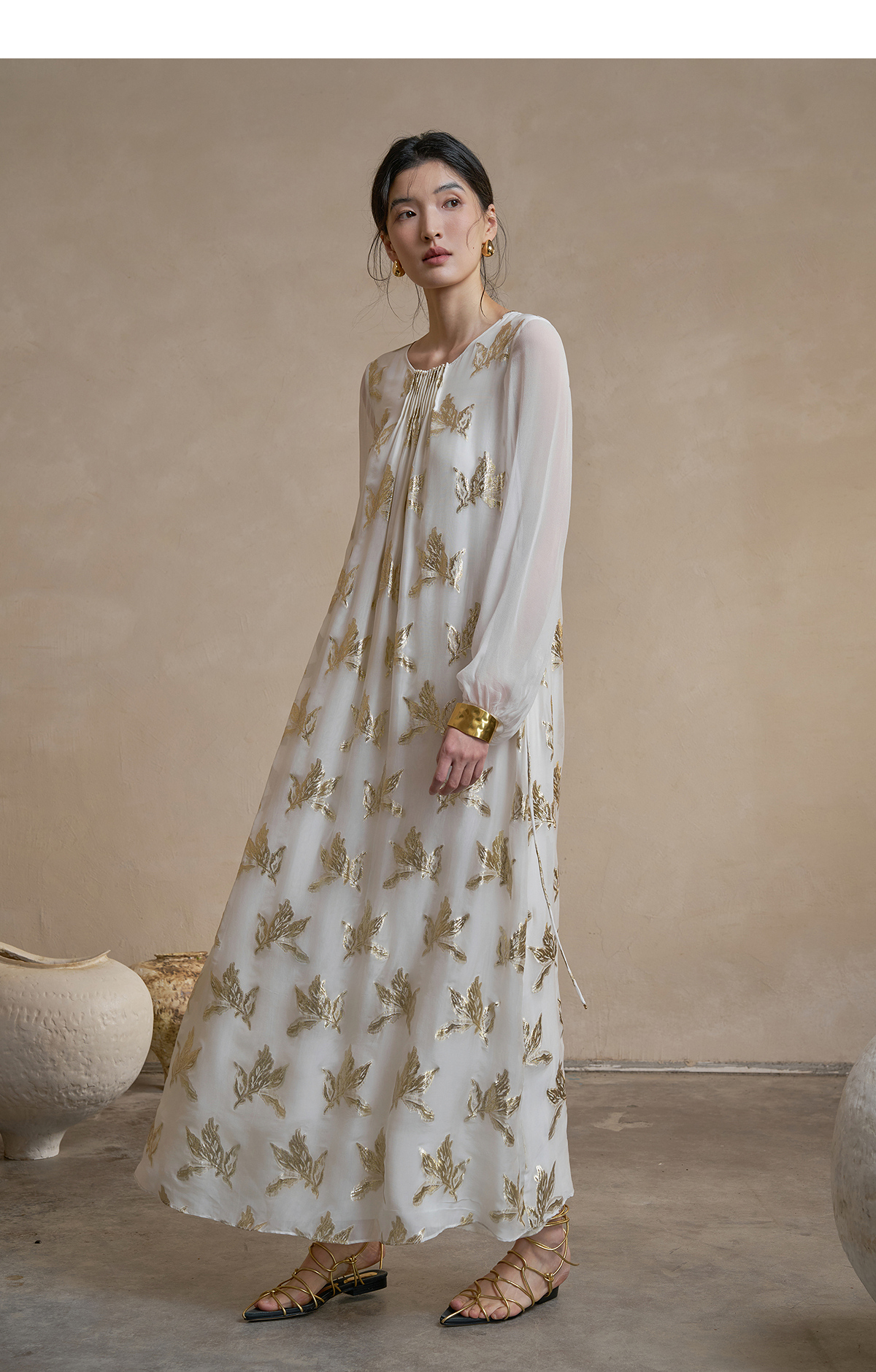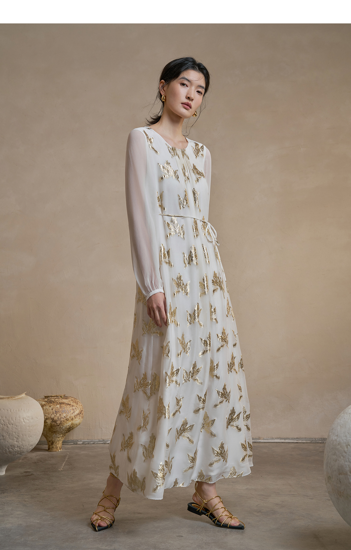 【林栖设计小店】 花影鎏光|真丝连衣裙剪花绡钉珠2026早春新款长裙子女1961087
