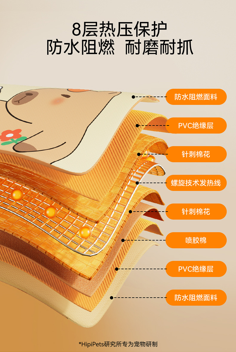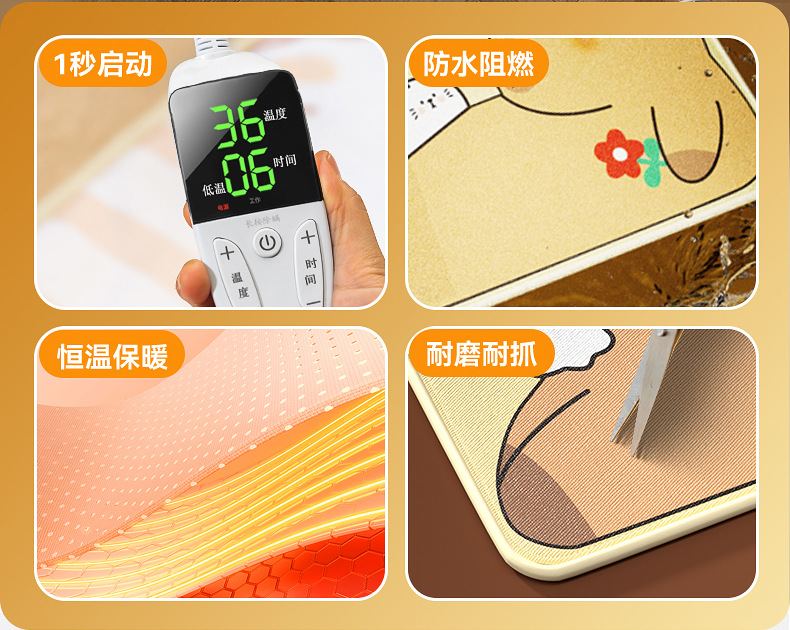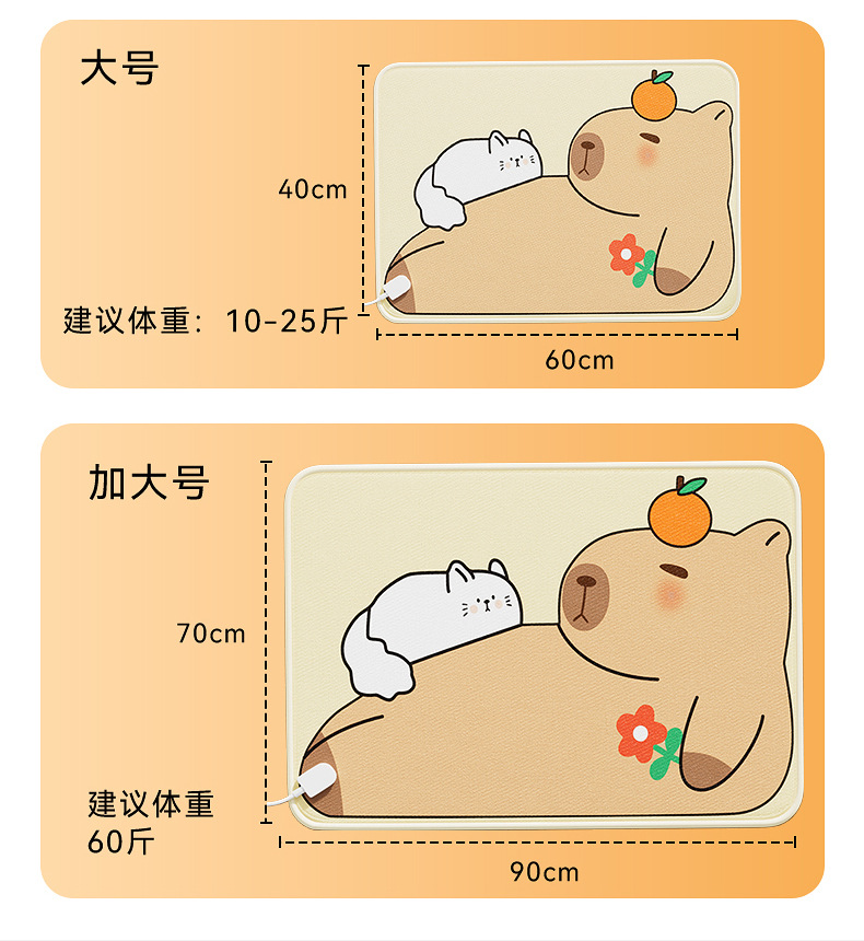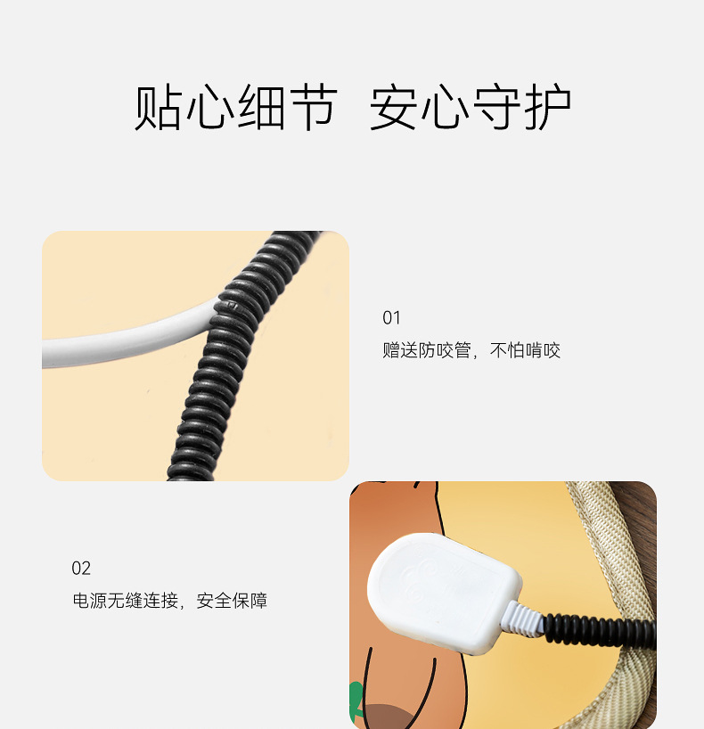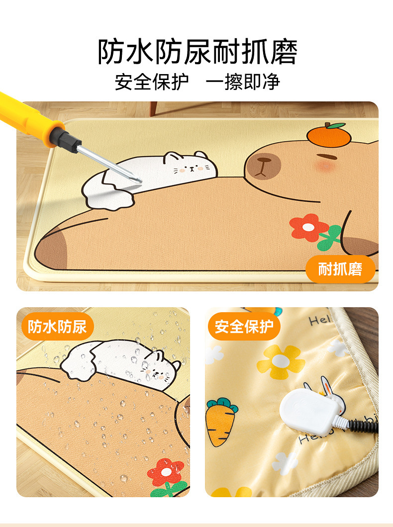 送防咬管【8层热压保护❗️速热恒温】秋冬瞌睡水豚电热毯加热垫保暖狗垫子猫垫子恒温调节款宠物电热毯。ja
