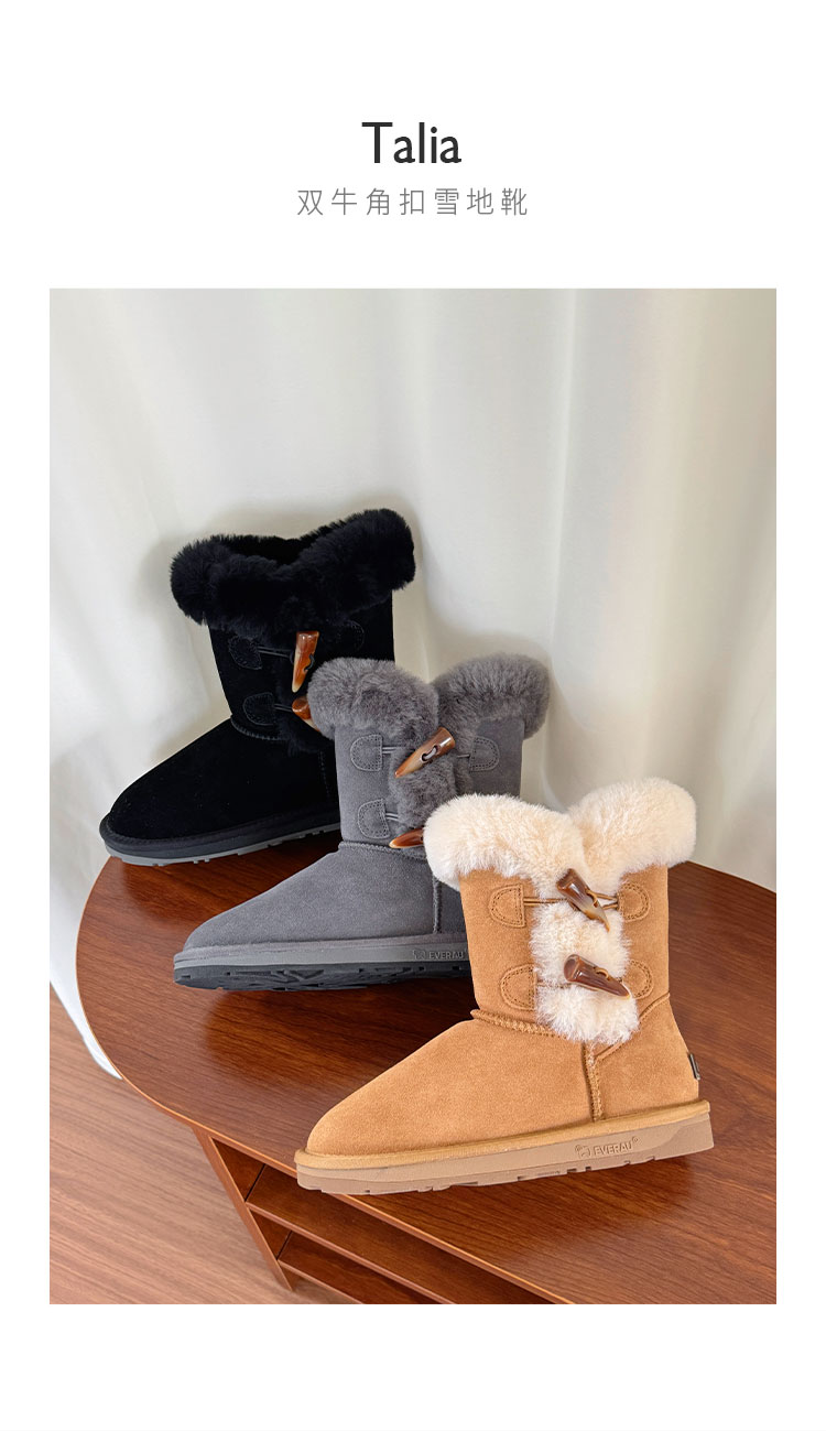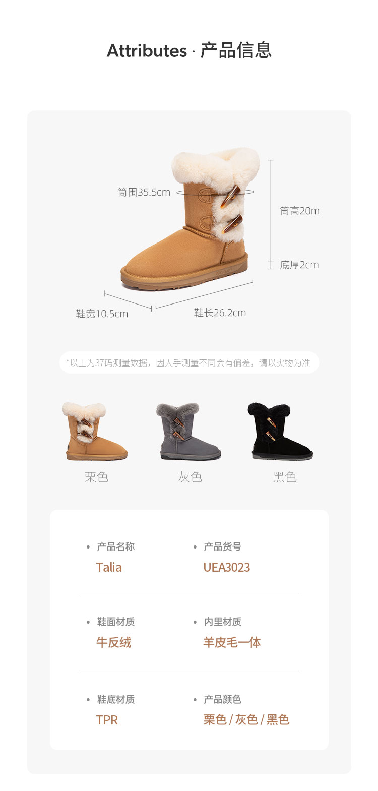 EVERAU羊皮毛一体雪地靴女士2025冬季新款羊毛短筒女靴子UEA3023 商品图3