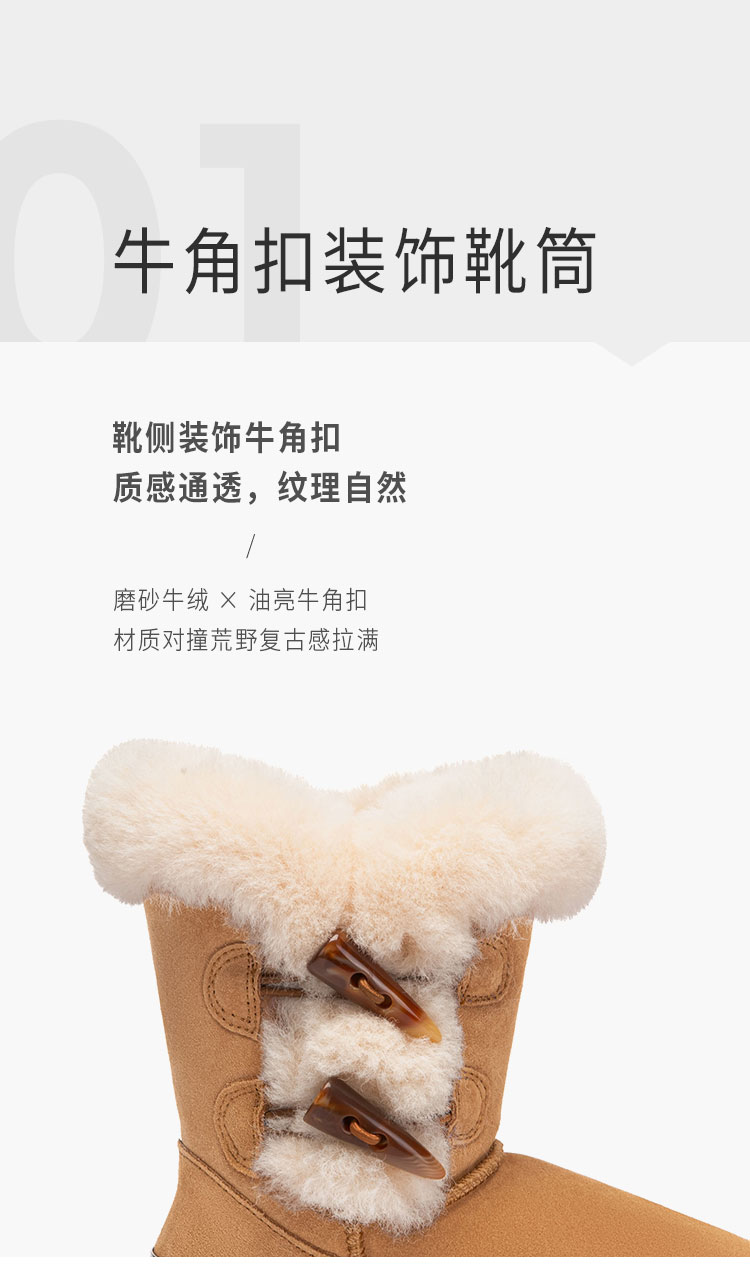 EVERAU羊皮毛一体雪地靴女士2025冬季新款羊毛短筒女靴子UEA3023 商品图2