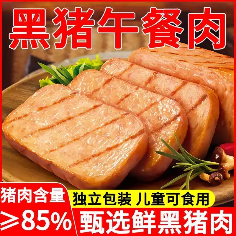 【福利❗️黑猪午餐肉300g/袋更值】甄选肉源,入口安心,肉感扎实,鲜香弹韧,真猪肉,高蛋白!独立包装精选-d