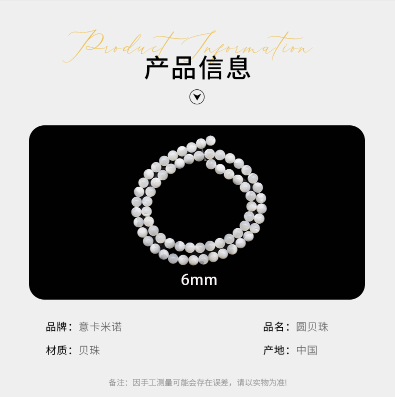 圆贝珠6mm 珠料意卡米诺手串念珠单颗珠子散珠半成品