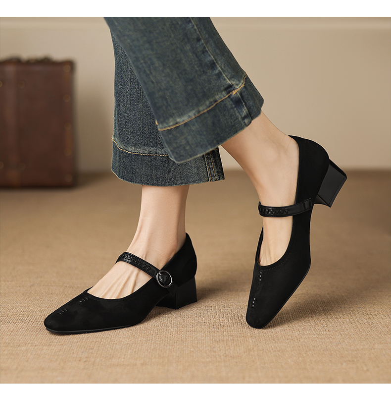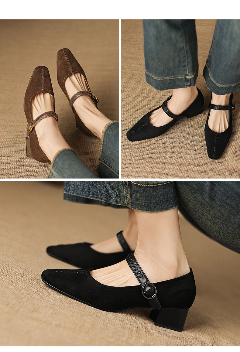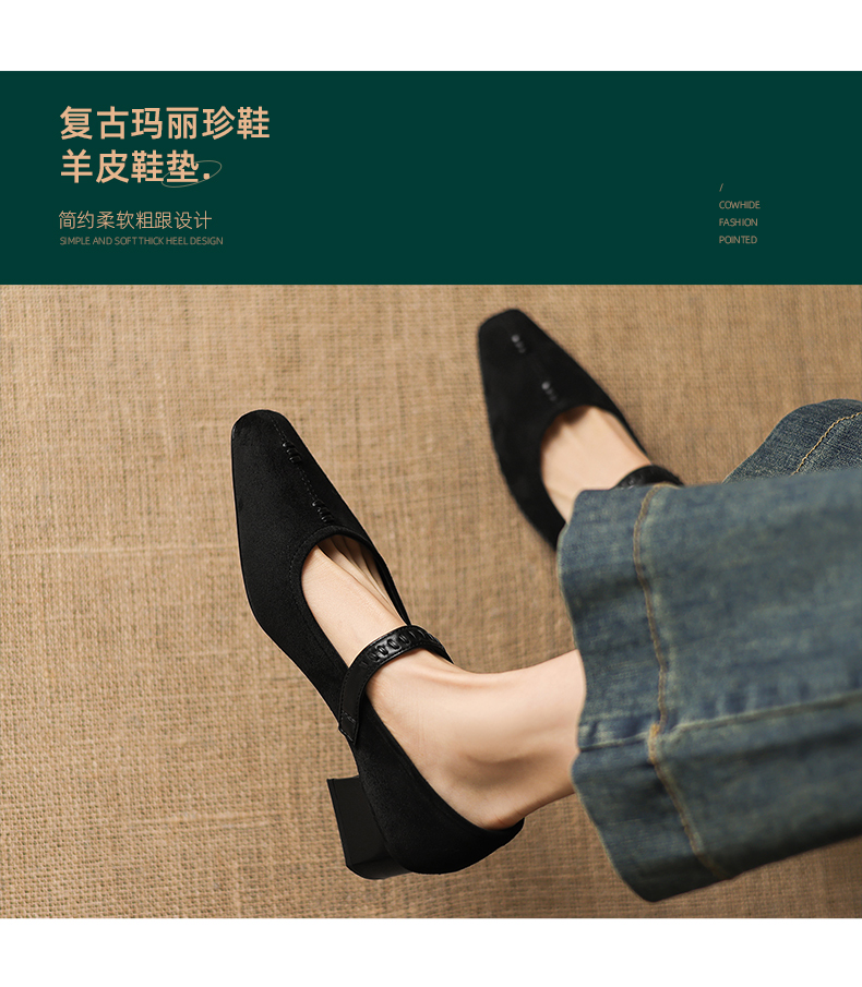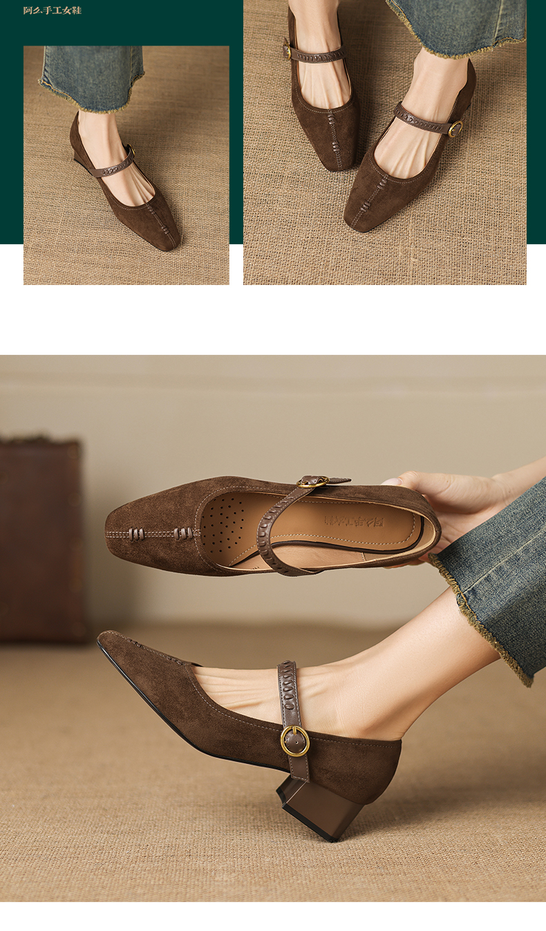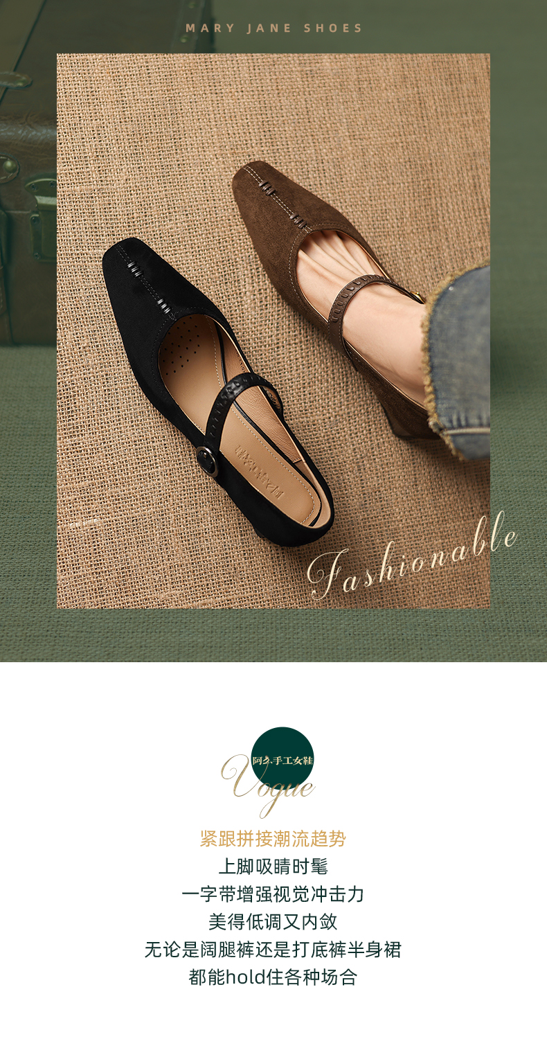 阿么手工女鞋复古一字扣玛丽珍鞋女真皮百搭日常浅口气质单鞋4CM