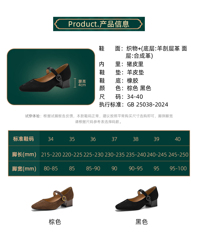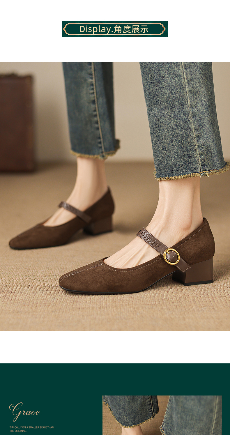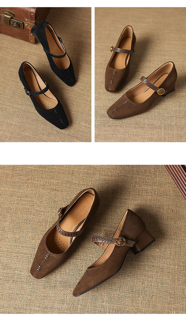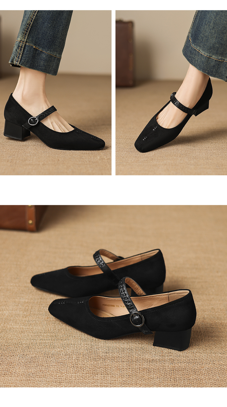 阿么手工女鞋复古一字扣玛丽珍鞋女真皮百搭日常浅口气质单鞋4CM
