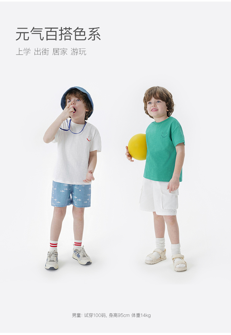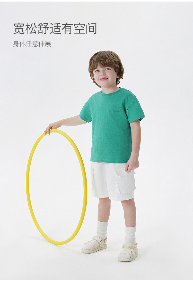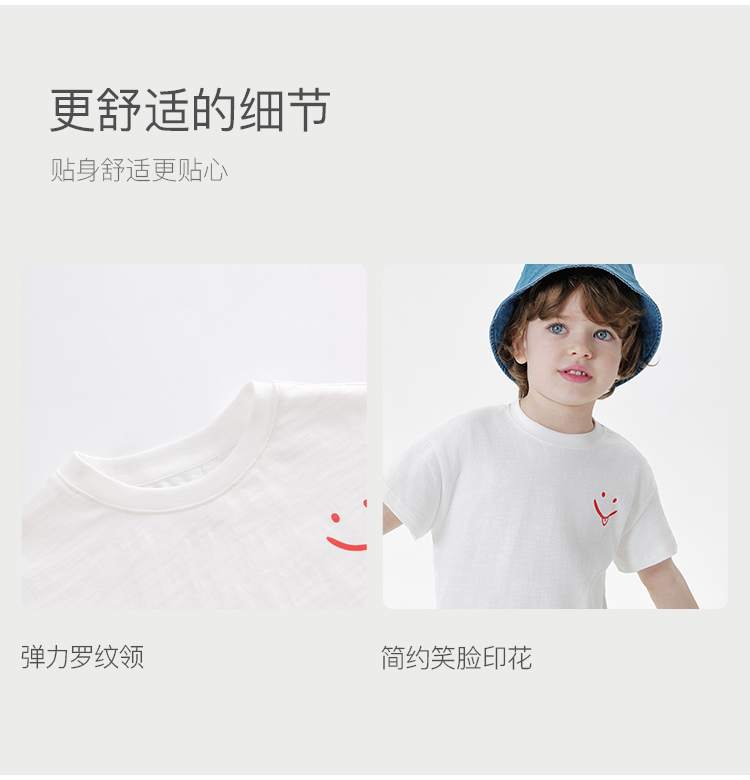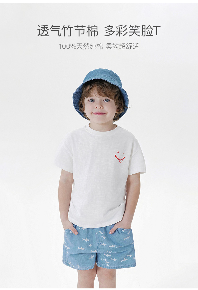 马克珍妮夏装新款 男童竹节棉笑脸印花短袖T恤230853/550907