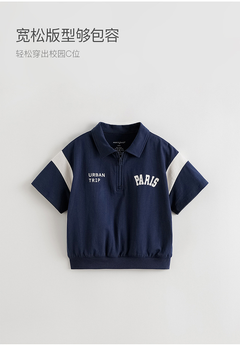 马克珍妮男童美式学院休闲polo衫 儿童短袖T恤上衣夏装新款550577