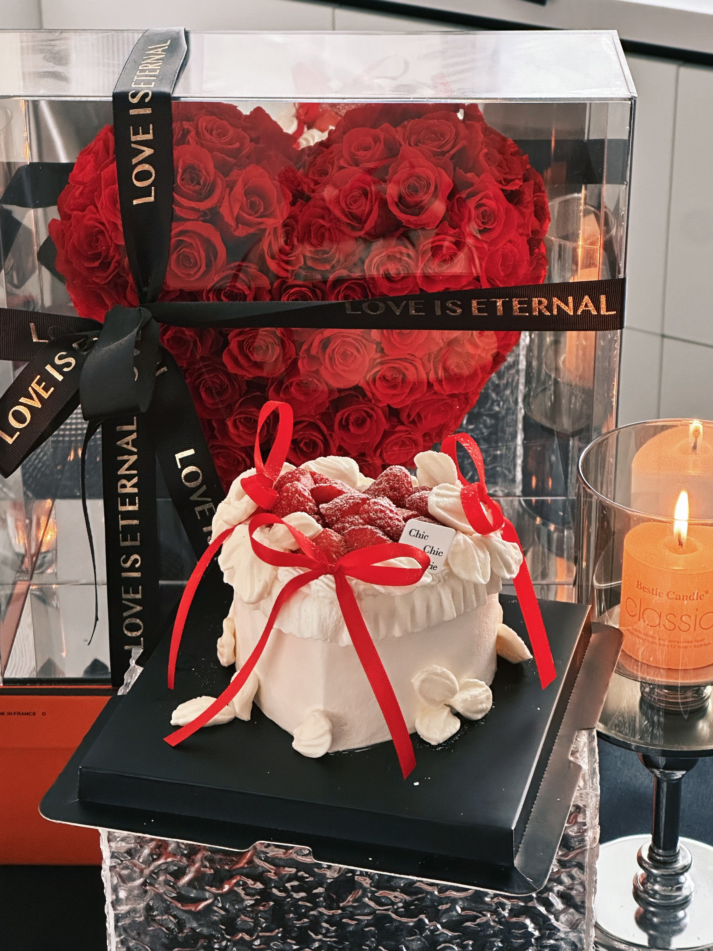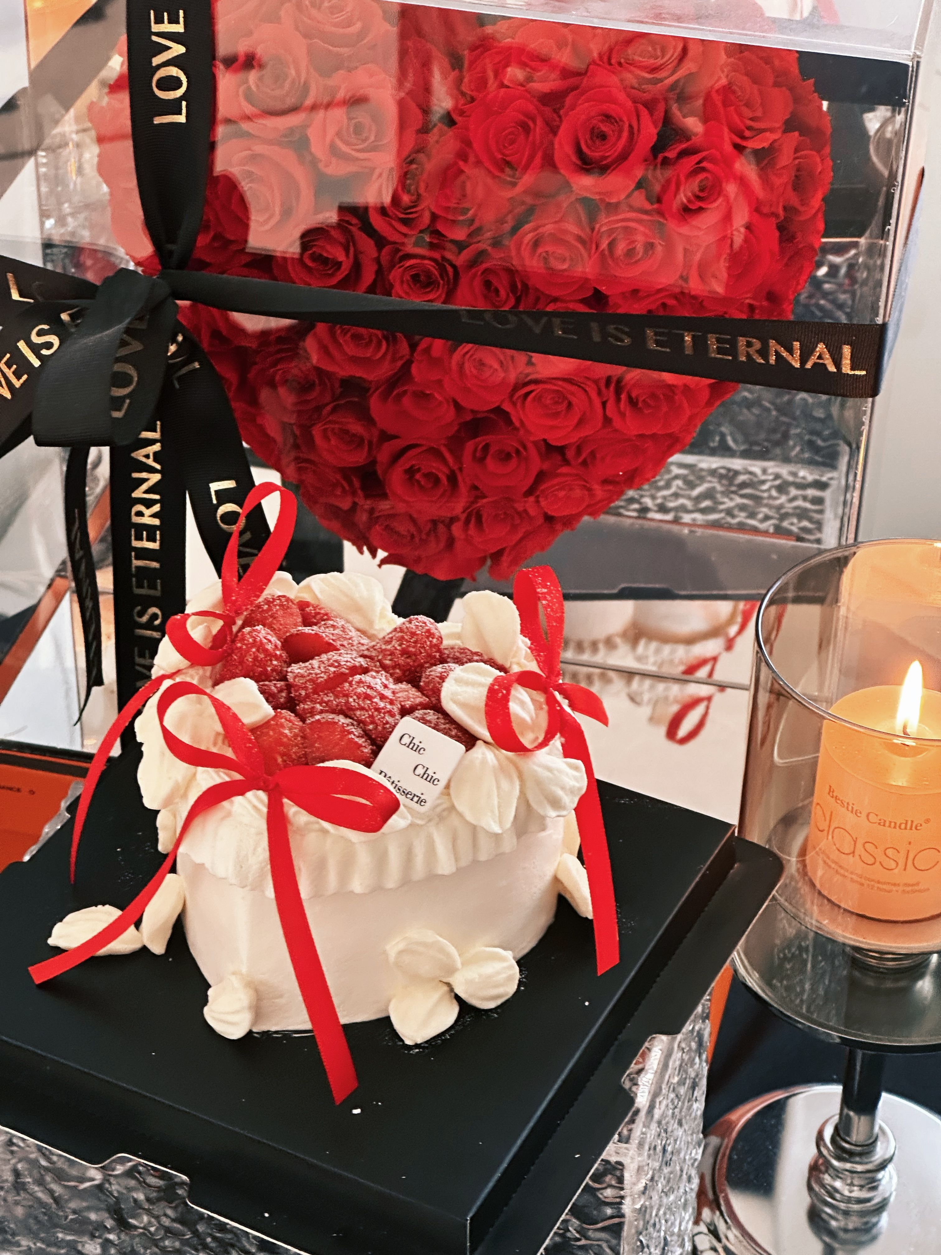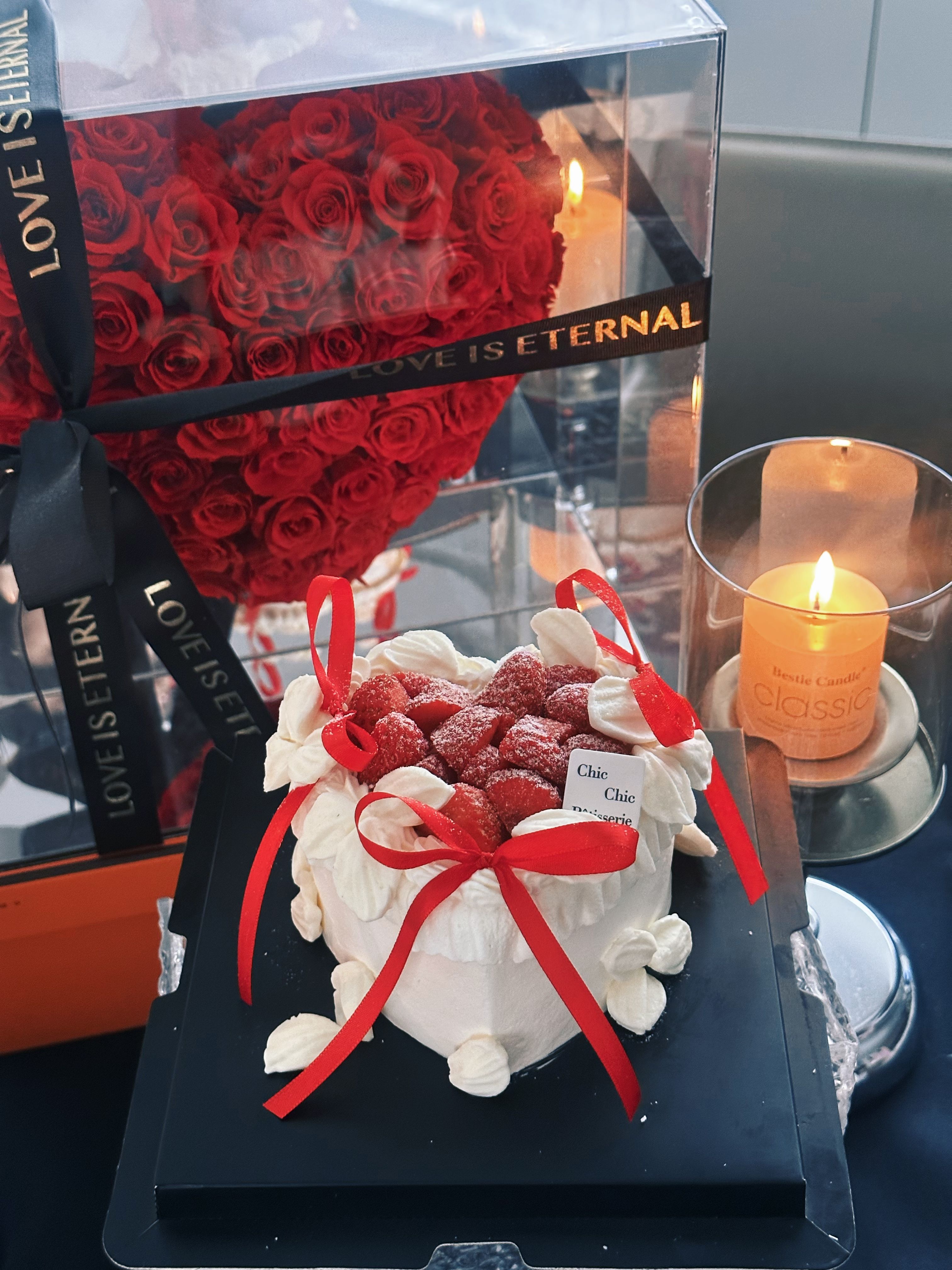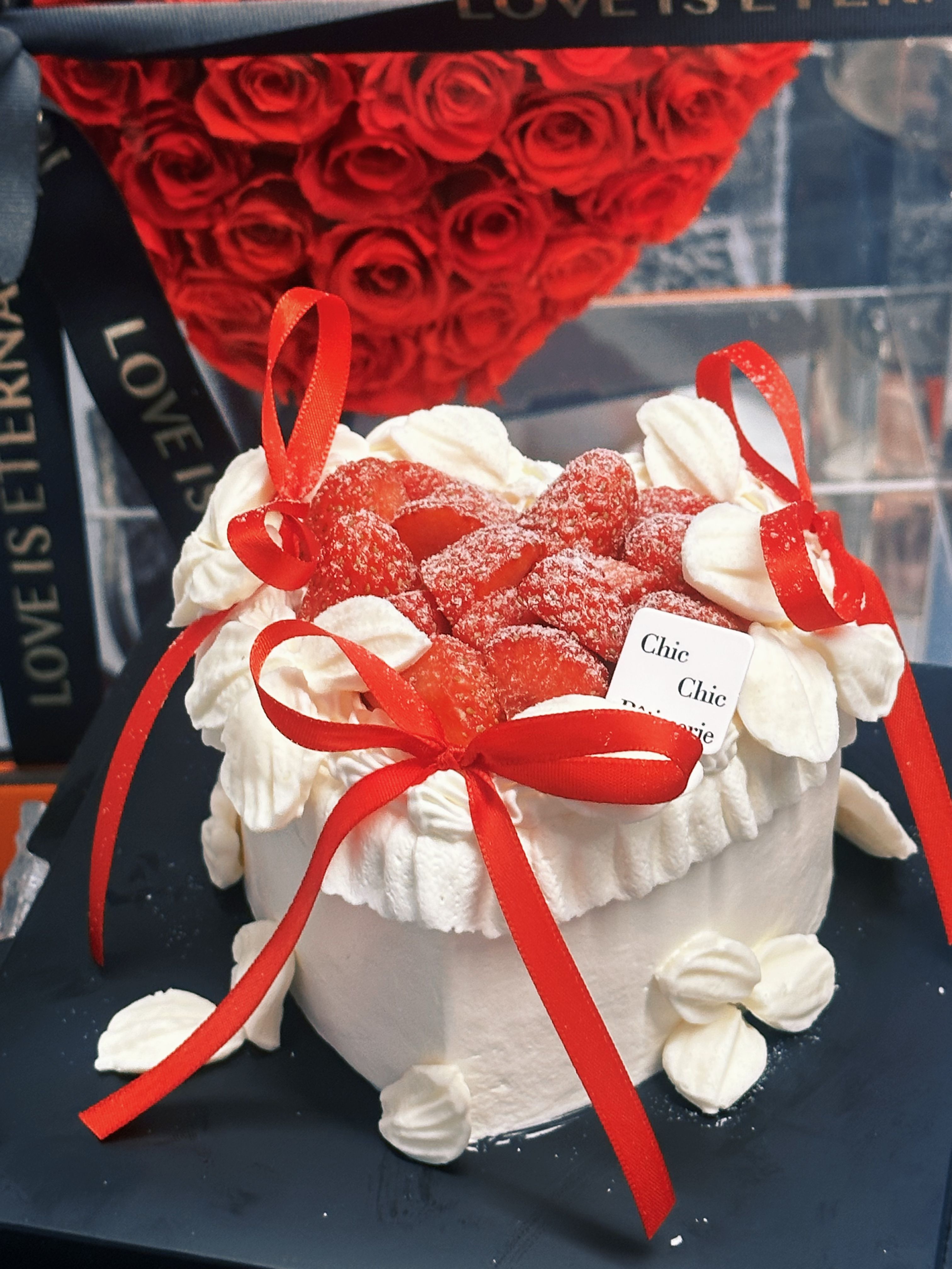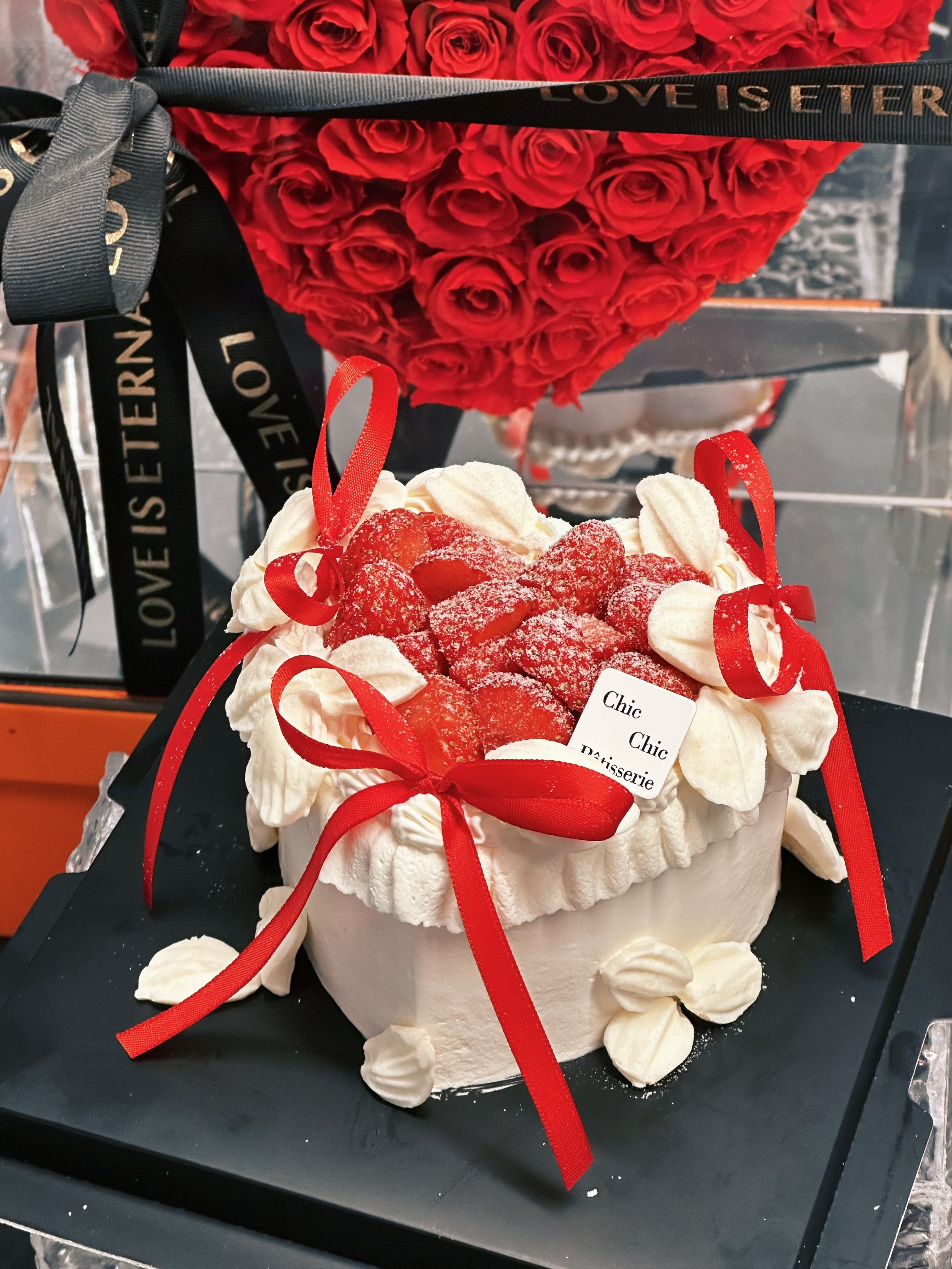 爱心草莓蝴蝶结蛋糕 | 昔果