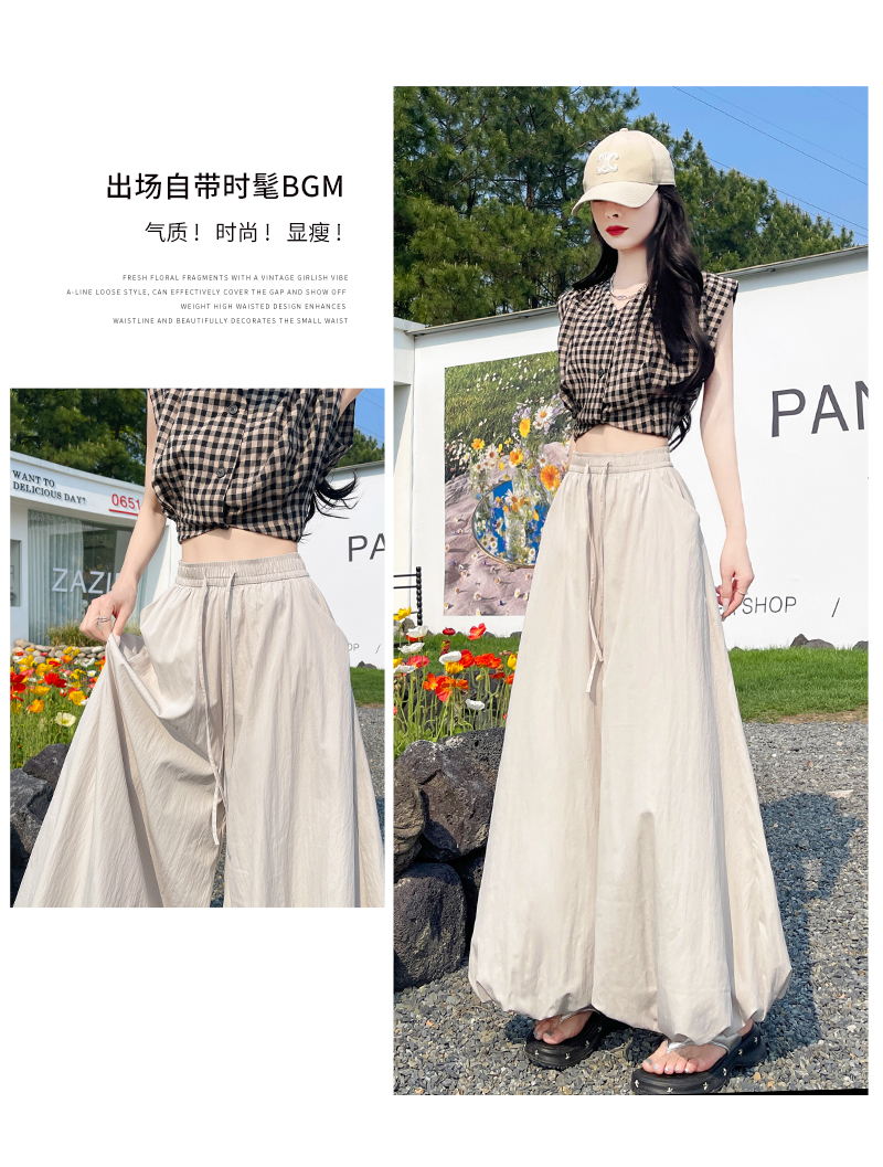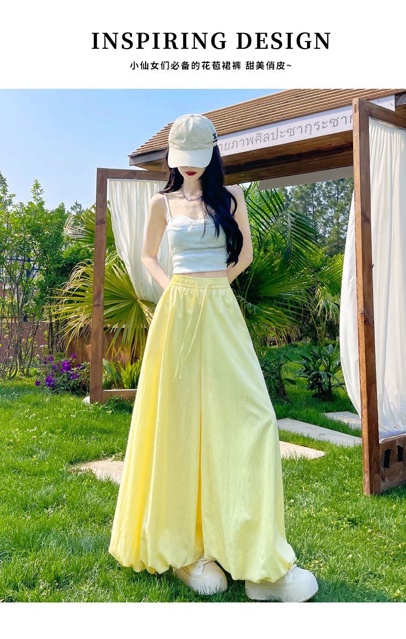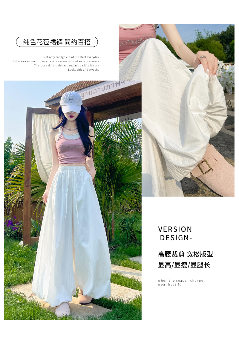 【YW】无忧购韩系慵懒感蓬蓬高腰显瘦宽松九分休闲阔腿花苞裙裤H-1813(截单后3-5天发货)