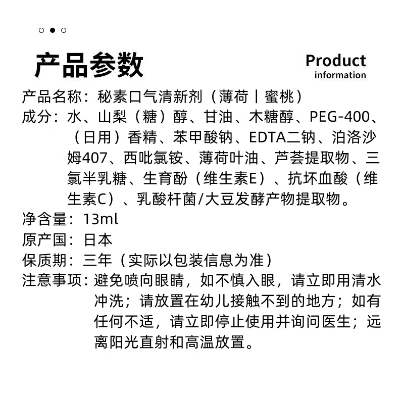 日本进口秘素口气清新剂13ml 【薄荷|蜜桃香型】