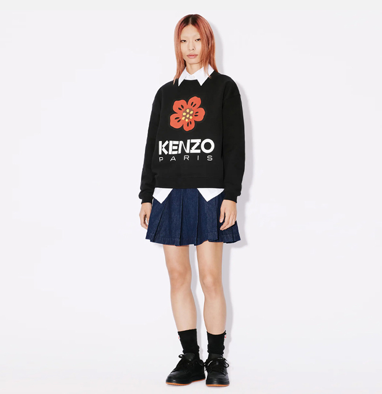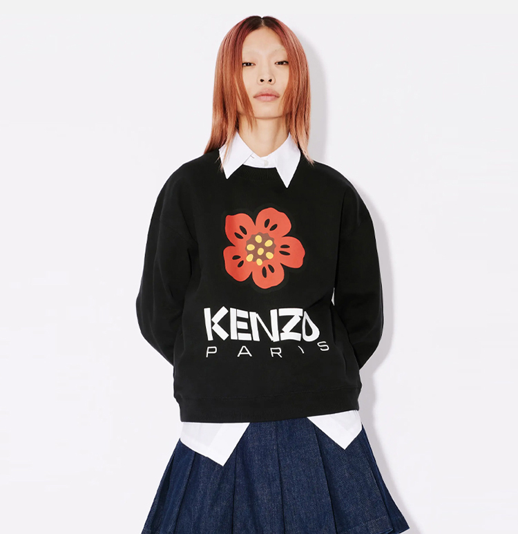 【一】KENZO 高田贤三 女士棉质大海棠花徽标印花长袖卫衣 黑色 FD52 SW036 4ME 99J