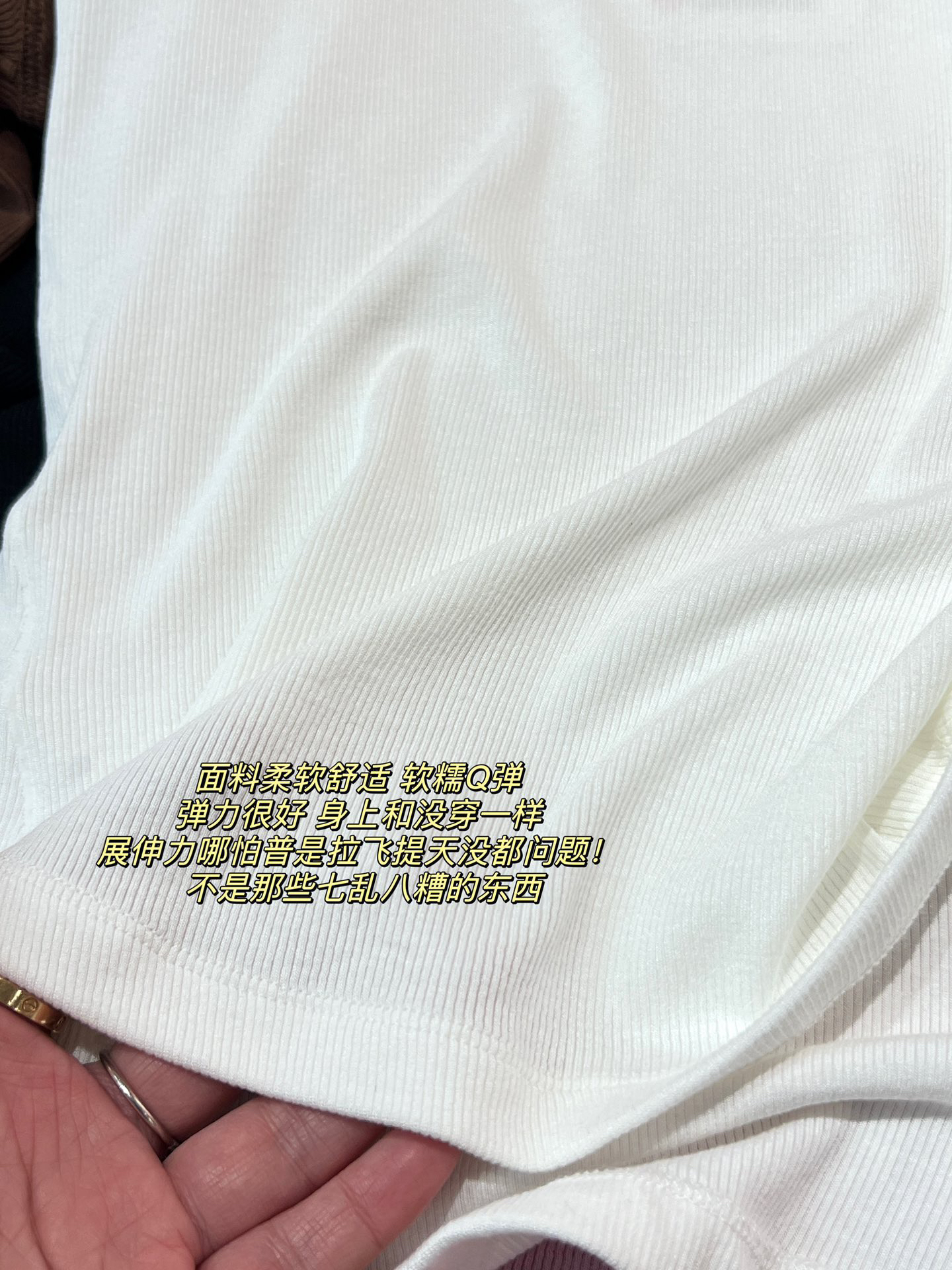 面料柔软舒适 软糯Q弹 弹力很好 身上和没穿一样 展伸力哪怕普是拉飞提天没都问题! 不是那些七乱八糟的东西
