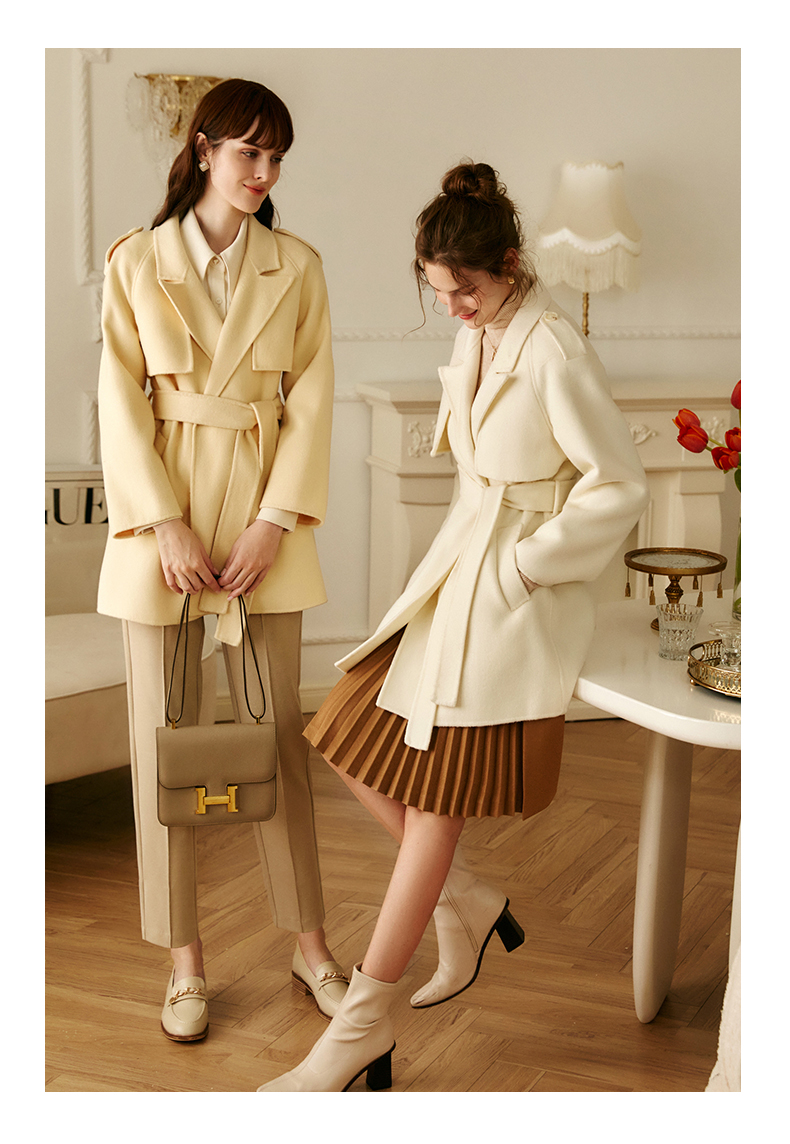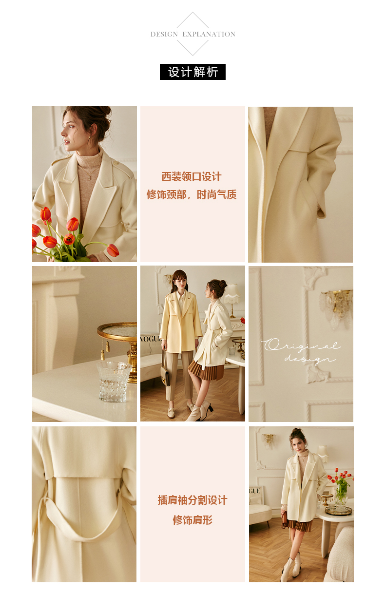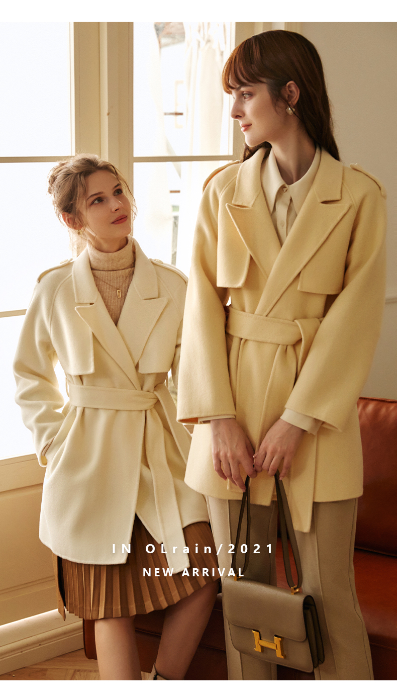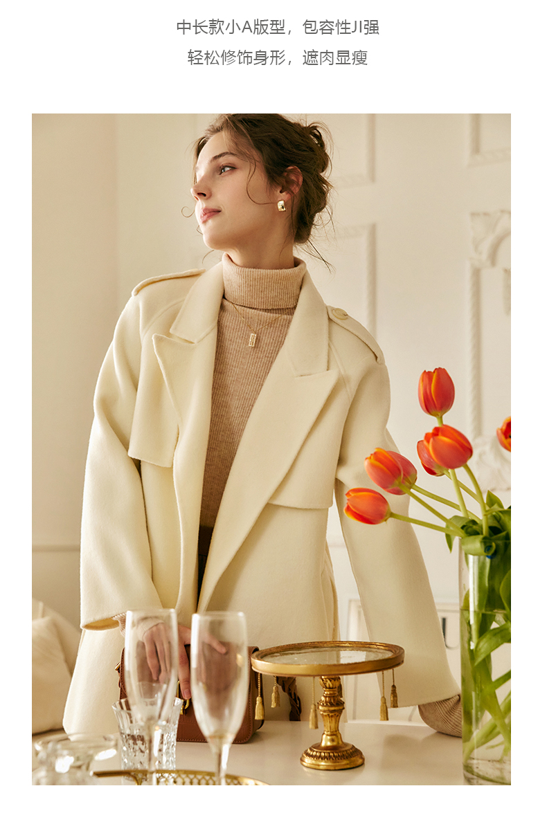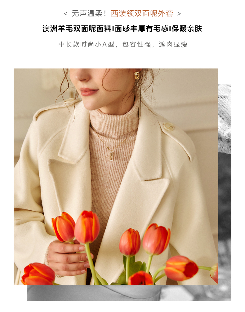 欧芮儿西装双面毛呢外套女冬季新款2021宽松显瘦时尚气质羊毛大衣