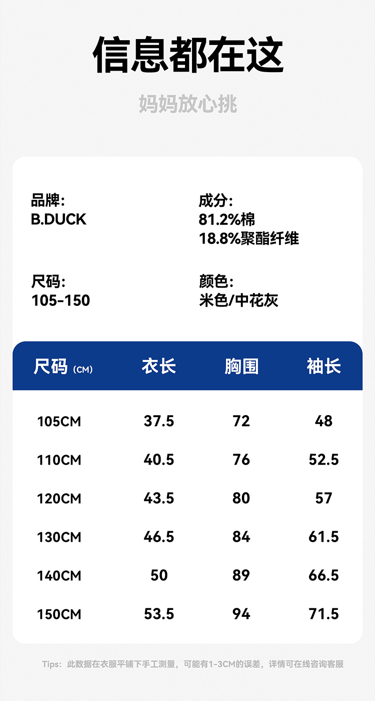 B.Duck小黄鸭童装春秋卫衣105-150 BF3508020