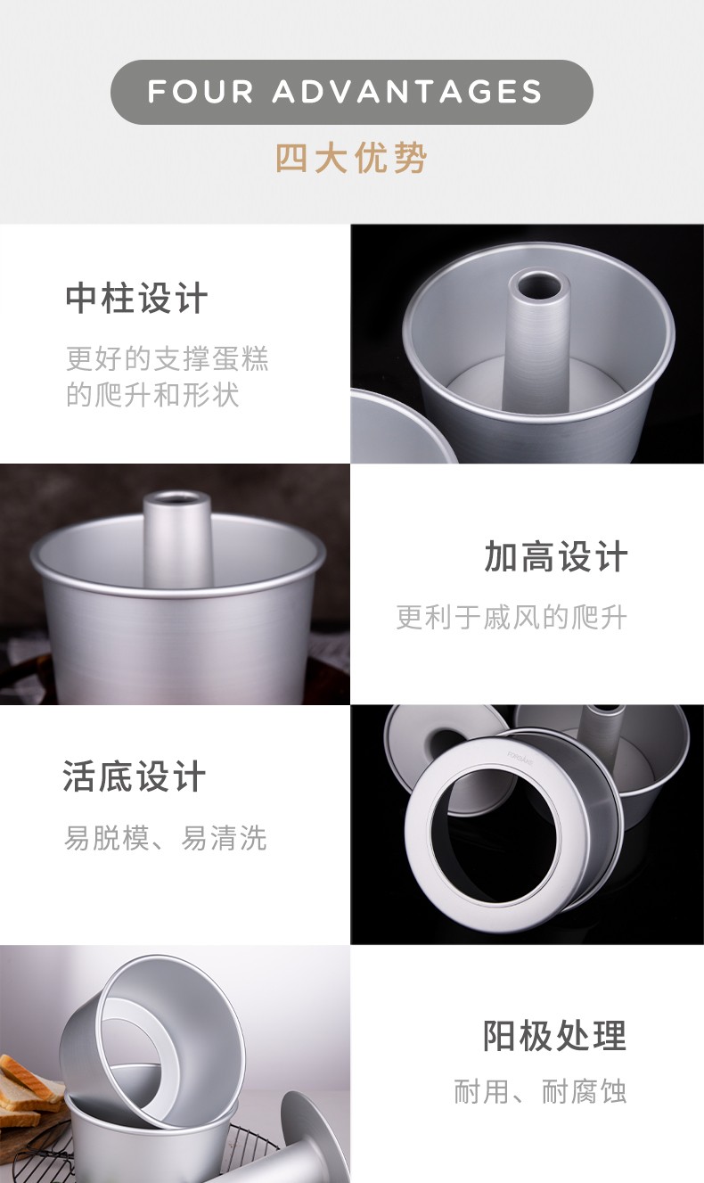 法焙客日式戚风蛋糕模6寸中空活底加高烟囱模具