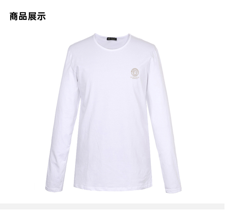 VERSACE 范思哲 男士棉氨纶美杜莎徽标印花圆领长袖T恤 白色 AUU01007 A232741 A1001
