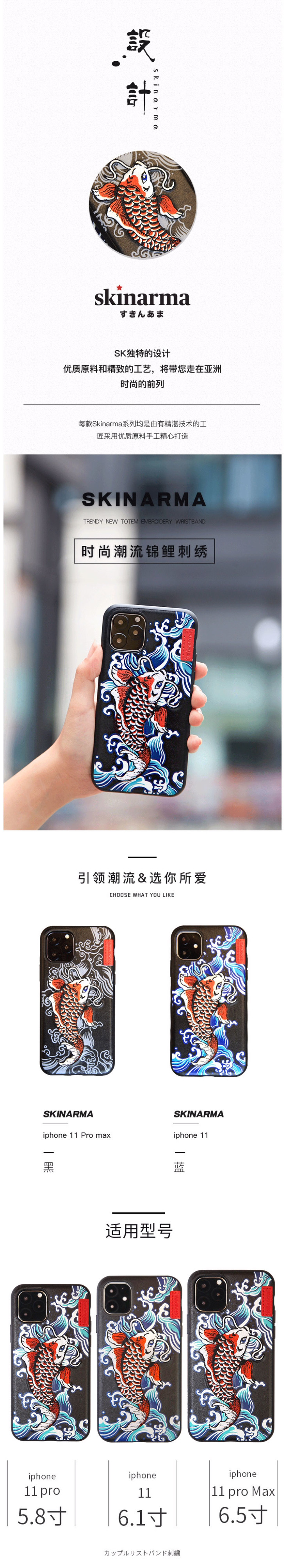 Skinarma iphone 刺绣锦鲤保护壳