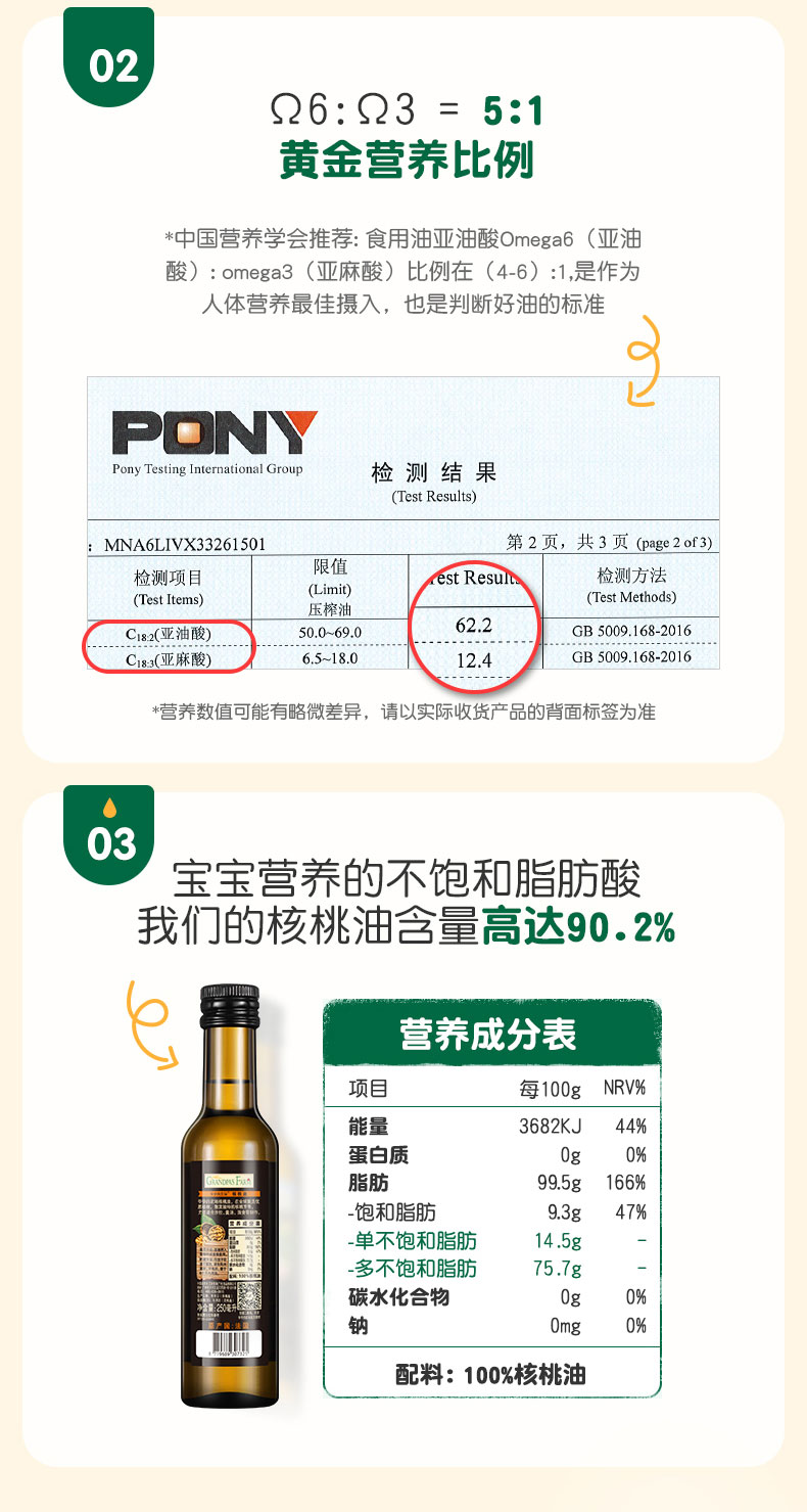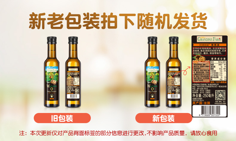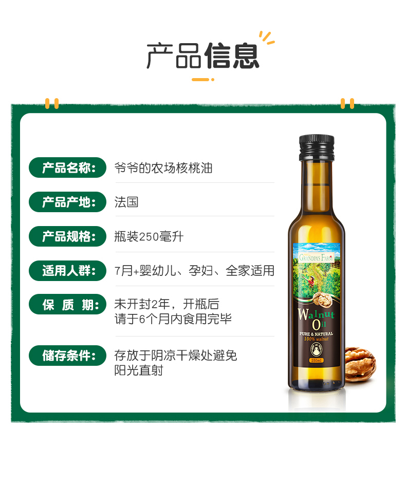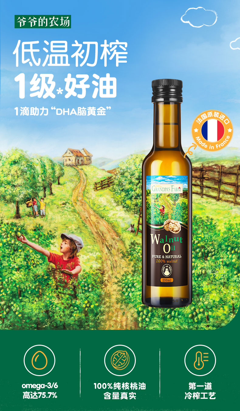 爷爷的农场婴幼儿食用宝宝DHA核桃油营养用油250ml婴儿辅食添加油