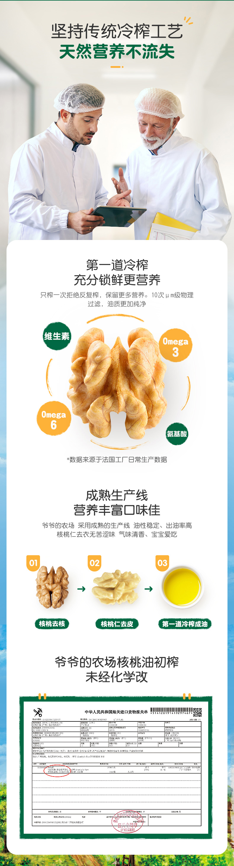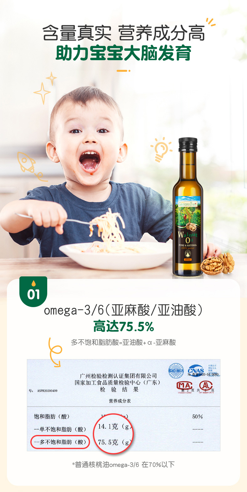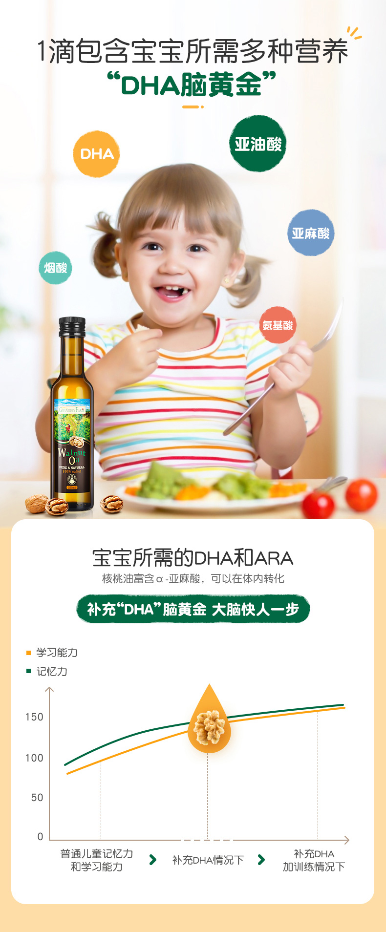 爷爷的农场婴幼儿食用宝宝DHA核桃油营养用油250ml婴儿辅食添加油