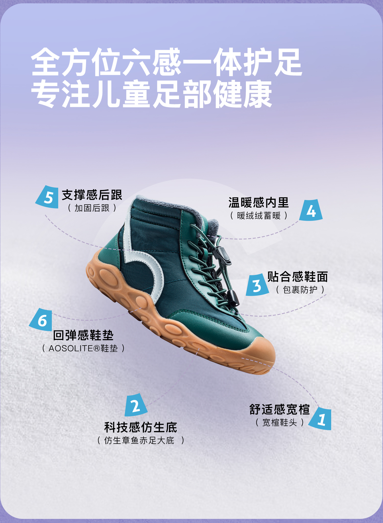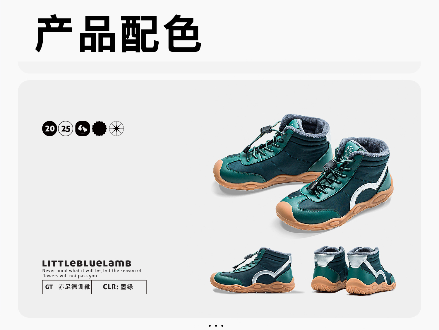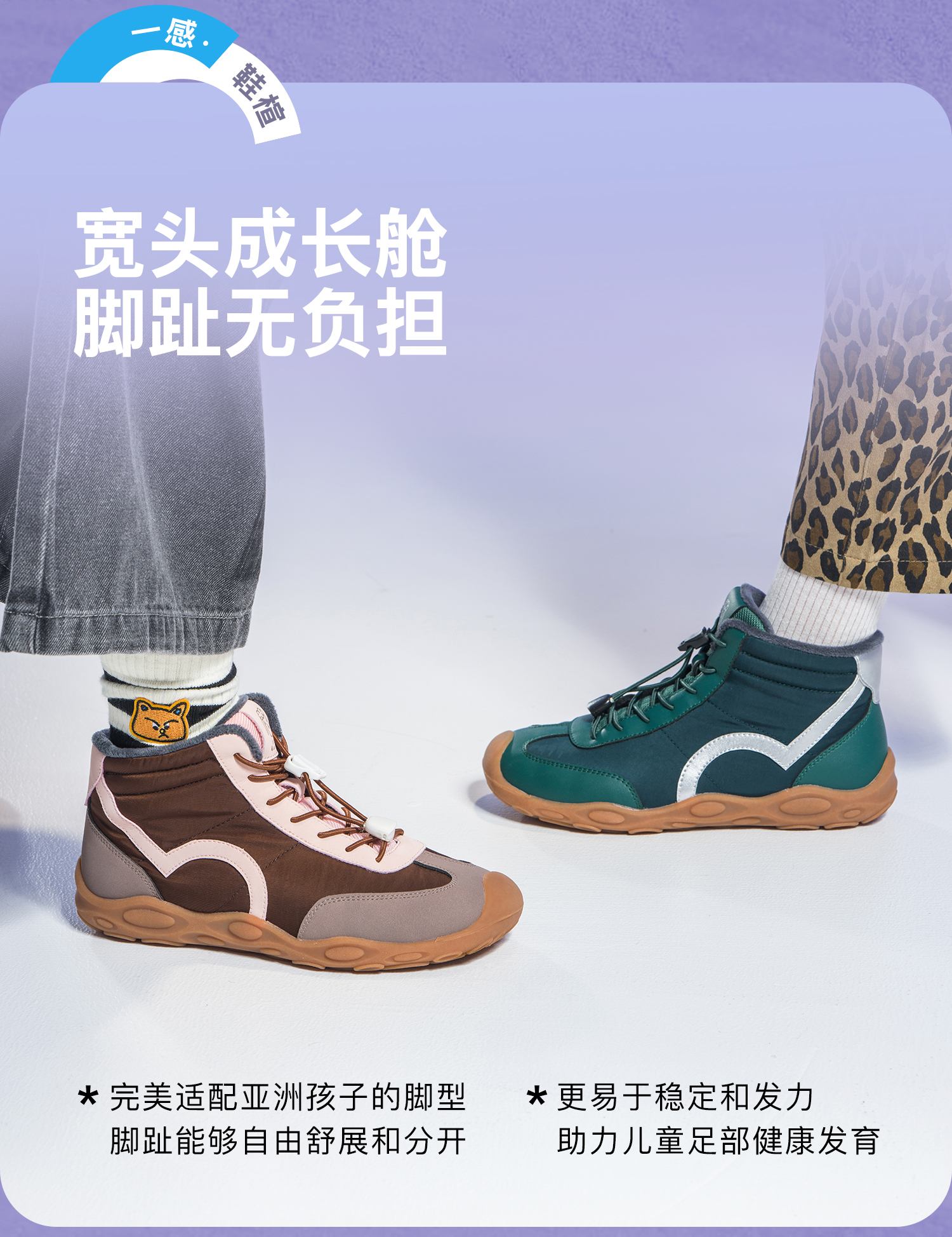 【爆款推荐】TY-小蓝羊25冬季复古赤足新款儿童校园运动二棉鞋户外保暖运动靴子-德训