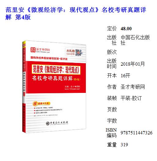 正版 范里安《微观经济学:现代观点》名校考研真题详解 第4版 经济考研辅导书 微观经济学教材配套考研真题详解图书