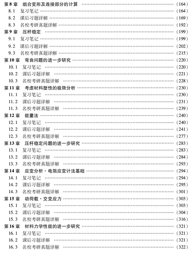 本书是 《材料力学》(第5版)(孙训方主编,高等教育出版社)的学习辅导书。本书遵循第5版的章目编排,共分为16章,每章由三部分组成:*部分为复习笔记,总结本章的重难点内容;第二部分为课后习题详解,对第5版的课后习题进行了详细的分析和解答;第三部分为名校考研真题详解,精选名校考研真题,并提供了详细的解答。