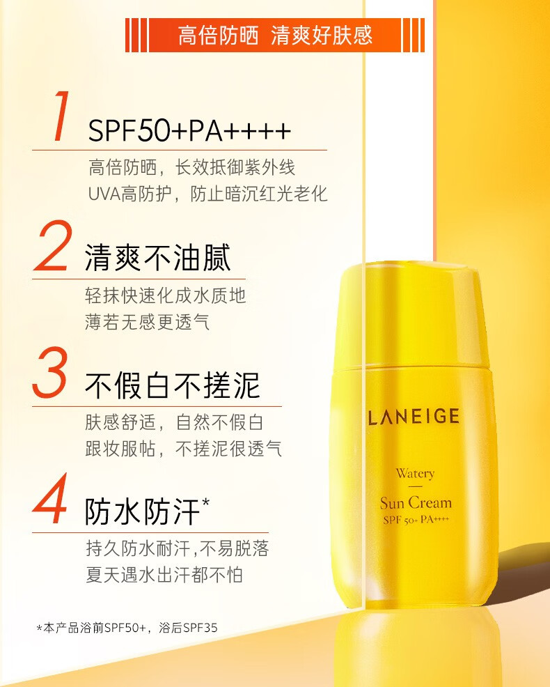 兰芝朝露防晒霜50ml SPF50+PA++++小黄帽 防水防汗