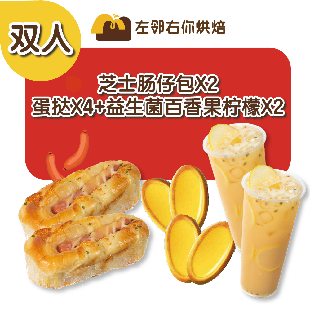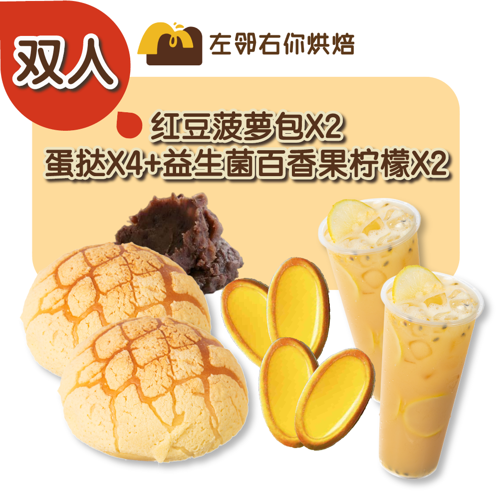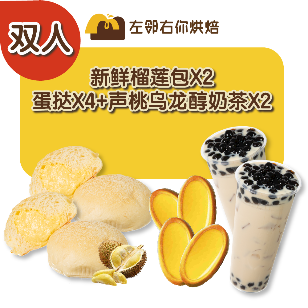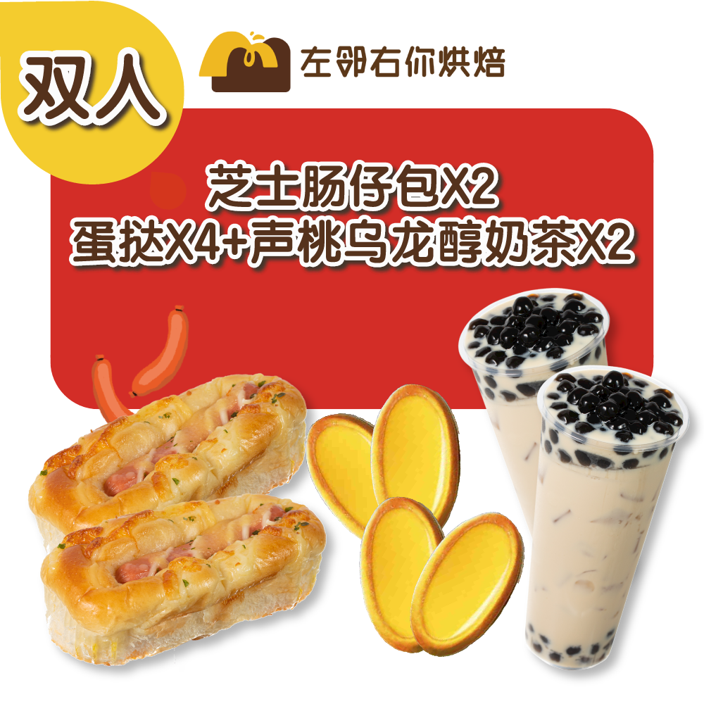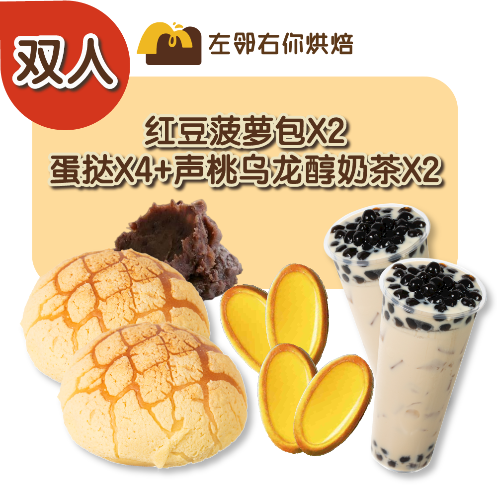 【特惠】2人份下午茶面包+蛋挞+饮料下午茶优惠套餐
