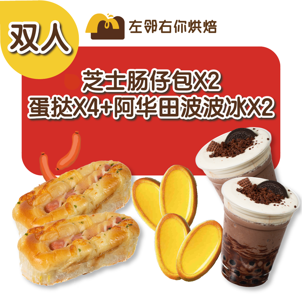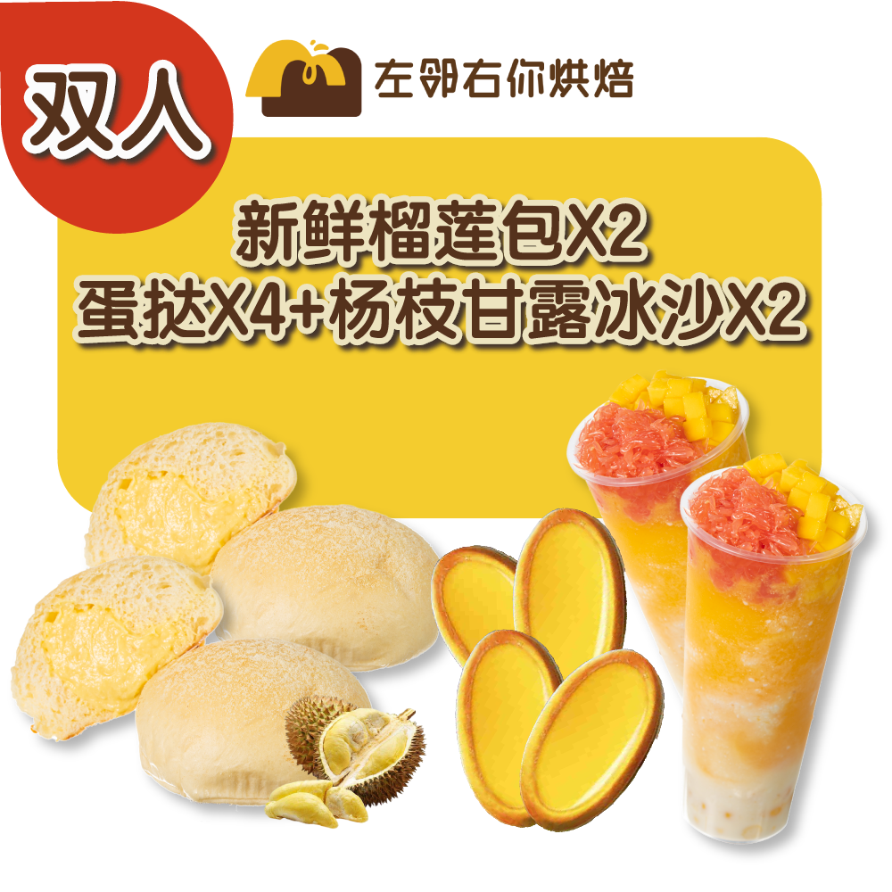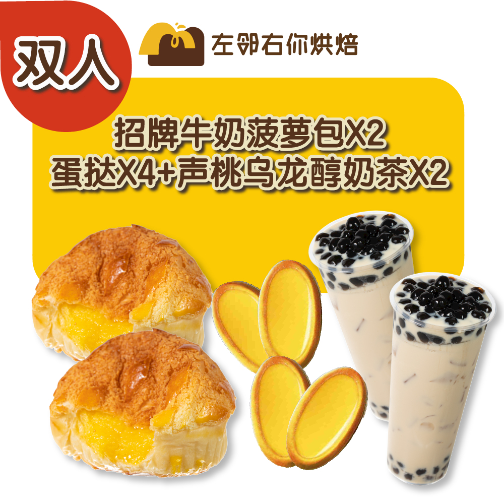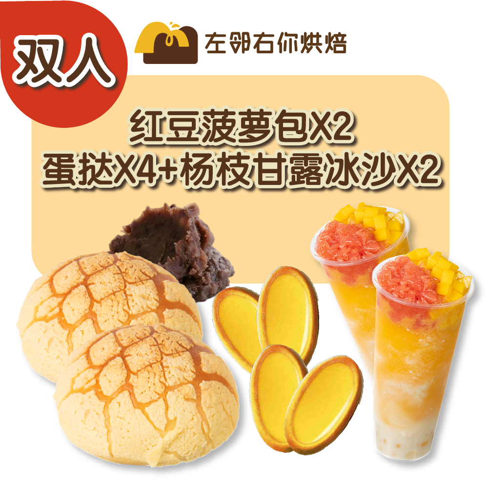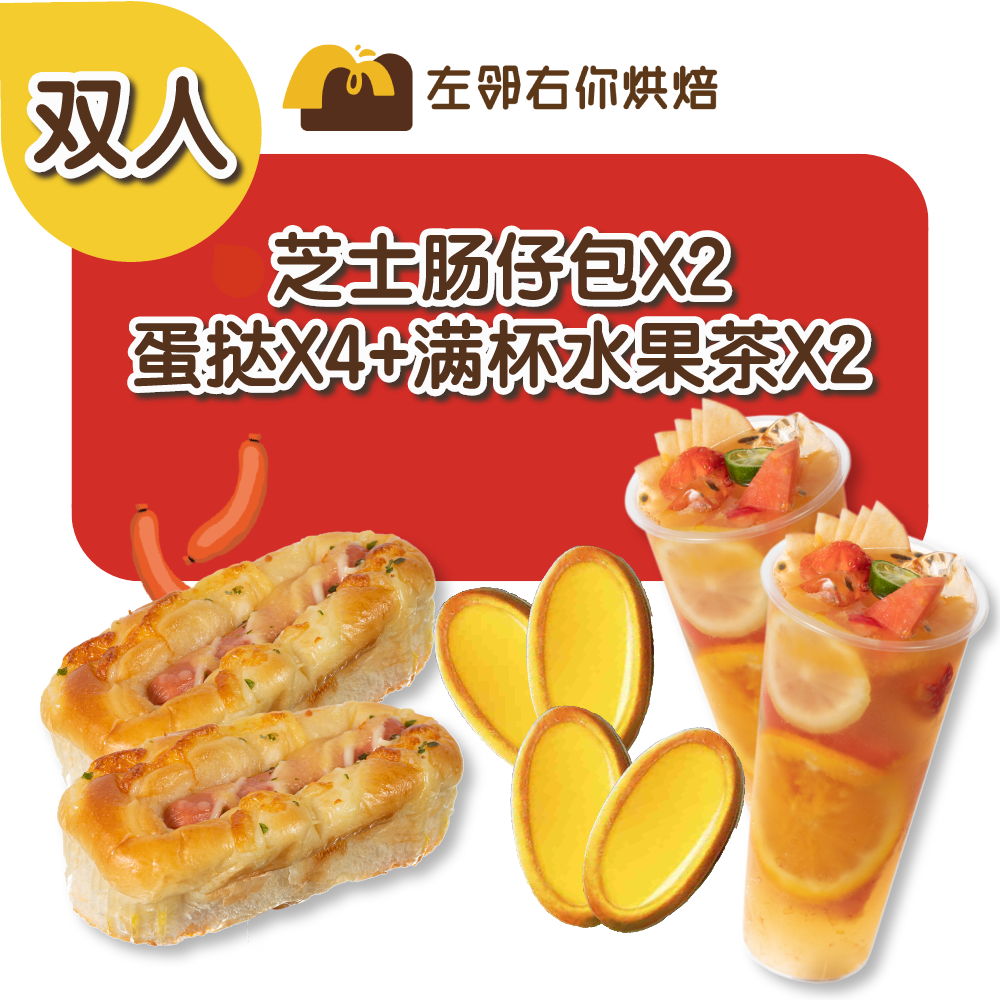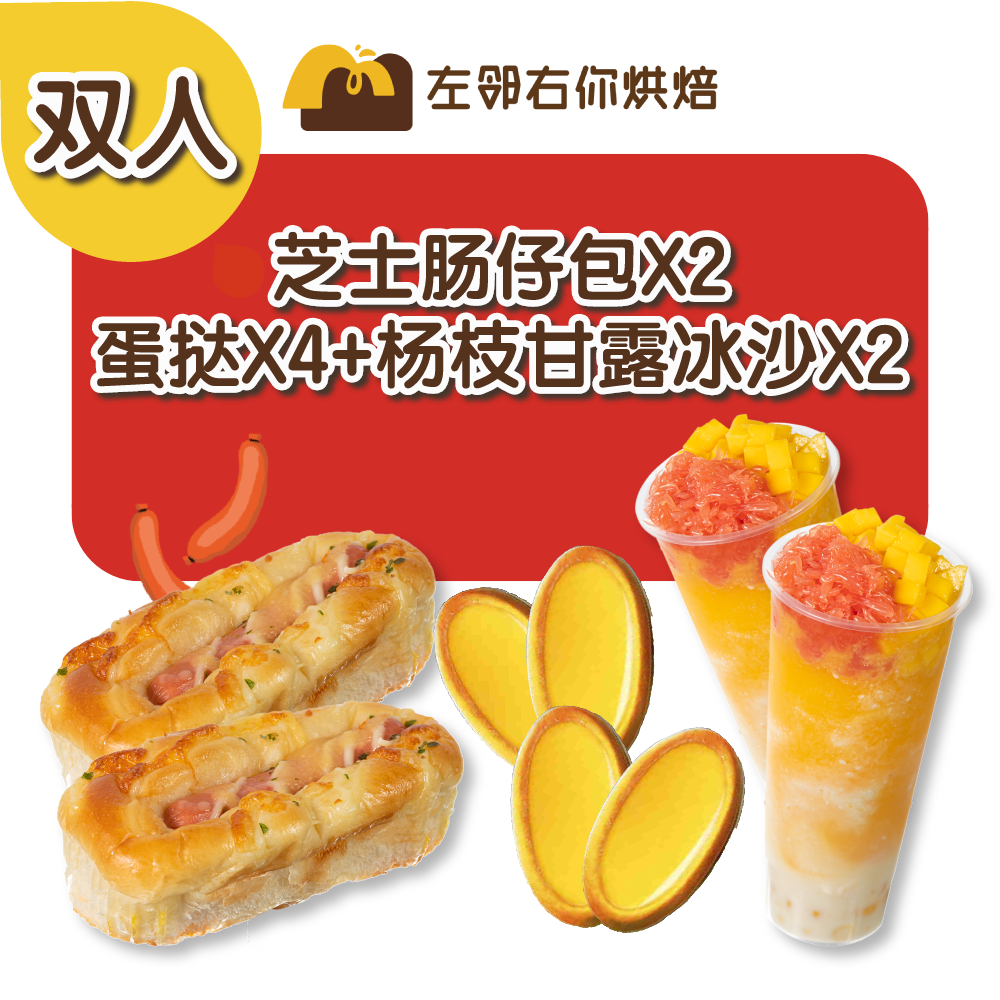 【特惠】2人份下午茶面包+蛋挞+饮料下午茶优惠套餐