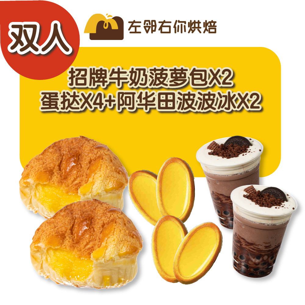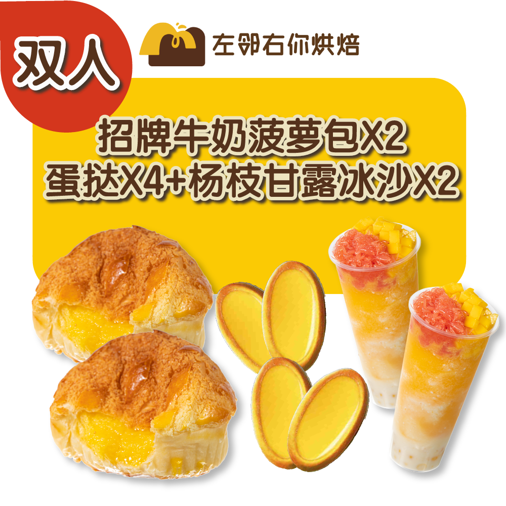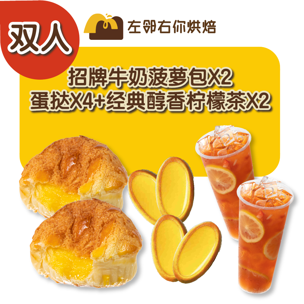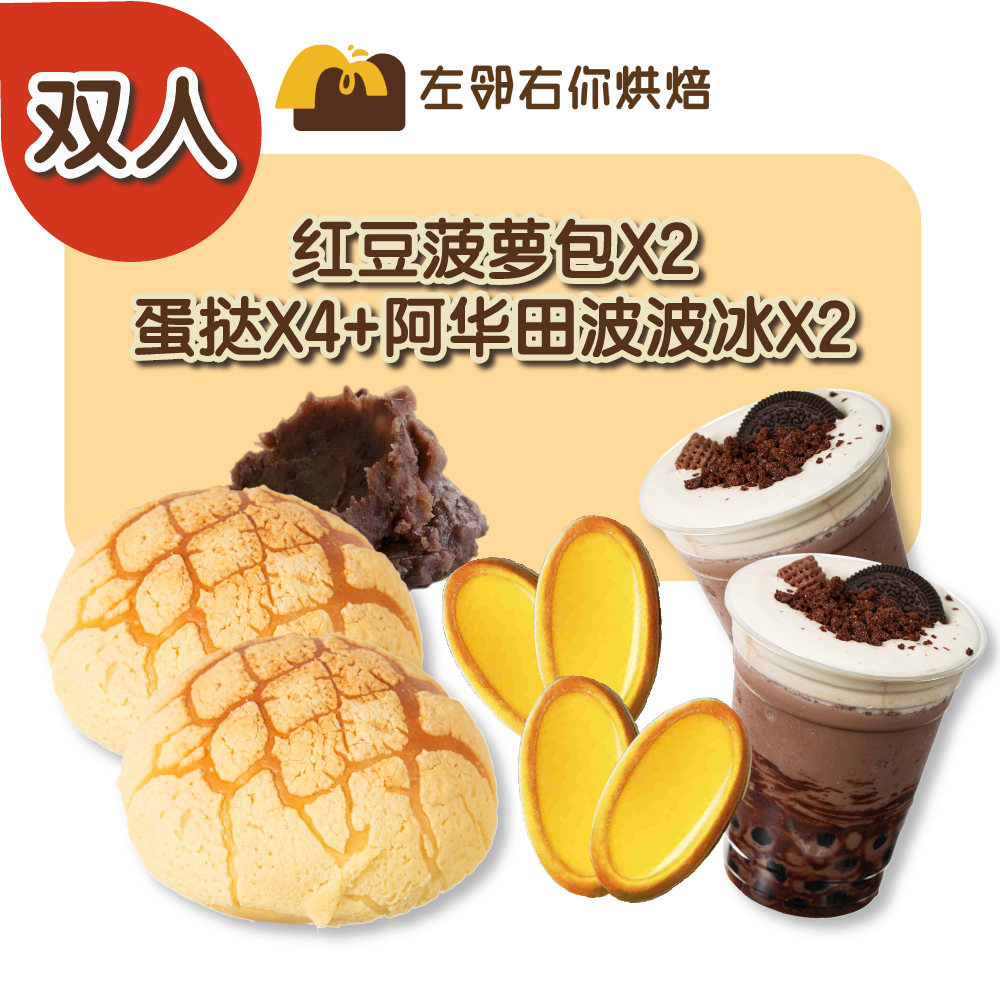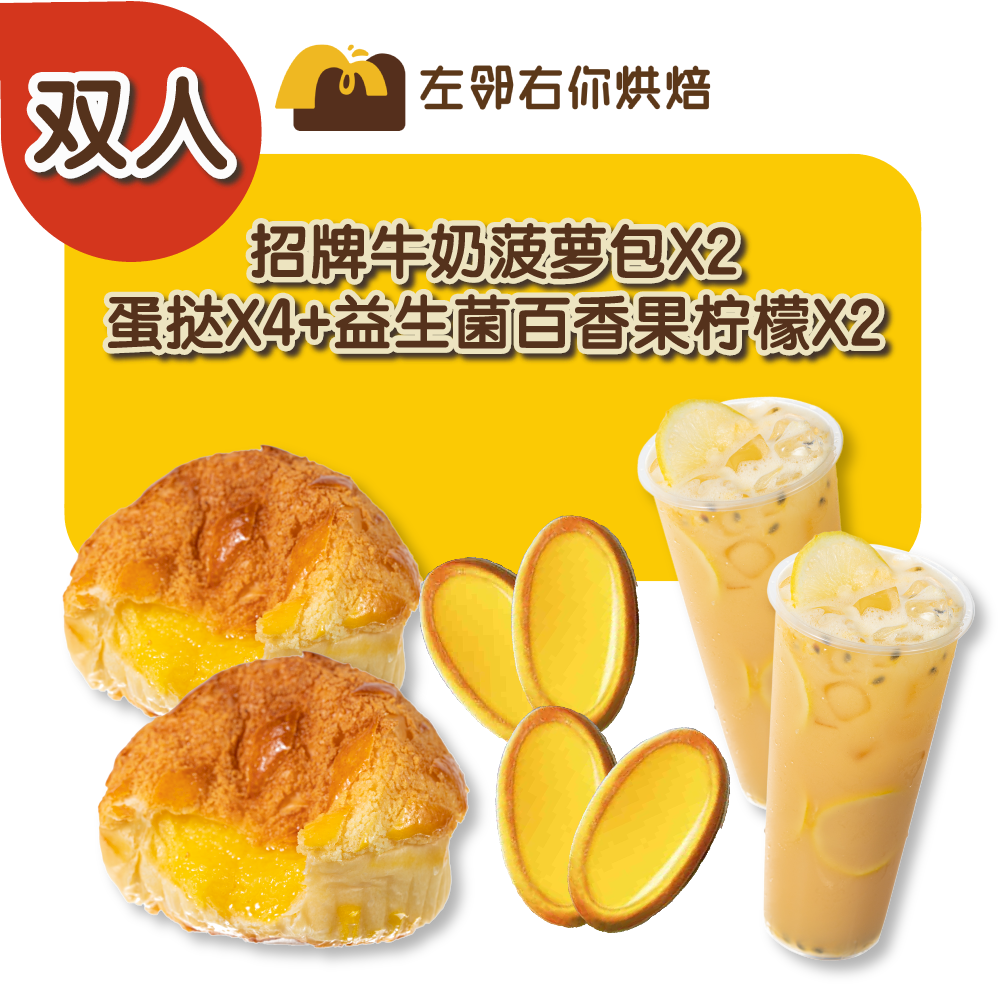 【特惠】2人份下午茶面包+蛋挞+饮料下午茶优惠套餐