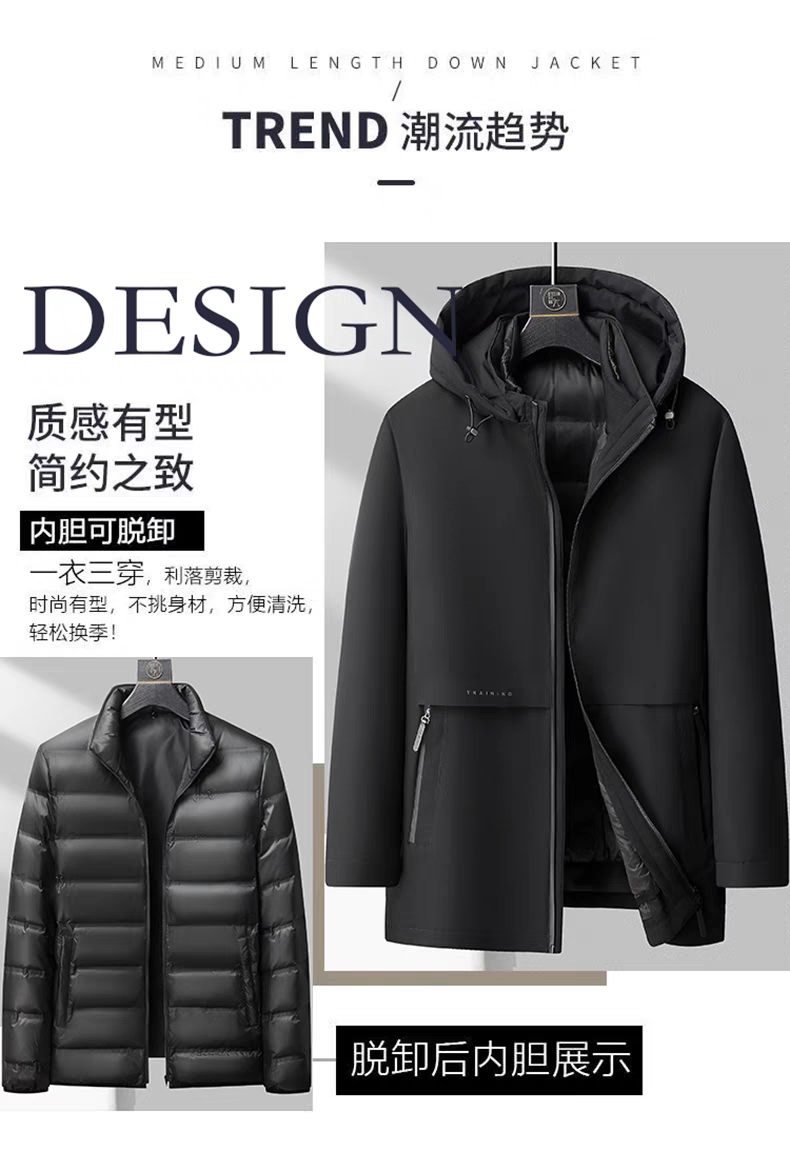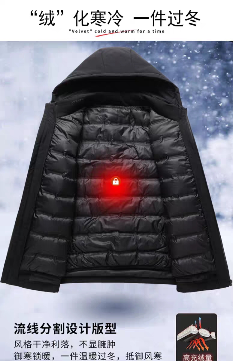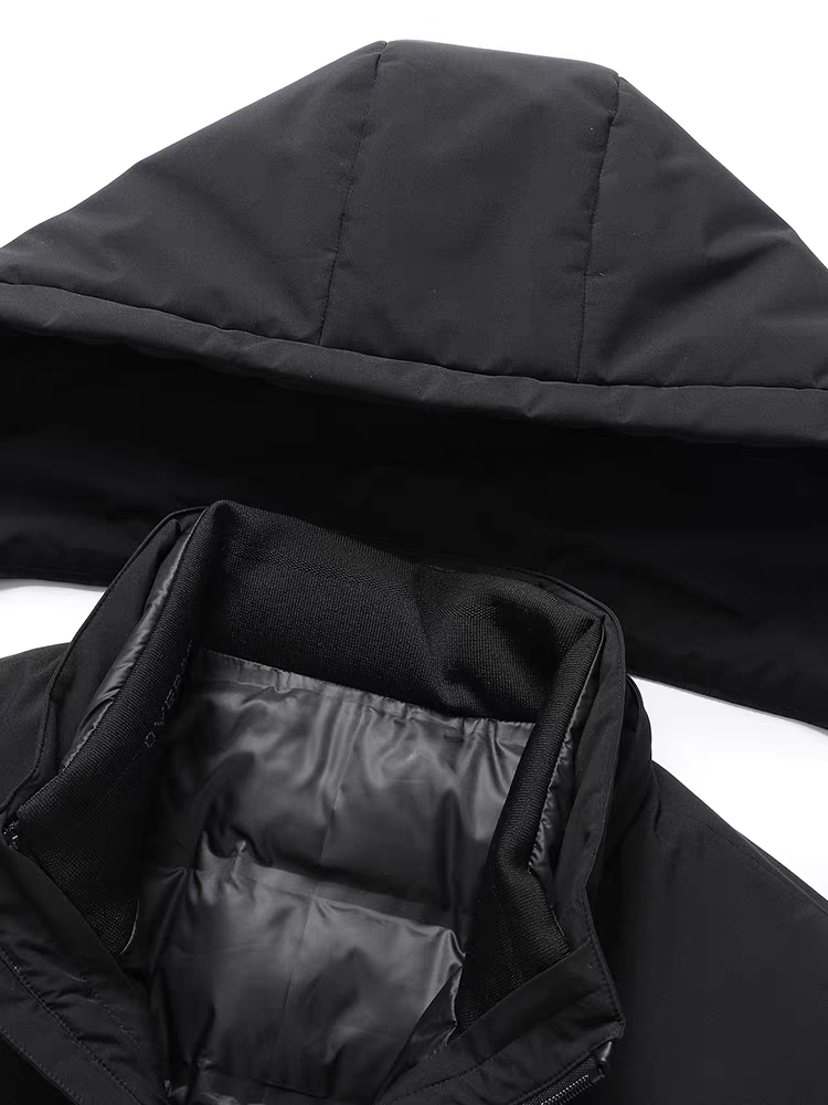 77027# 加肥加大码男胖子可脱卸帽羽绒服活里活面加厚保暖鹅绒外套 黑色 3XL~6XL
