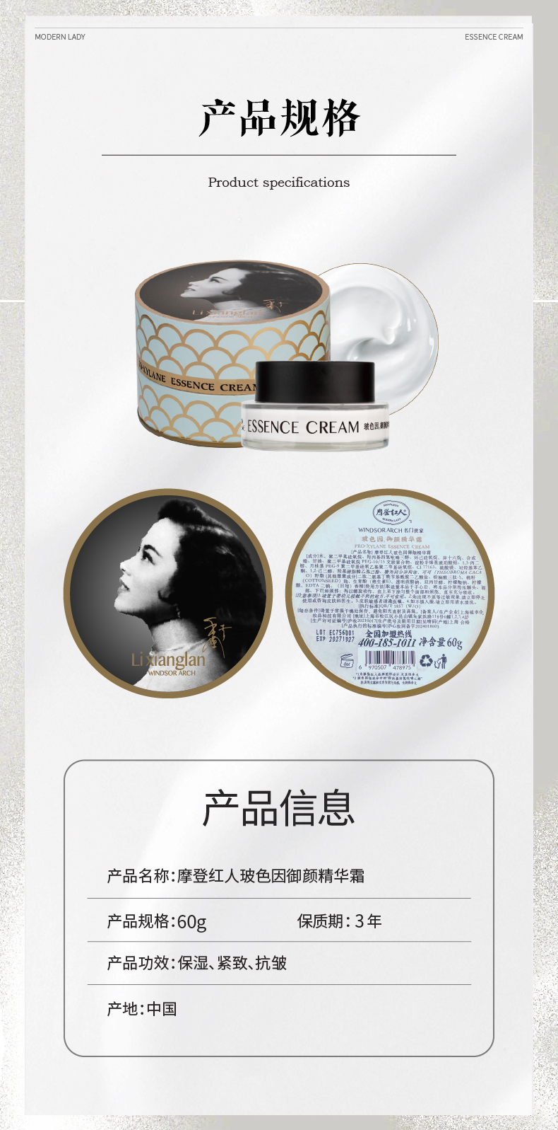 摩登红人名门系列玻色因御颜精华霜抗皱淡纹护肤保湿补水滋润面霜敏感肌可用60g