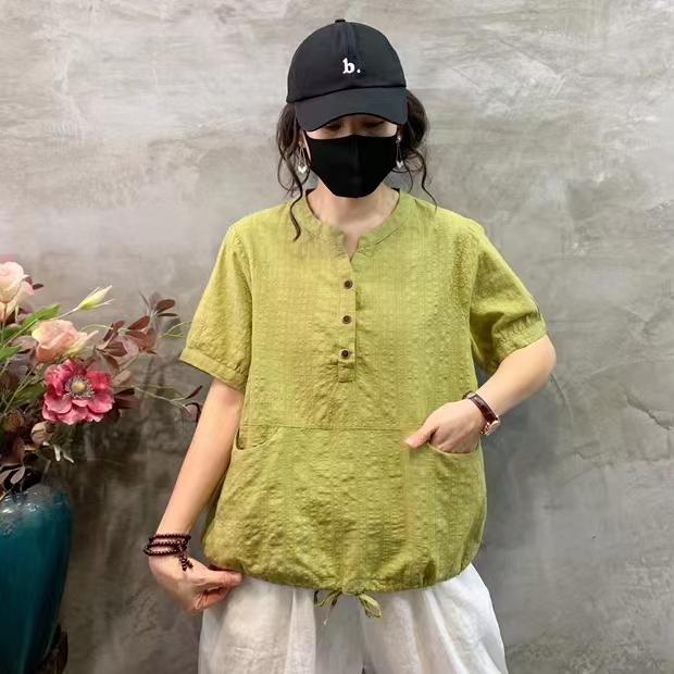 05255343衫,均码号,100-150斤都可以穿,黄,酒红皮粉,苹果绿四个颜色,面料以棉为主,透气性好,穿着舒适,搭配牛仔裤,运动裤,短裤。