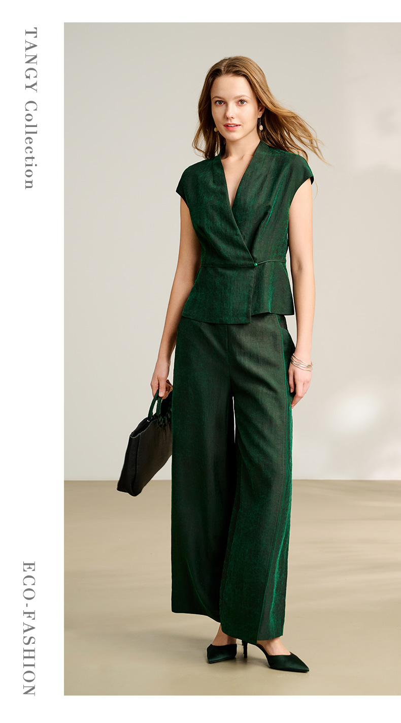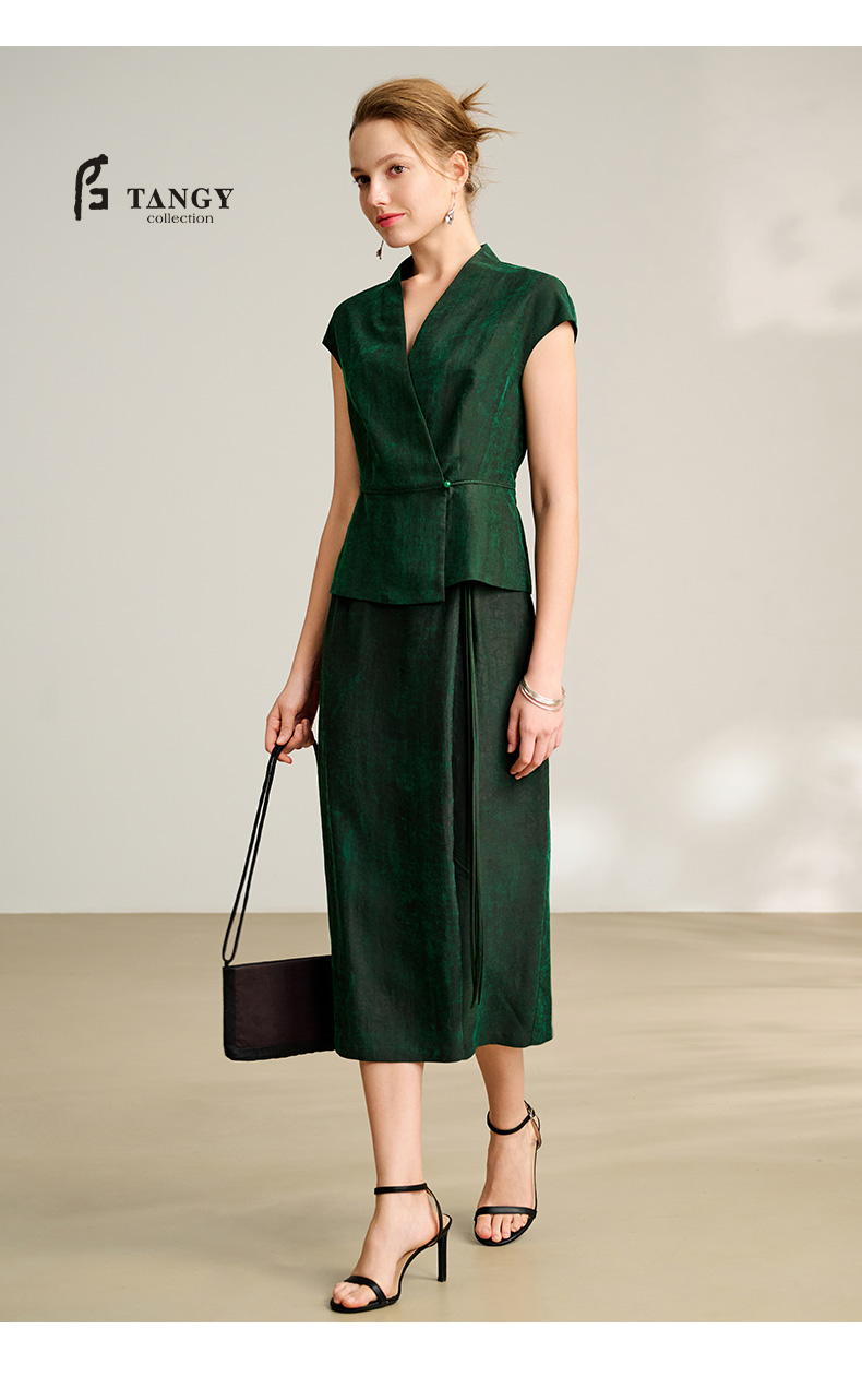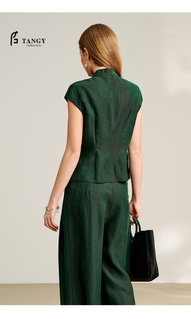 TANGY Collection/2025天意精品 夏季新品中国风女士莨绸v领衬衫