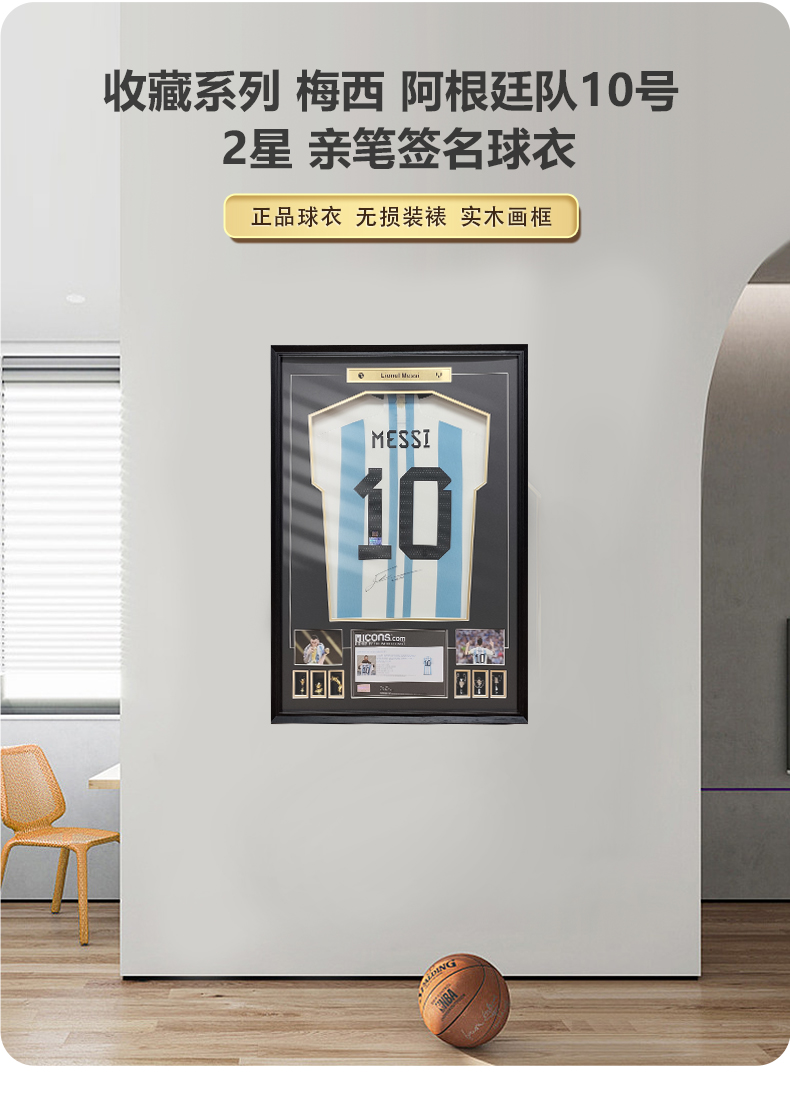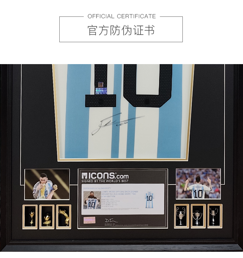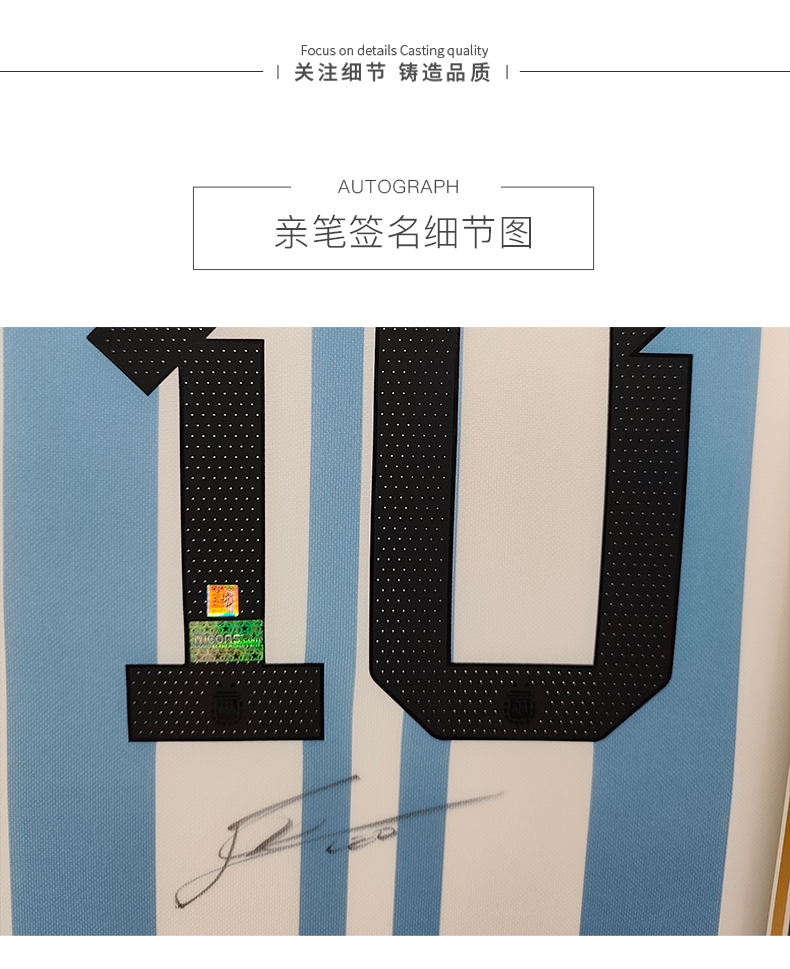 收藏系列 梅西 阿根廷队10号 2星 亲笔签名球衣