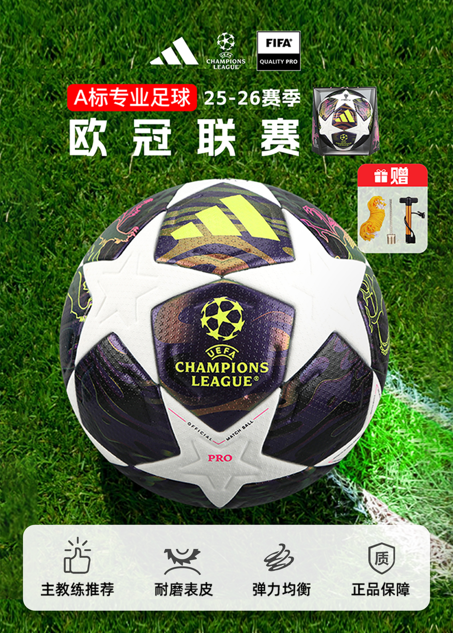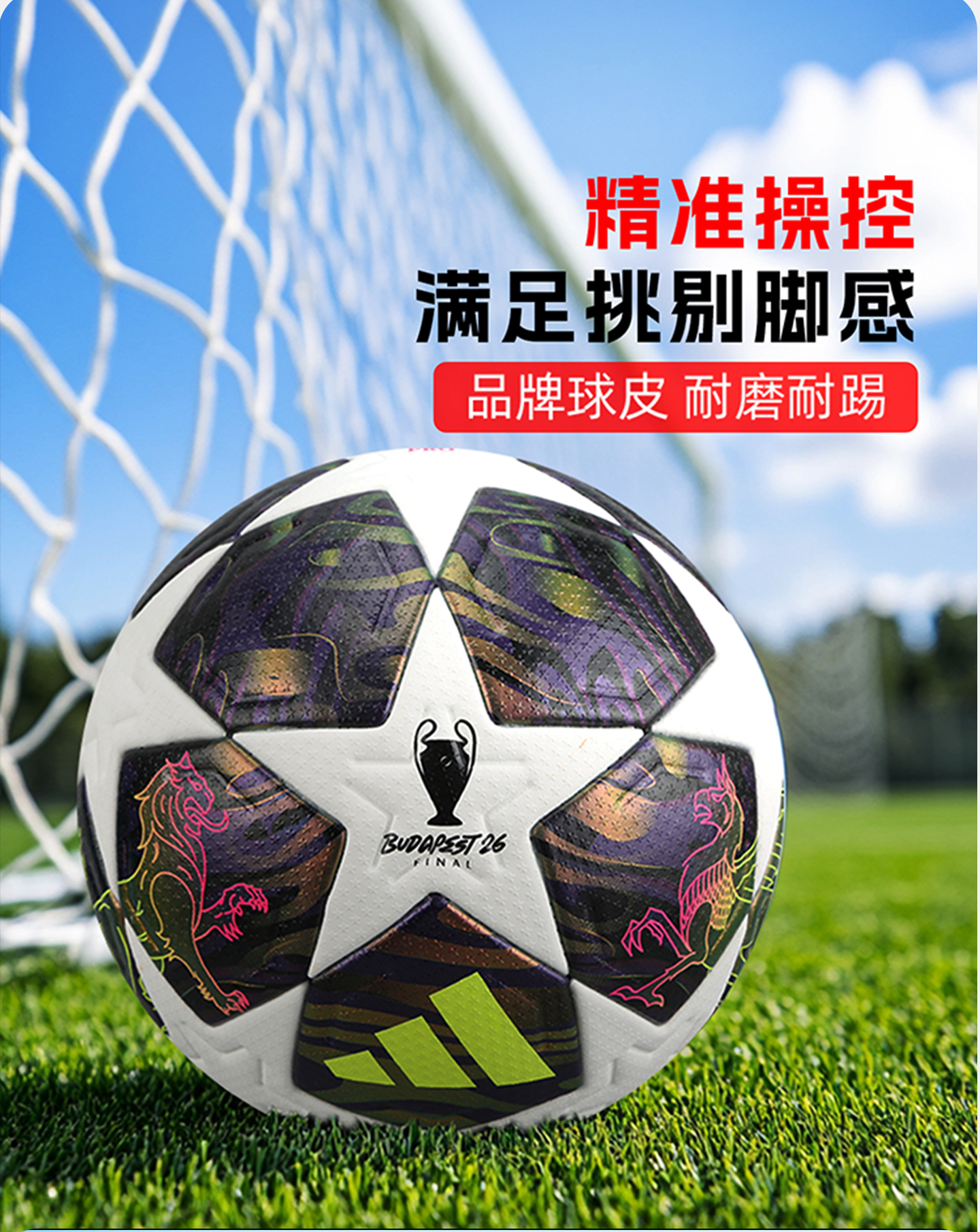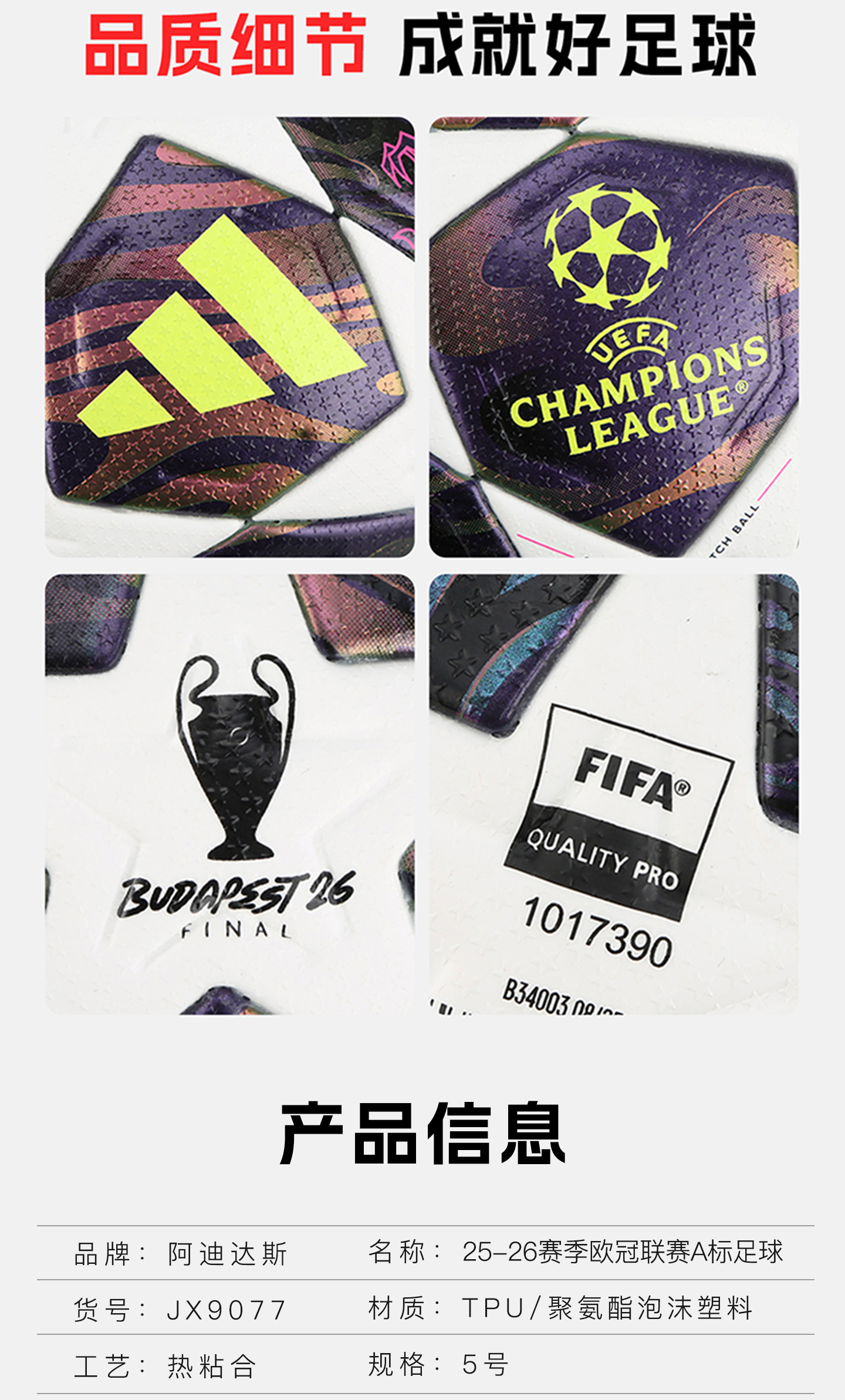 小李子阿迪达斯25-26赛季欧冠联赛5号热粘合A/Pro标足球JX9077