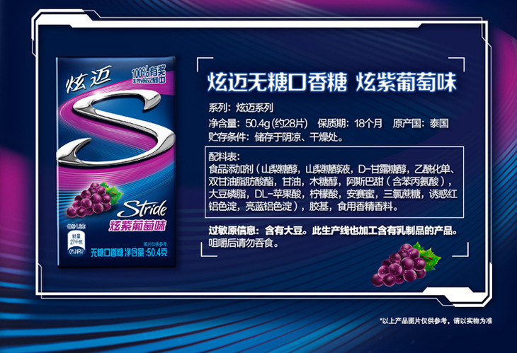 B171炫迈|炫紫葡萄味无糖口香糖 50.4g/盒
