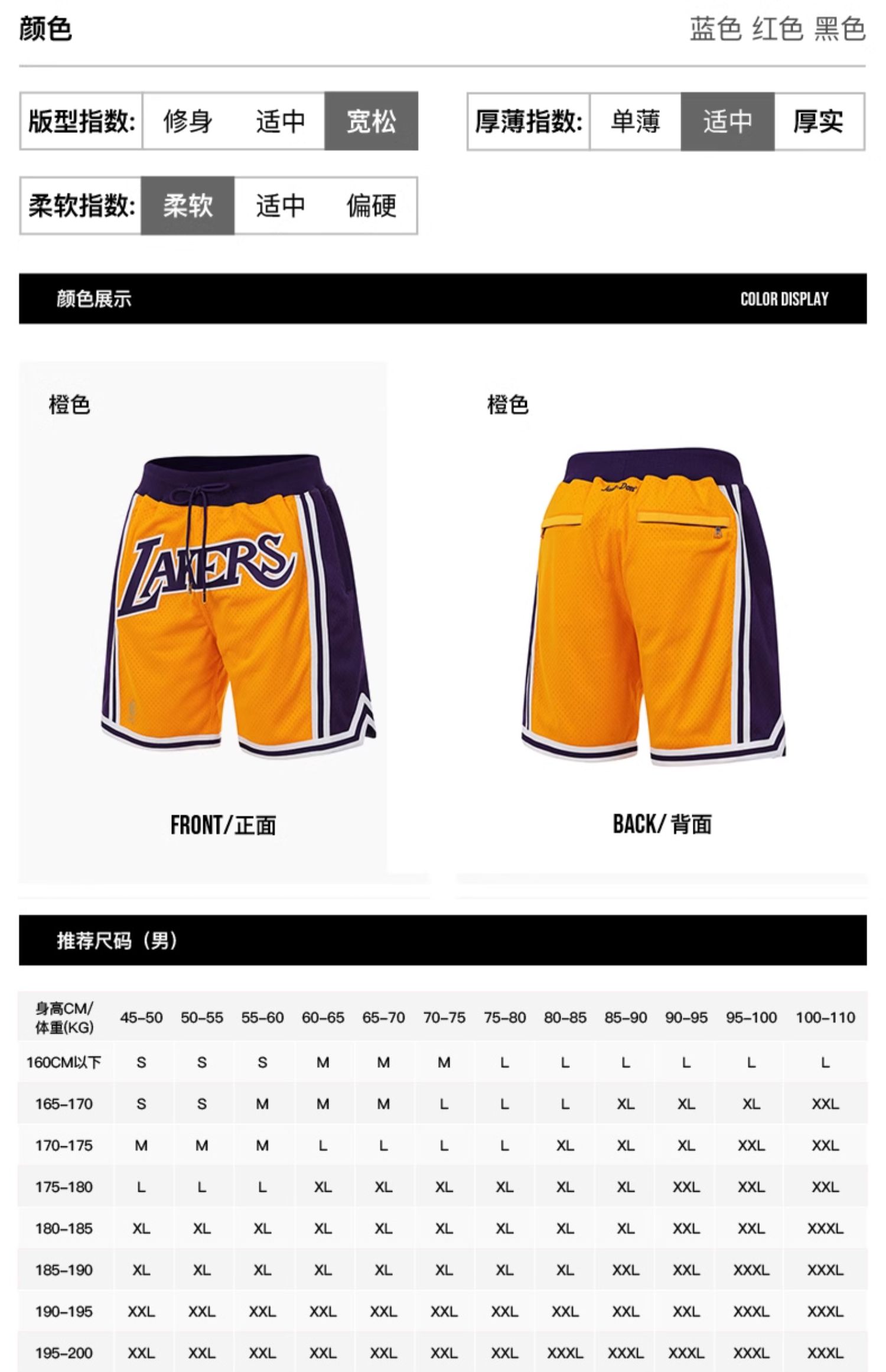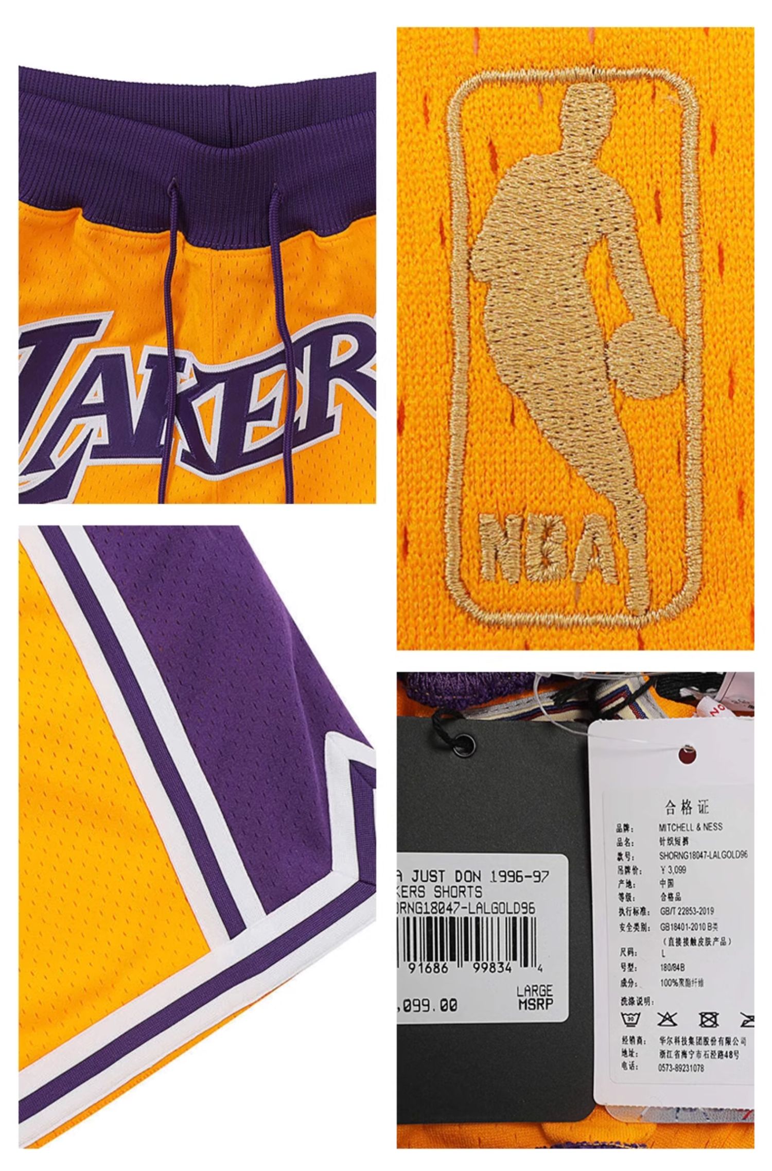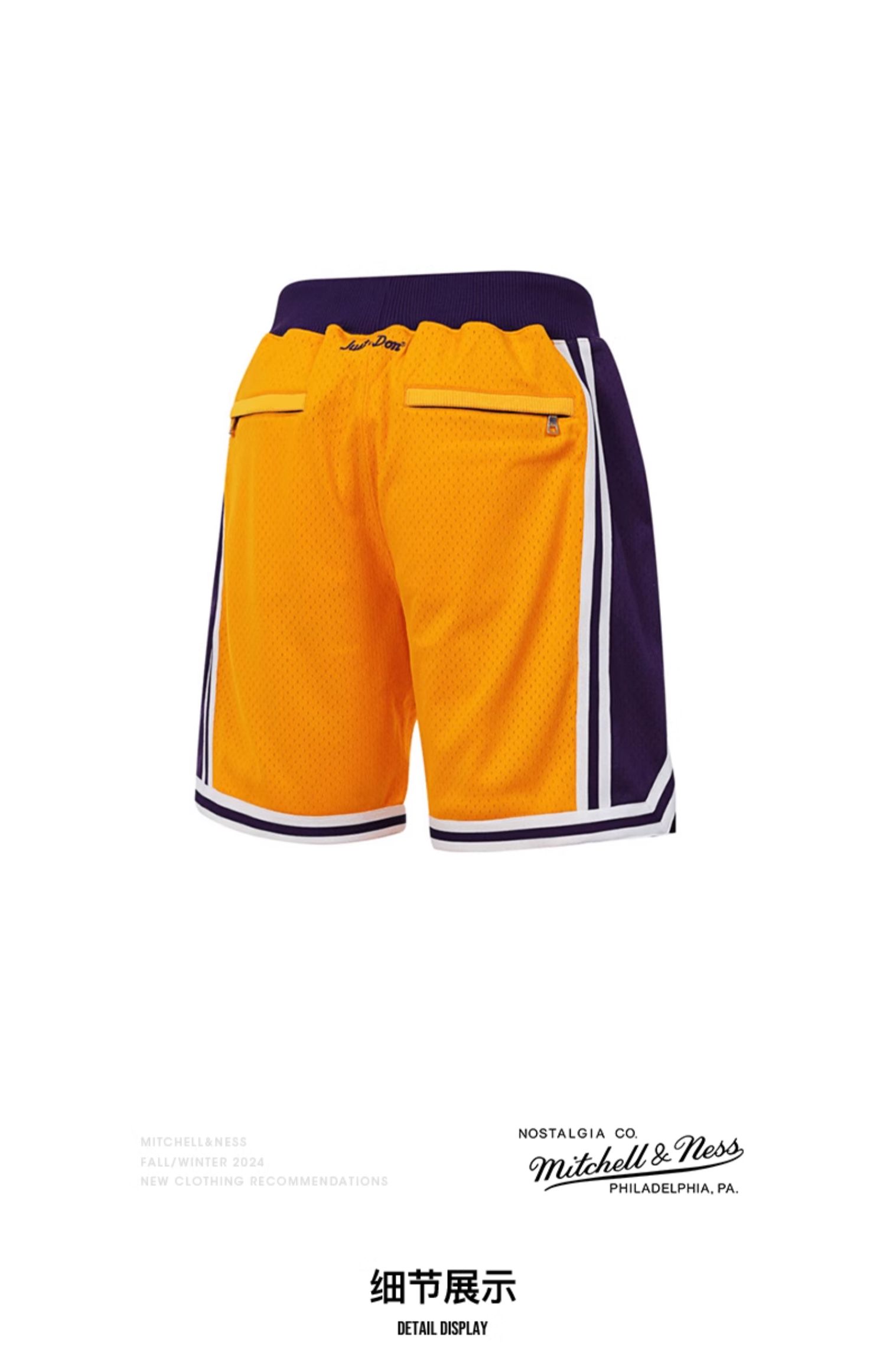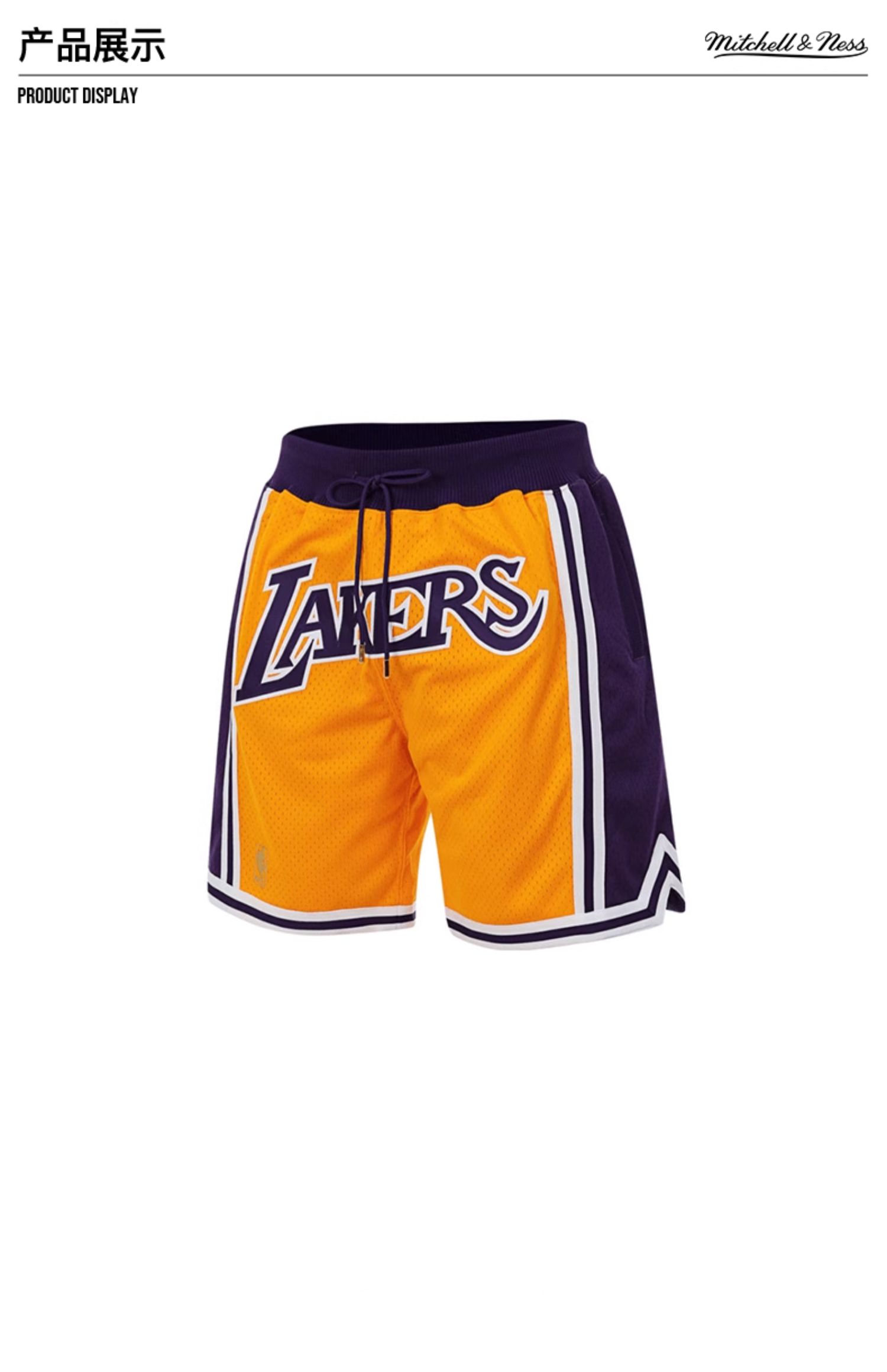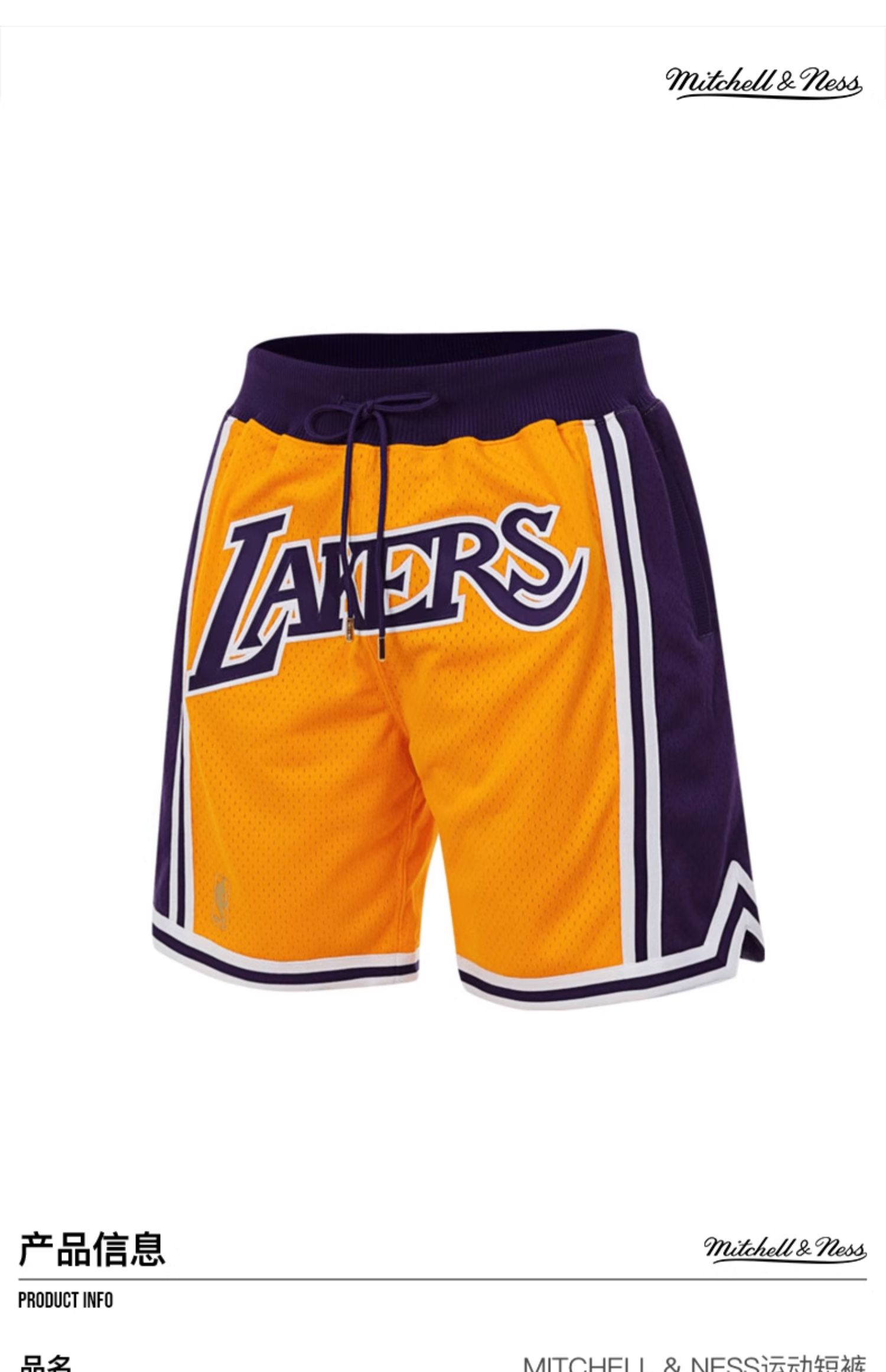 Mitchell&ness 洛杉矶湖人黄色JUSTDON联名球裤